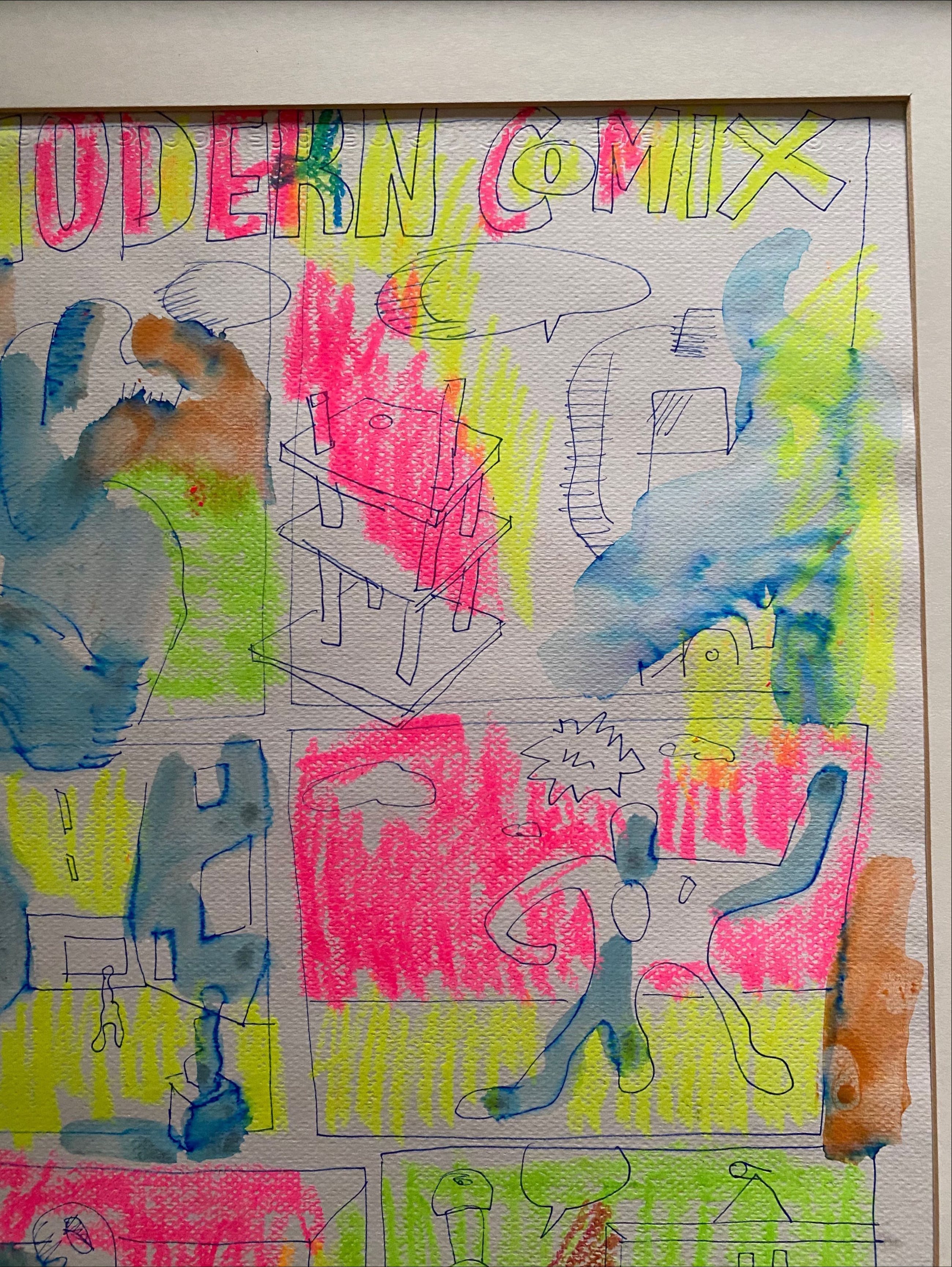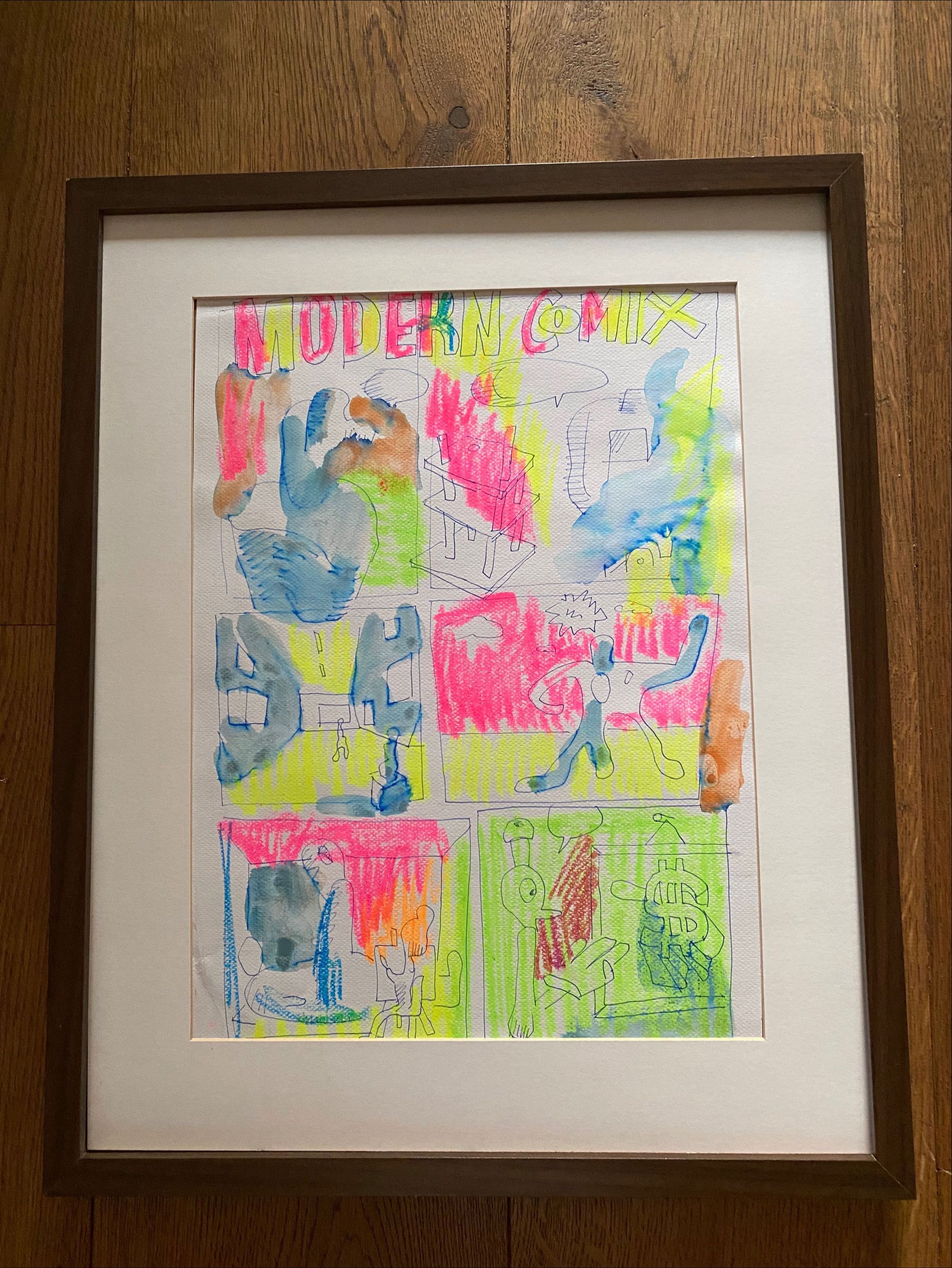 Origineel werk van Peter klashorst met lijst Krijt, pen en aquarel door elkaar gebruikt