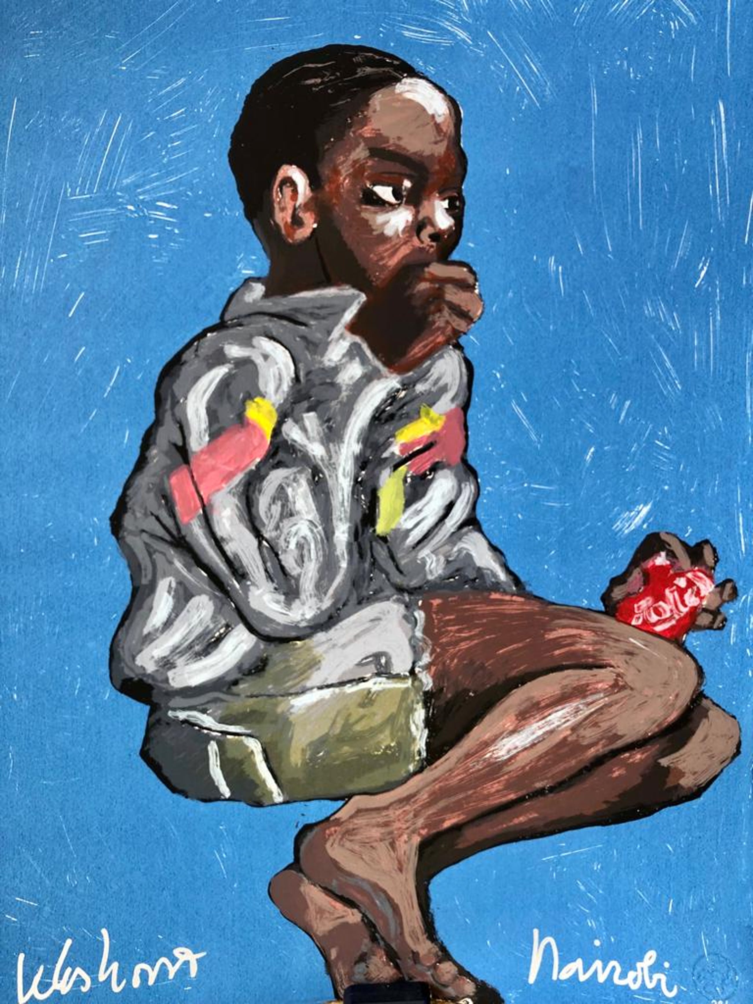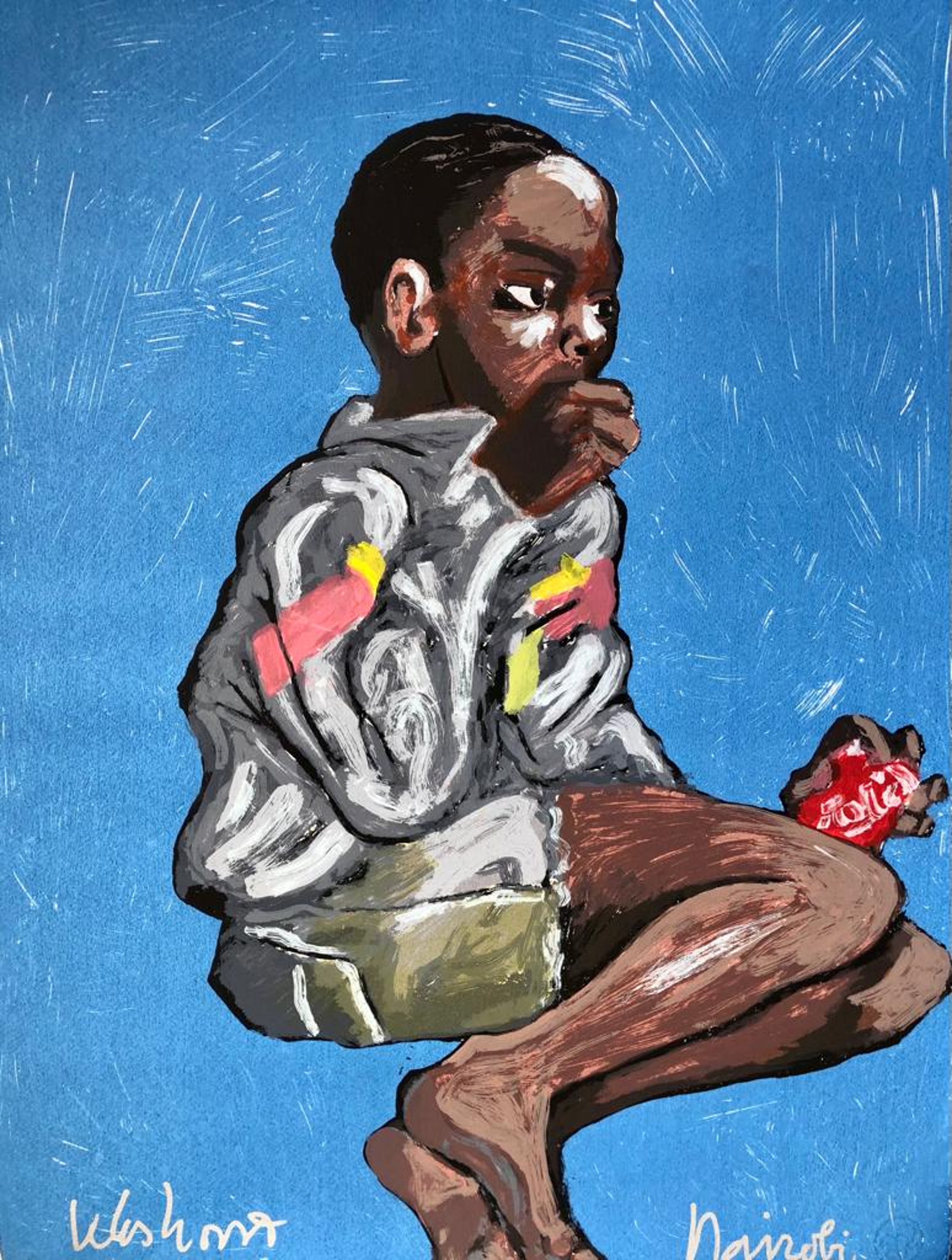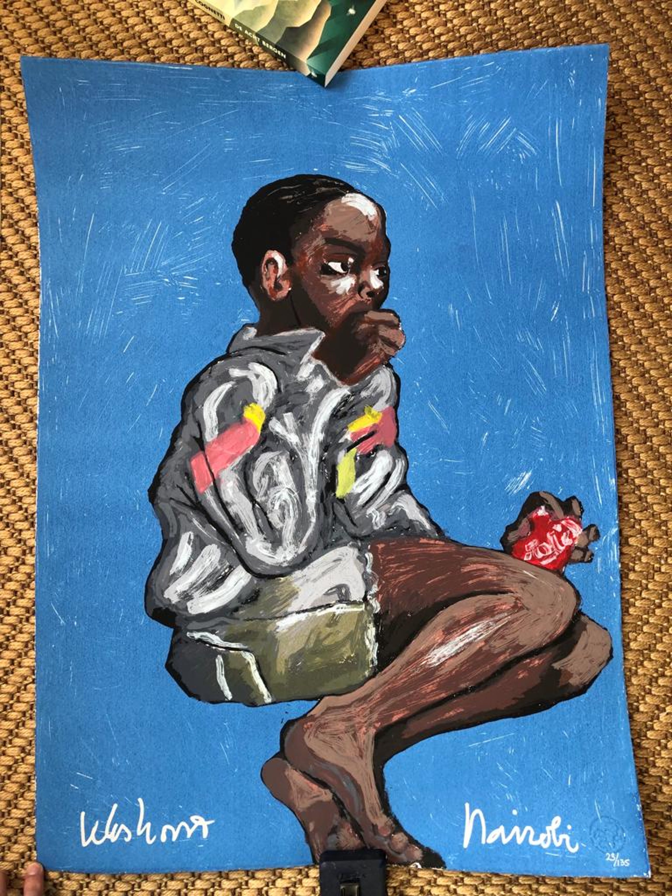 Mooie grote zeefdruk van Peter Klashorst (1957) genaamd "Nairobi" Afgebeeld een gehurkte jongen uit Nairobi met een blikje cola op een helderblauwe achtergrond. Met zilveren felttip pen gesigneerd linksonder, en getiteld en genummerd rechtsonder Afmeting is 79x57 cm Nooit ingelijst geweest, dus in nieuwstaat Wordt netjes verzonden of kan opgehaald worden in Amsterdam