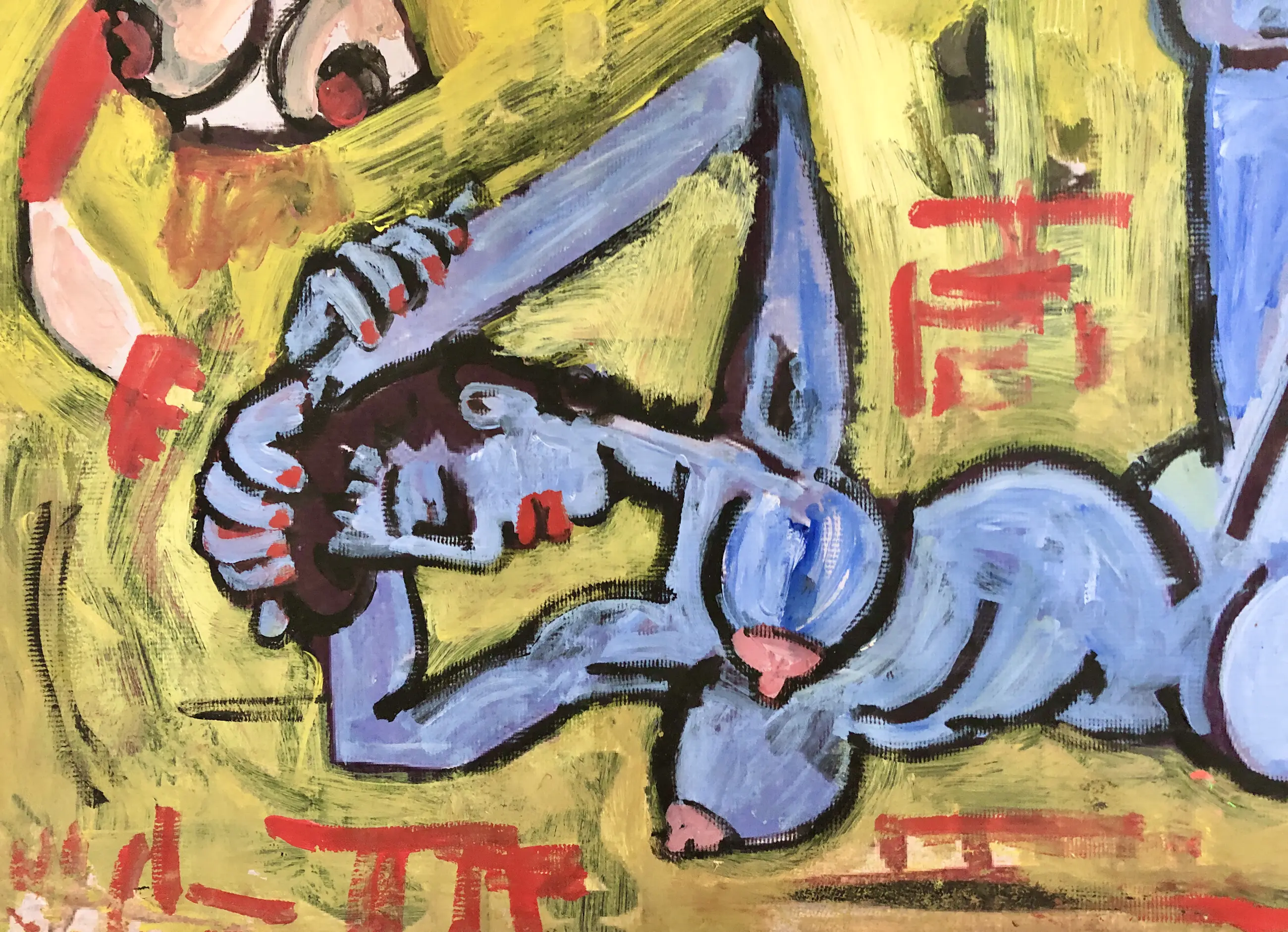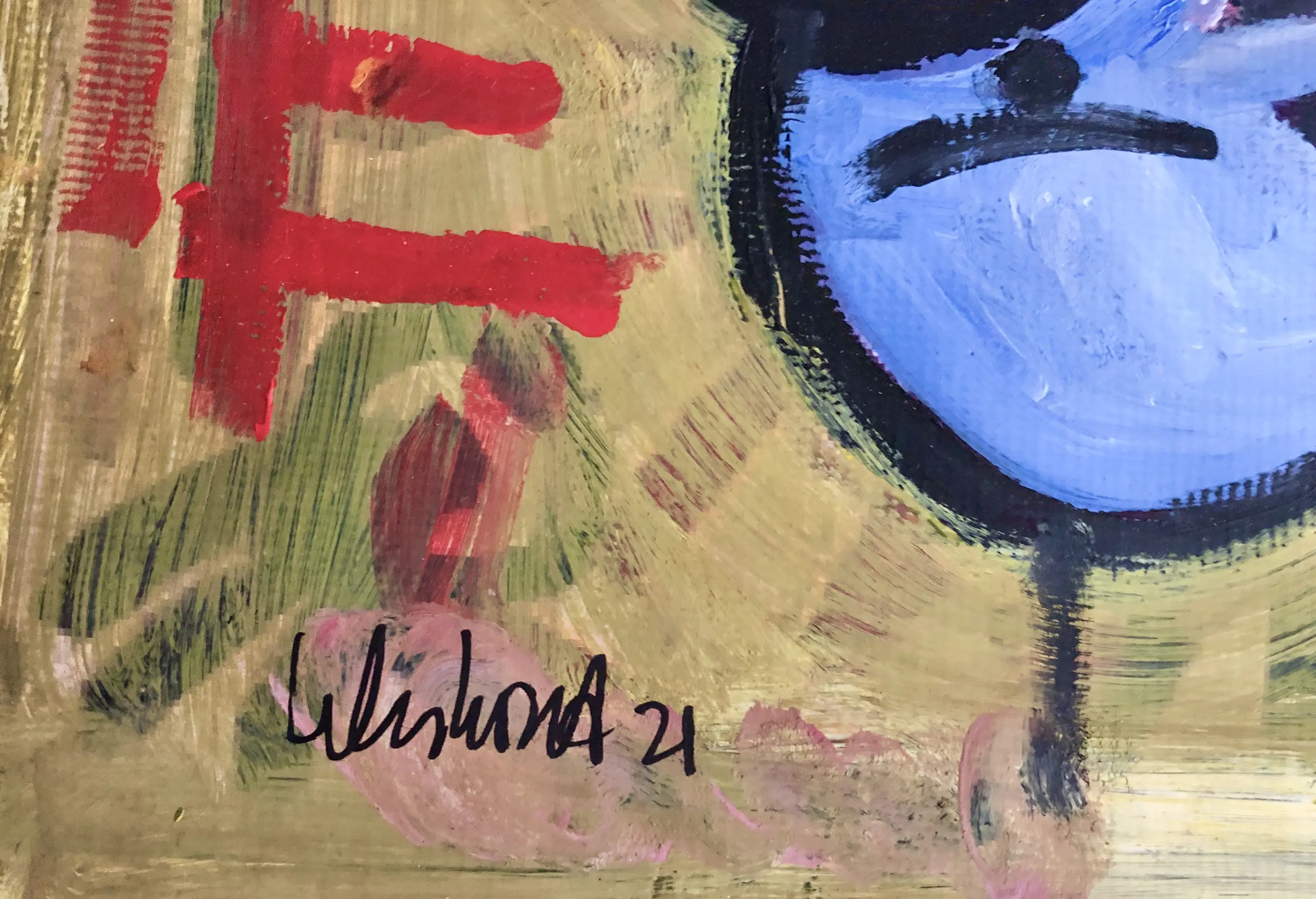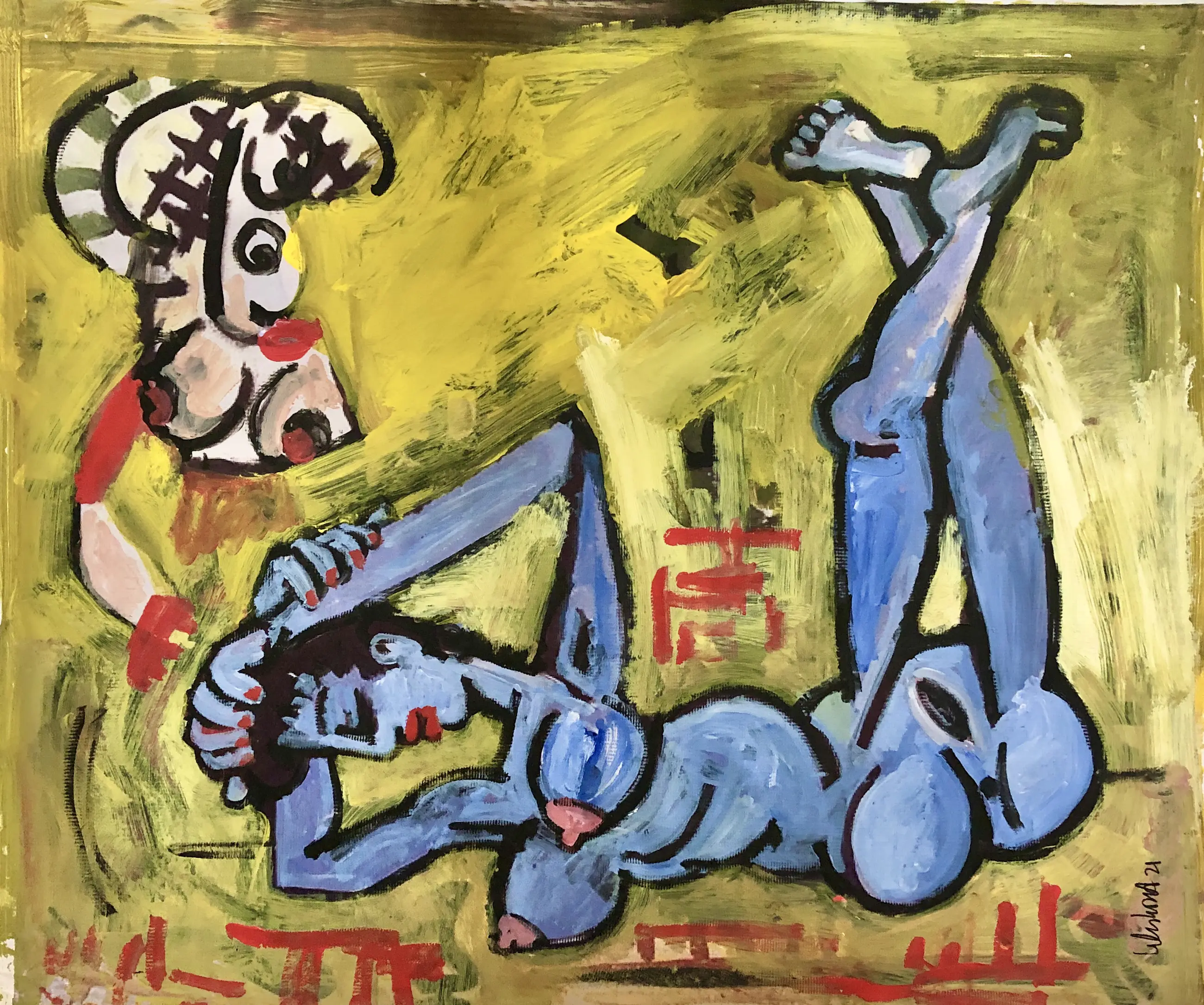 Acrylverf op bisonyl doek.