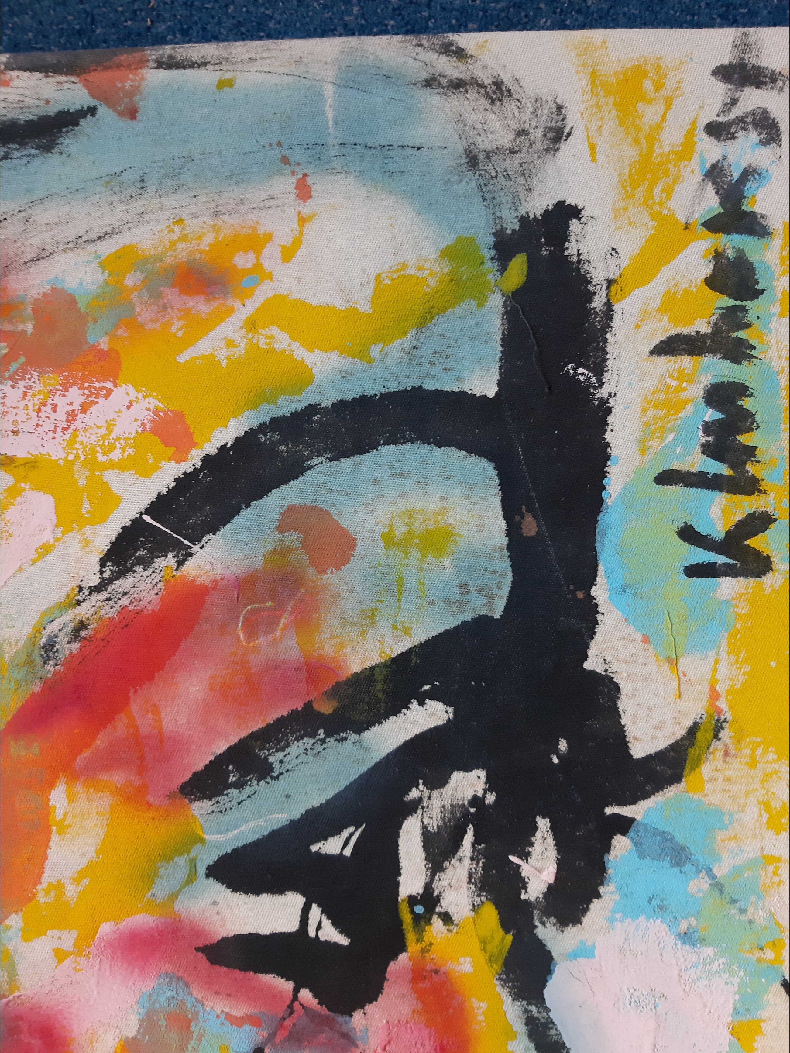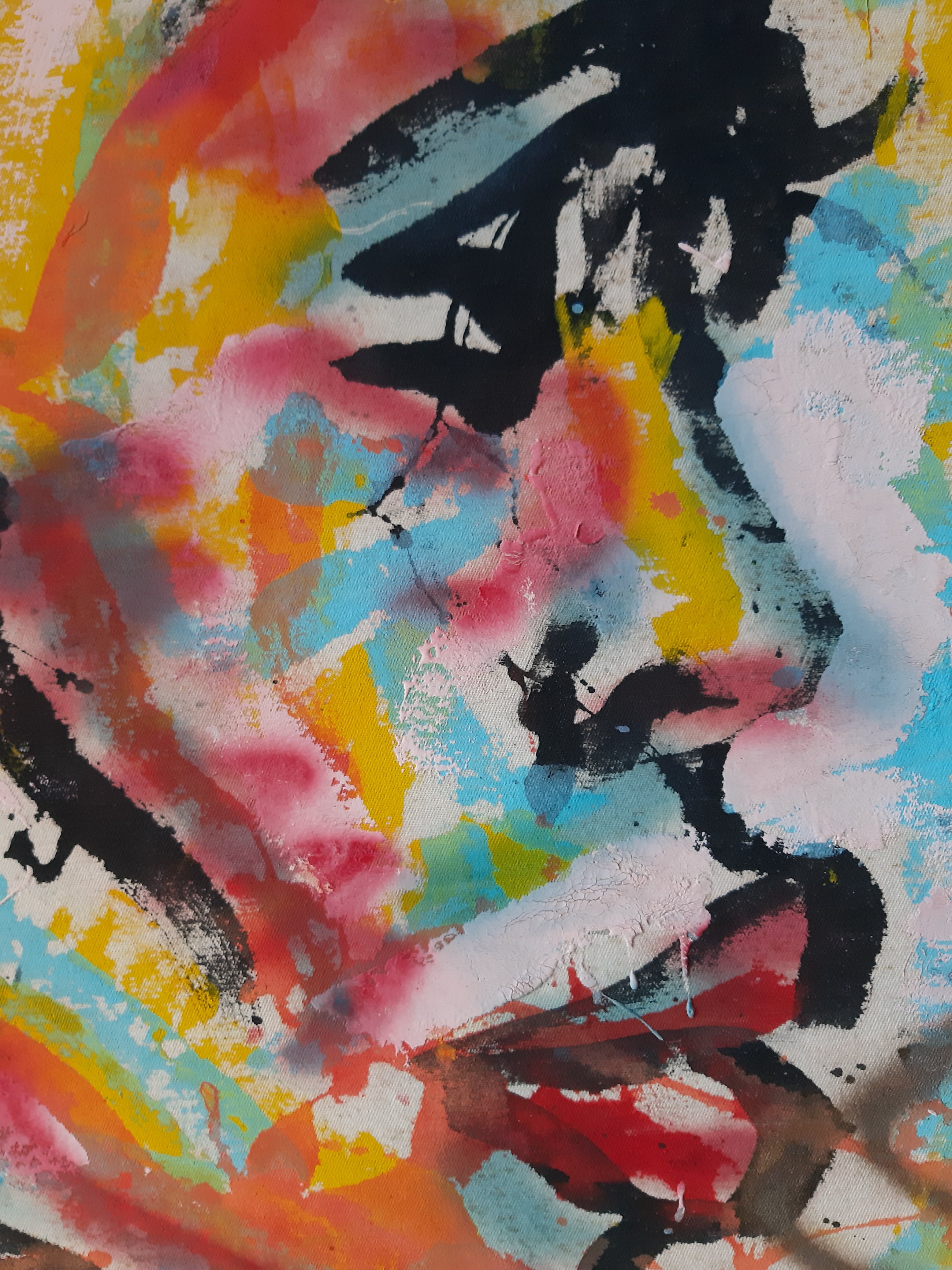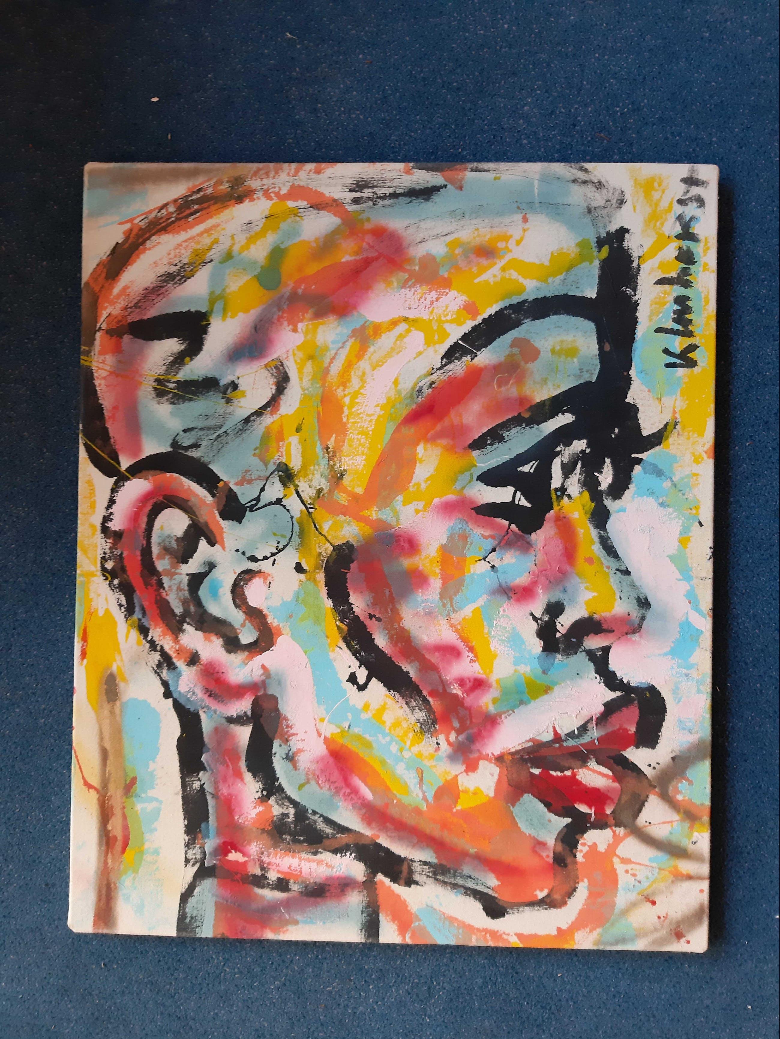 Peter Klashorst, kleurrijk portret van een Afrikaanse dame in acryl op doek, opgespannen op een houten spieraam; handgesigneerd, rechtboven; afmeting: 80 x 66 cm