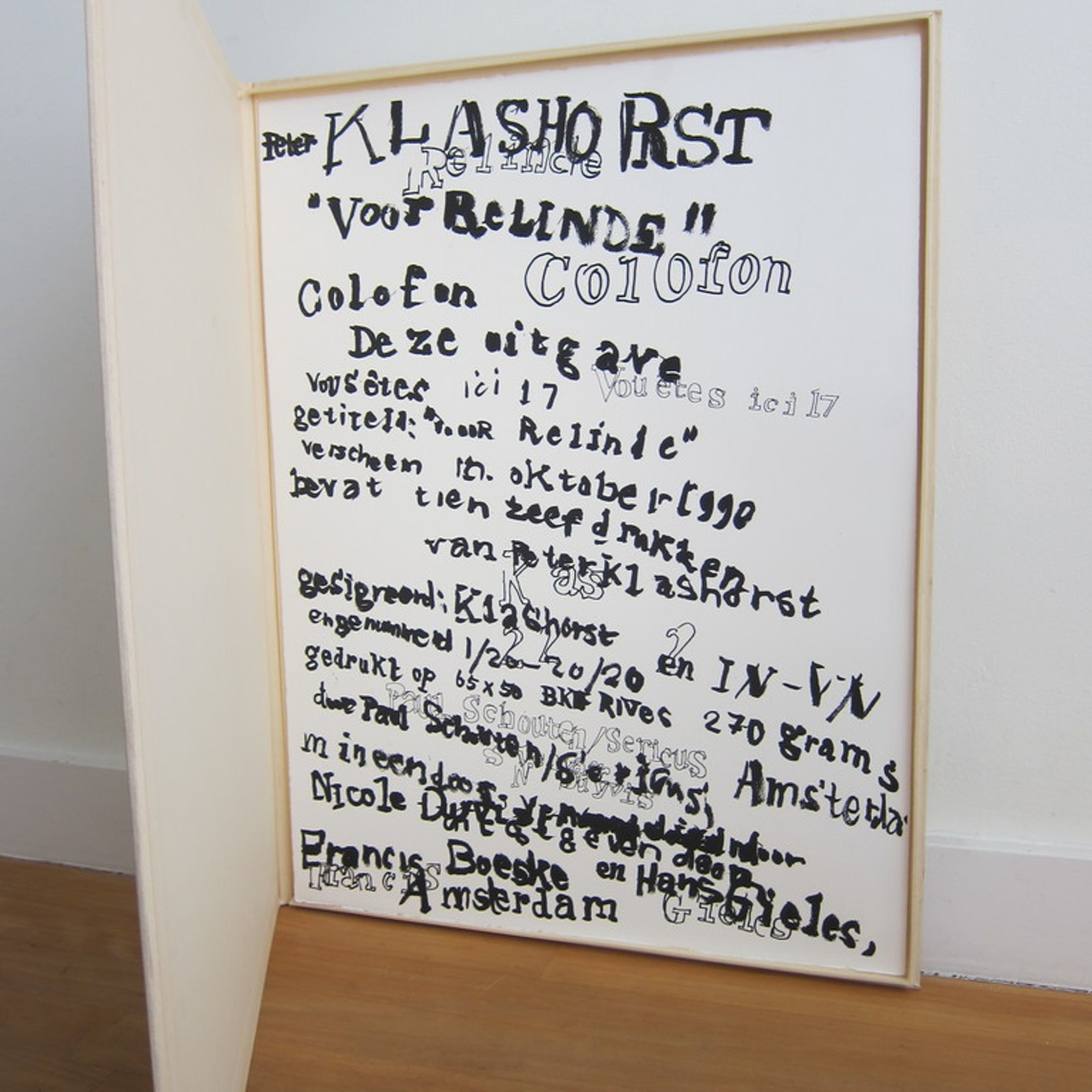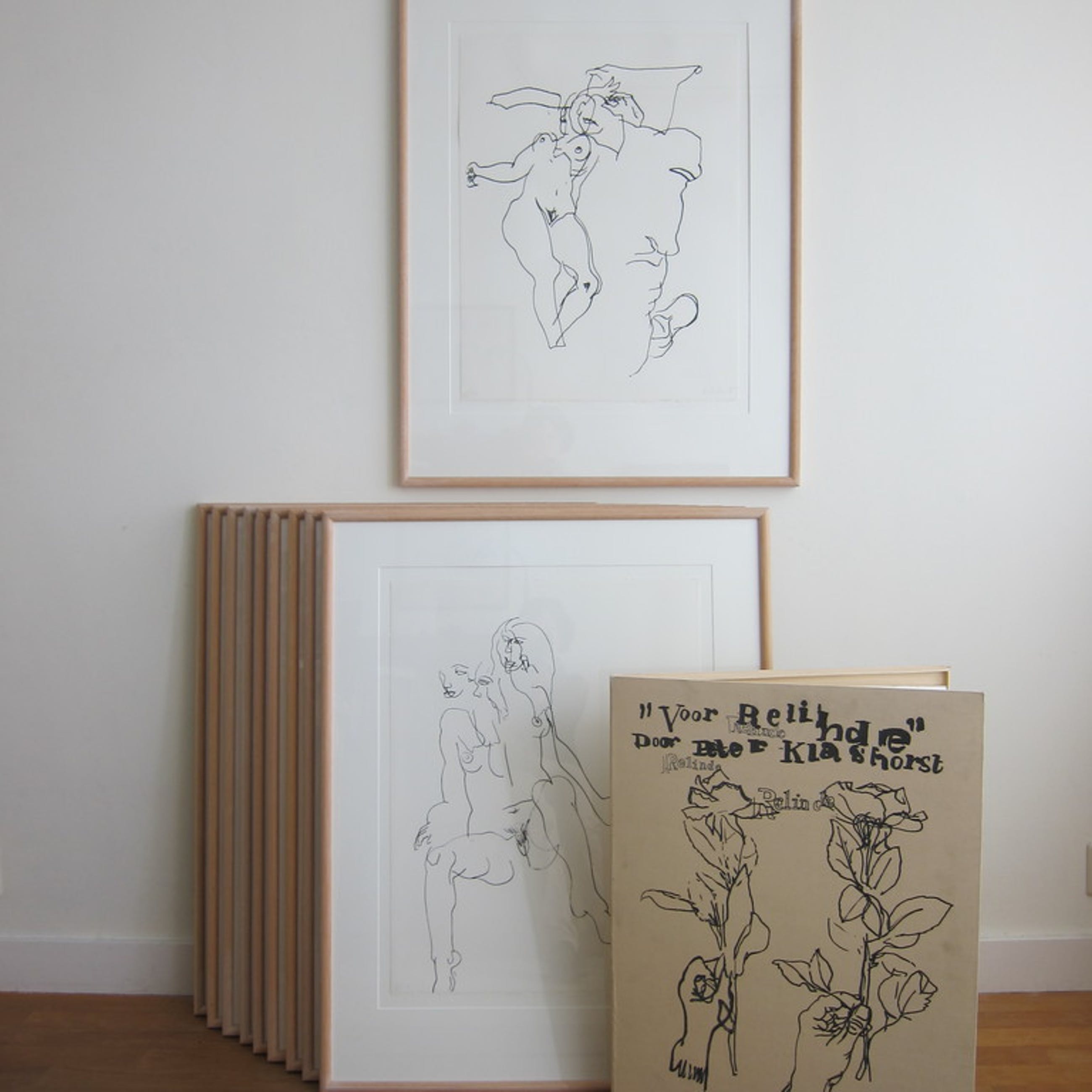 10 gesigneerde zeefdrukken van Peter Klashorst. Ingelijst, met passepartout en in witgewassen houten lijst. Afmetingen zeefdrukken: 50 x 66 cm. Afmetingen lijst: 73 x 93 cm. Afmeting verzamelmap: 52 x 69 cm. De verzamelmap heeft als titel 'voor Relinde' en is aan voorzijde voorzien van de naam voor wie de zeefdrukken gemaakt zijn, en van tekeningen van rozen. Aan de binnenzijde is informerende tekst aangebracht. De verzamelmap is verschenen in 1990. De zeefdrukken zijn gedrukt op stevig 270 gr. papier en in goede staat!