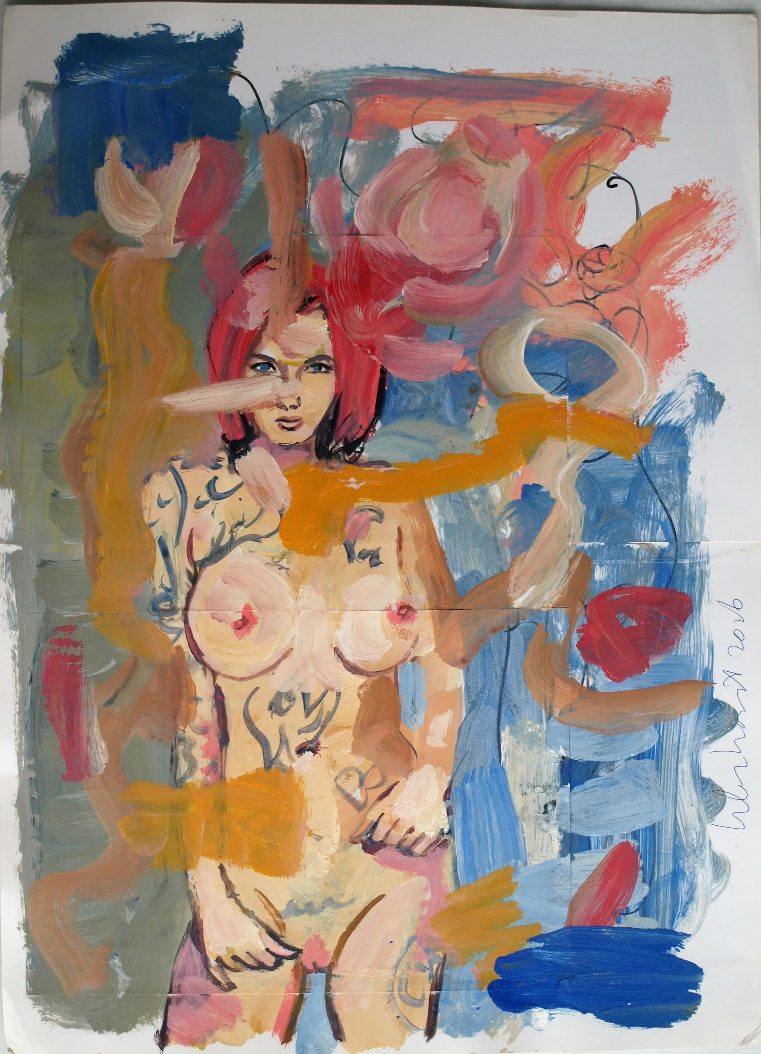 Peter Klashorst. Titel : Beauty. Techniek : Collage / gemengde techniek op stevig papier. Peter heeft vellen papier aan elkaar gemaakt om een groter werk te kunnen maken. Niet storend na inlijsting. Mooi formaat : 42 x 57 cm. Handgesigneerd en gedateerd : Peter Klashorst 2016.