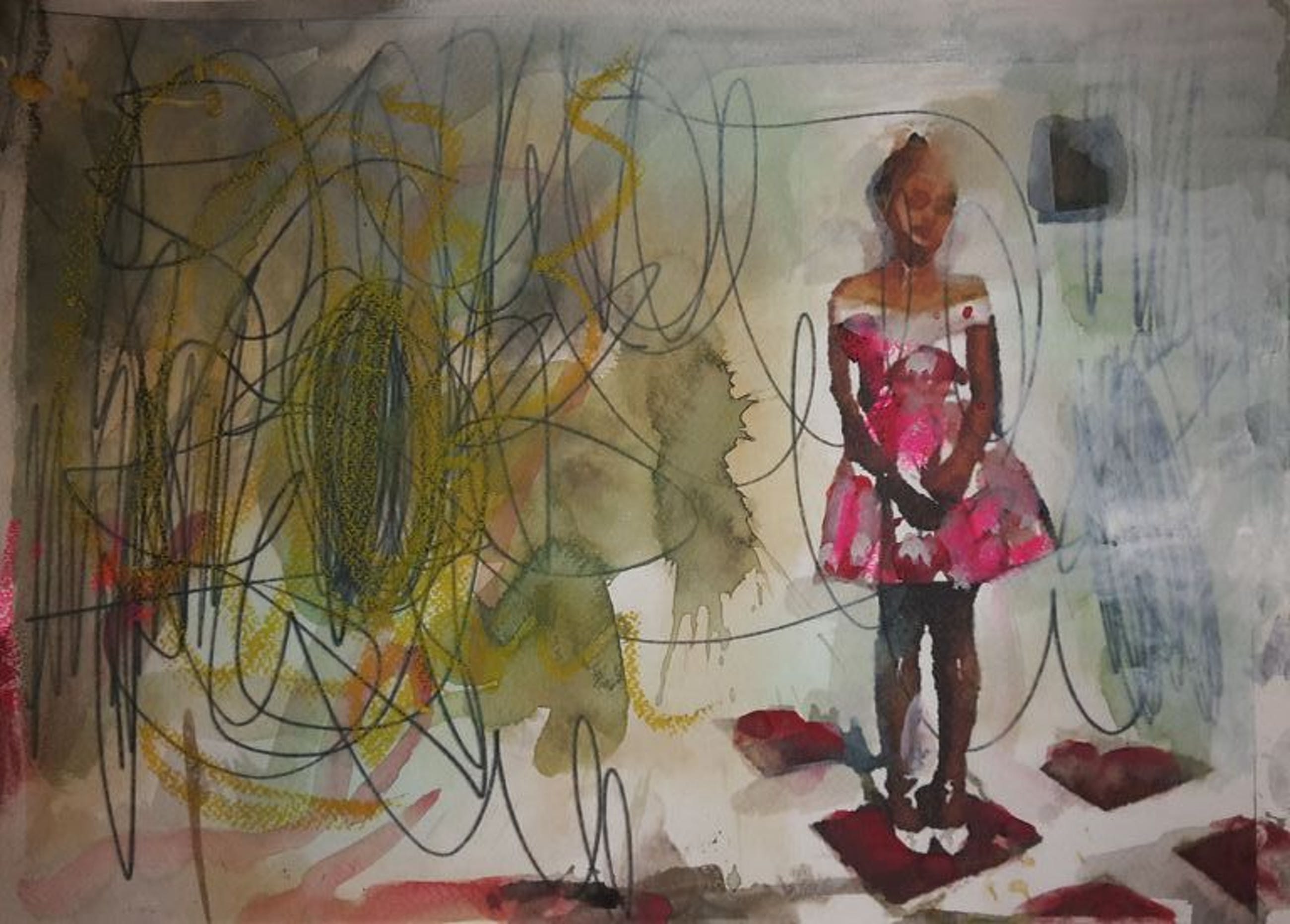 Origineel werk van Peter Klashorst, gemengde techniek op aquarel papier.