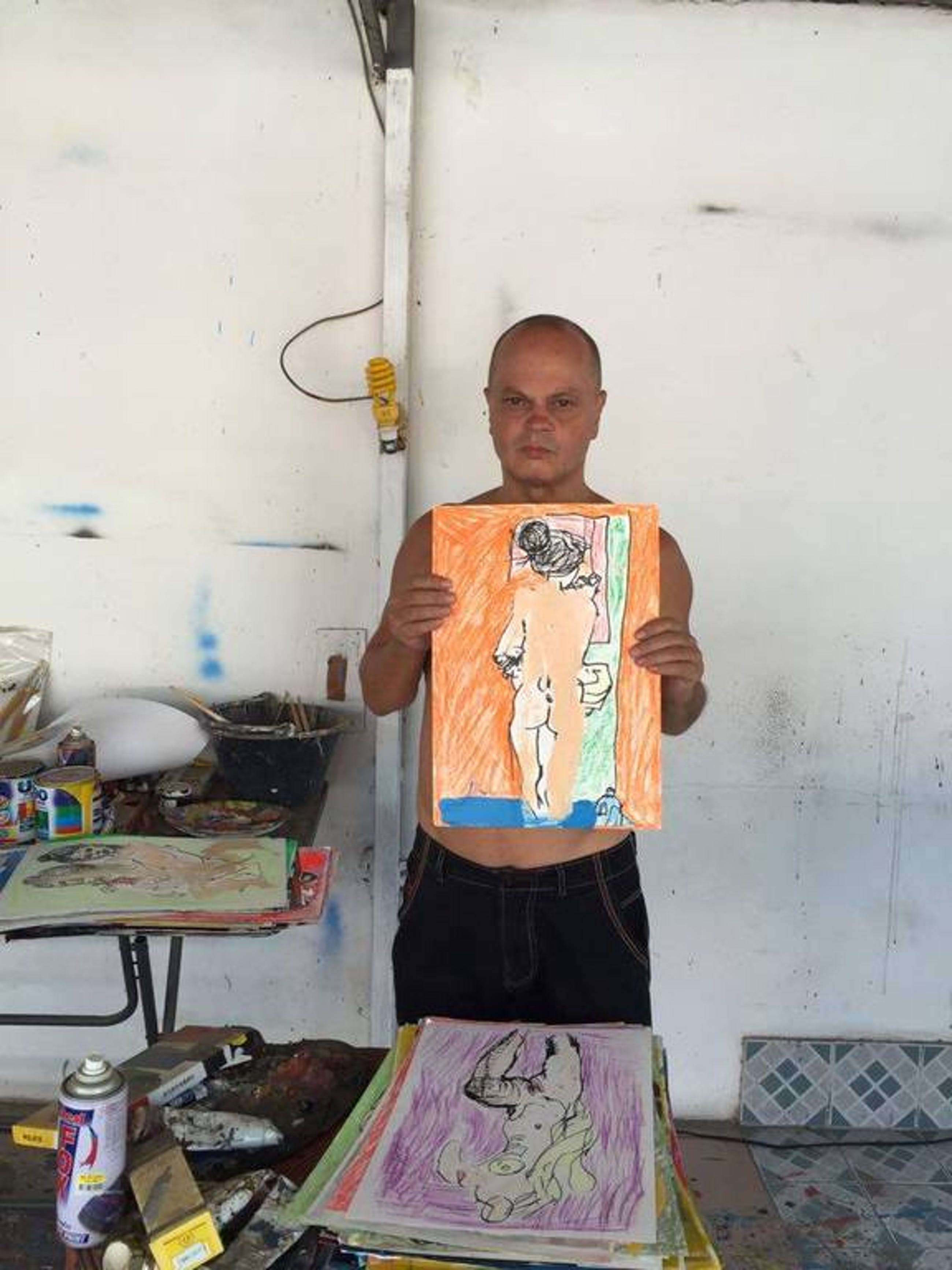 Origineel werk van Peter Klashorst, gemengde techniek op papier.