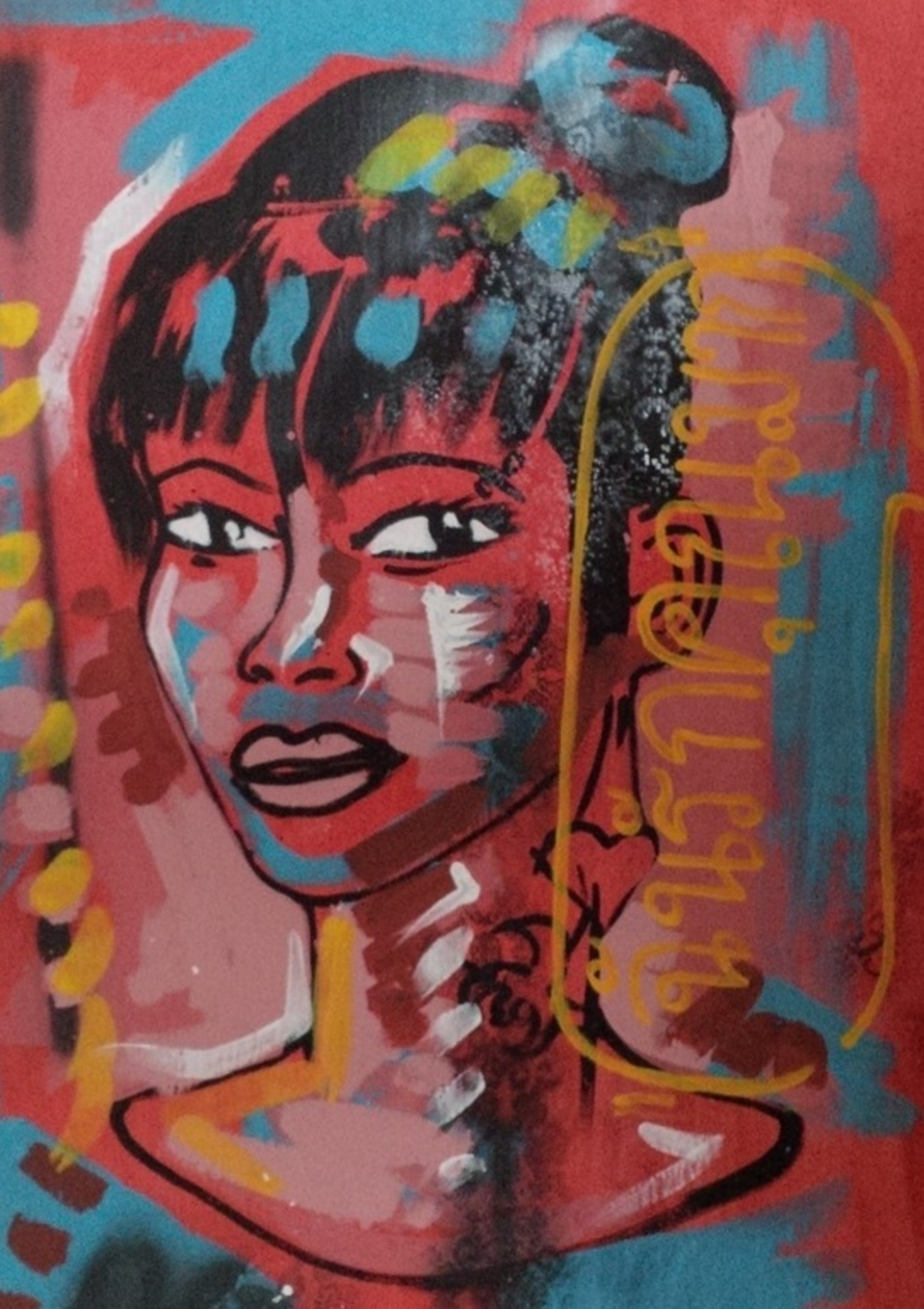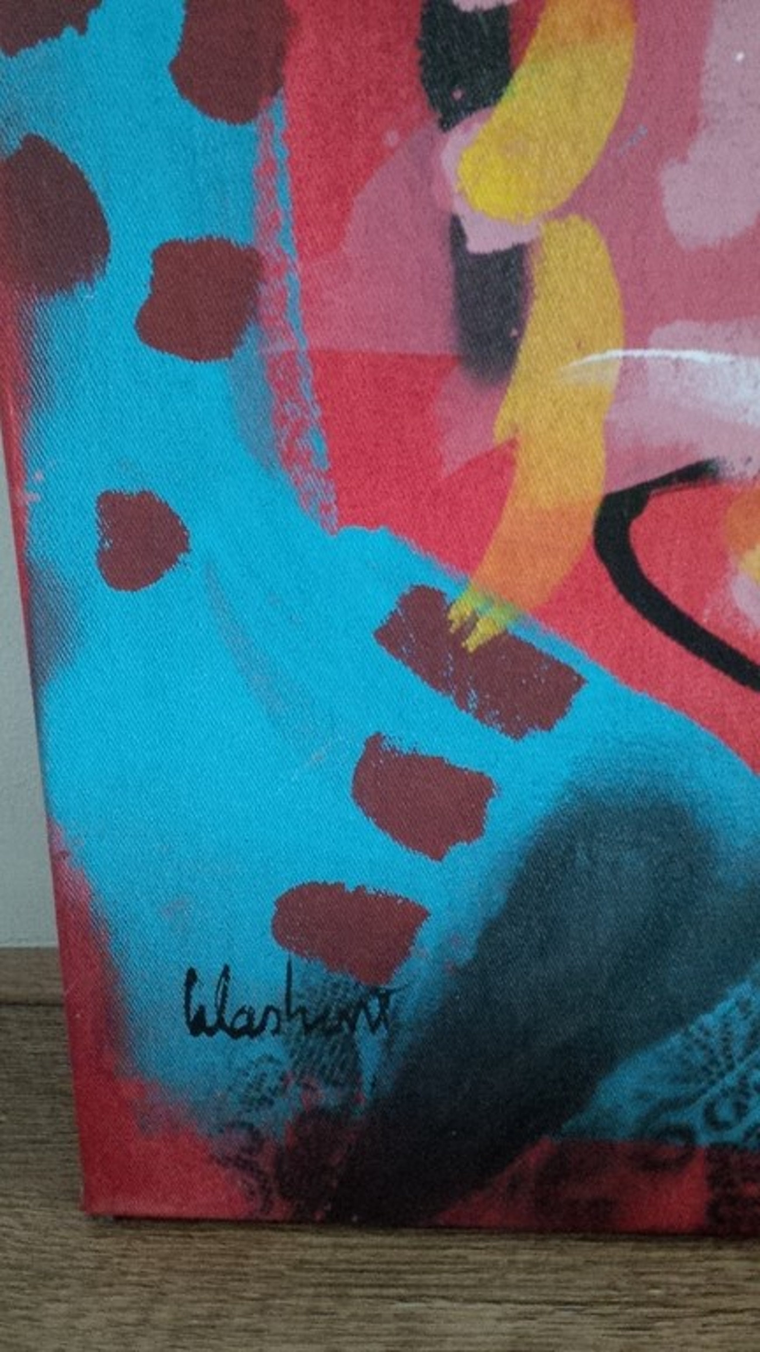 Techniek: acryl op doek en opgespannen op steving raamwerk (kan zo aan de muur)