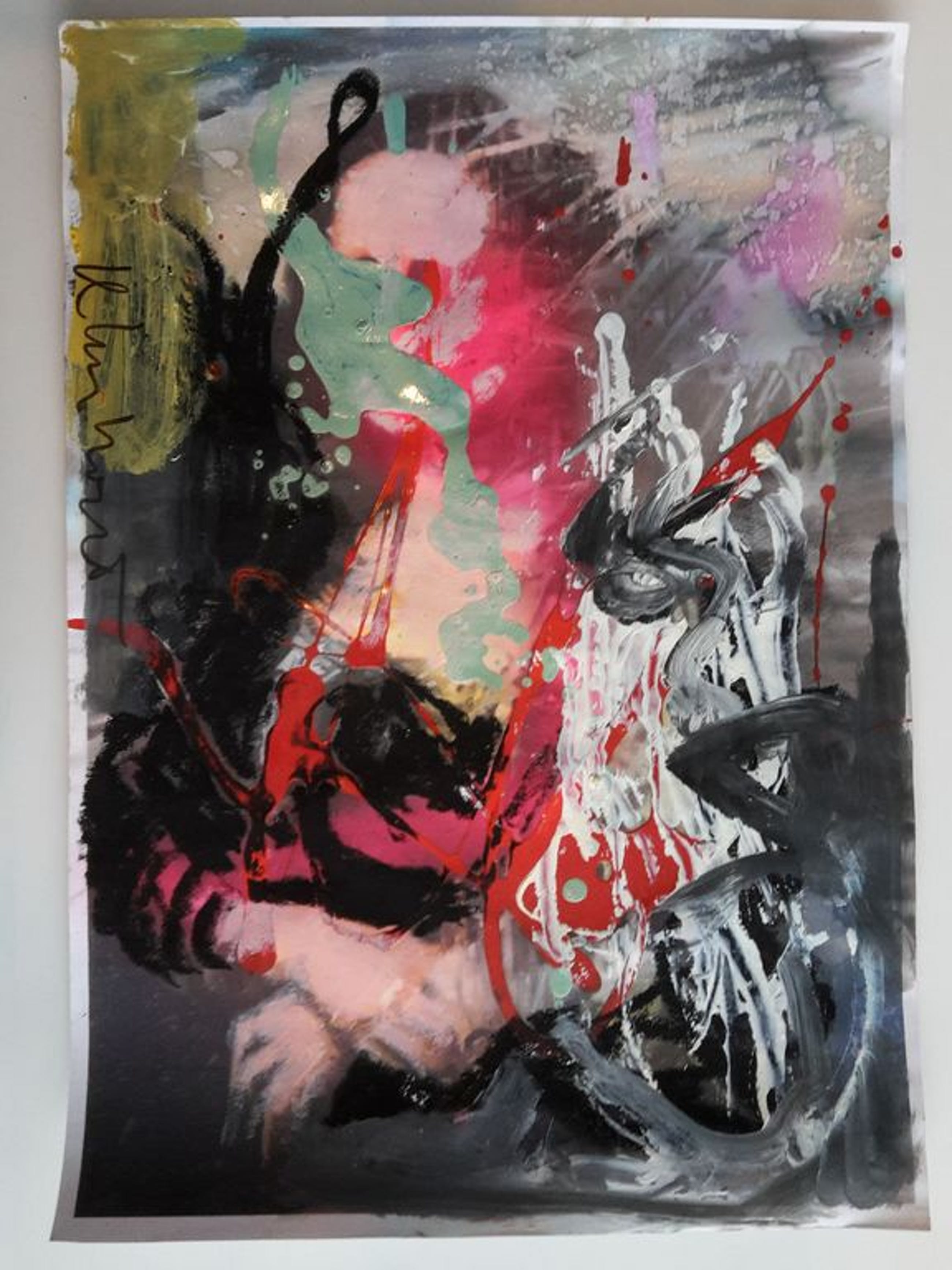 Omdat er van Peter Klashorst veel vals werk in omloop is gaat hij met elk werk op de foto.
