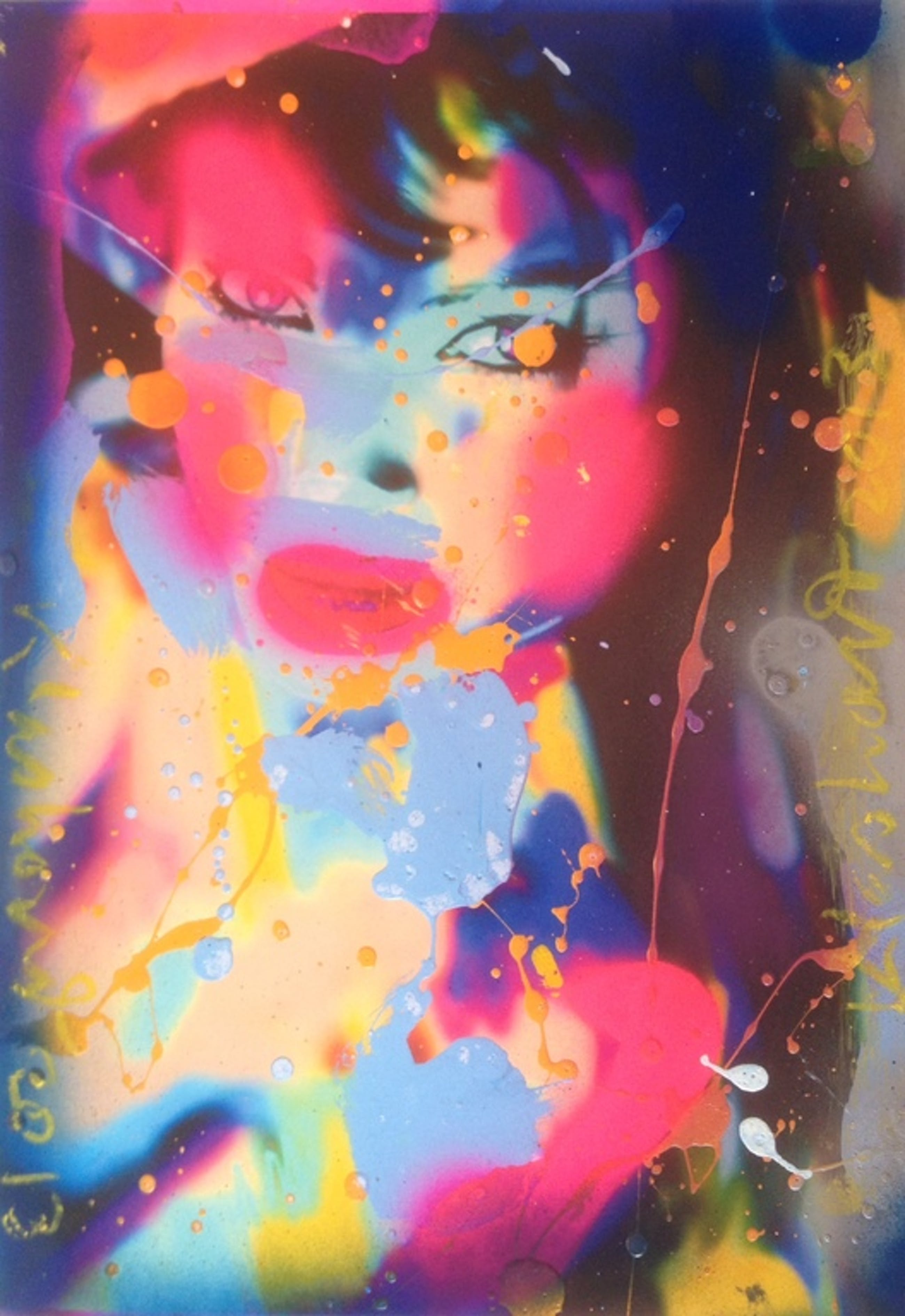 De afmeting van het werk is circa 40 x 30 cm, gebruikte techniek is acryl verf en spuitbus op papier.