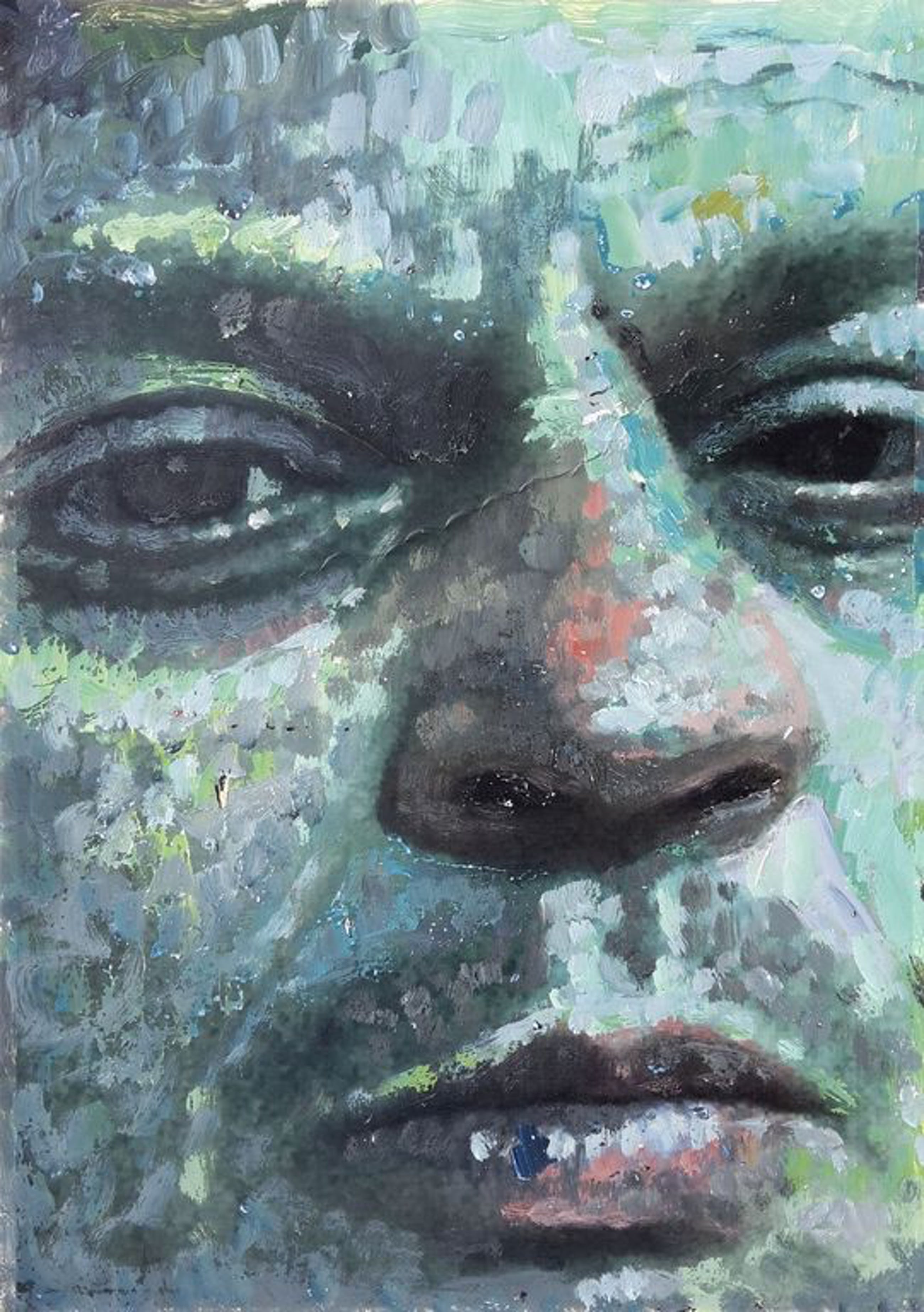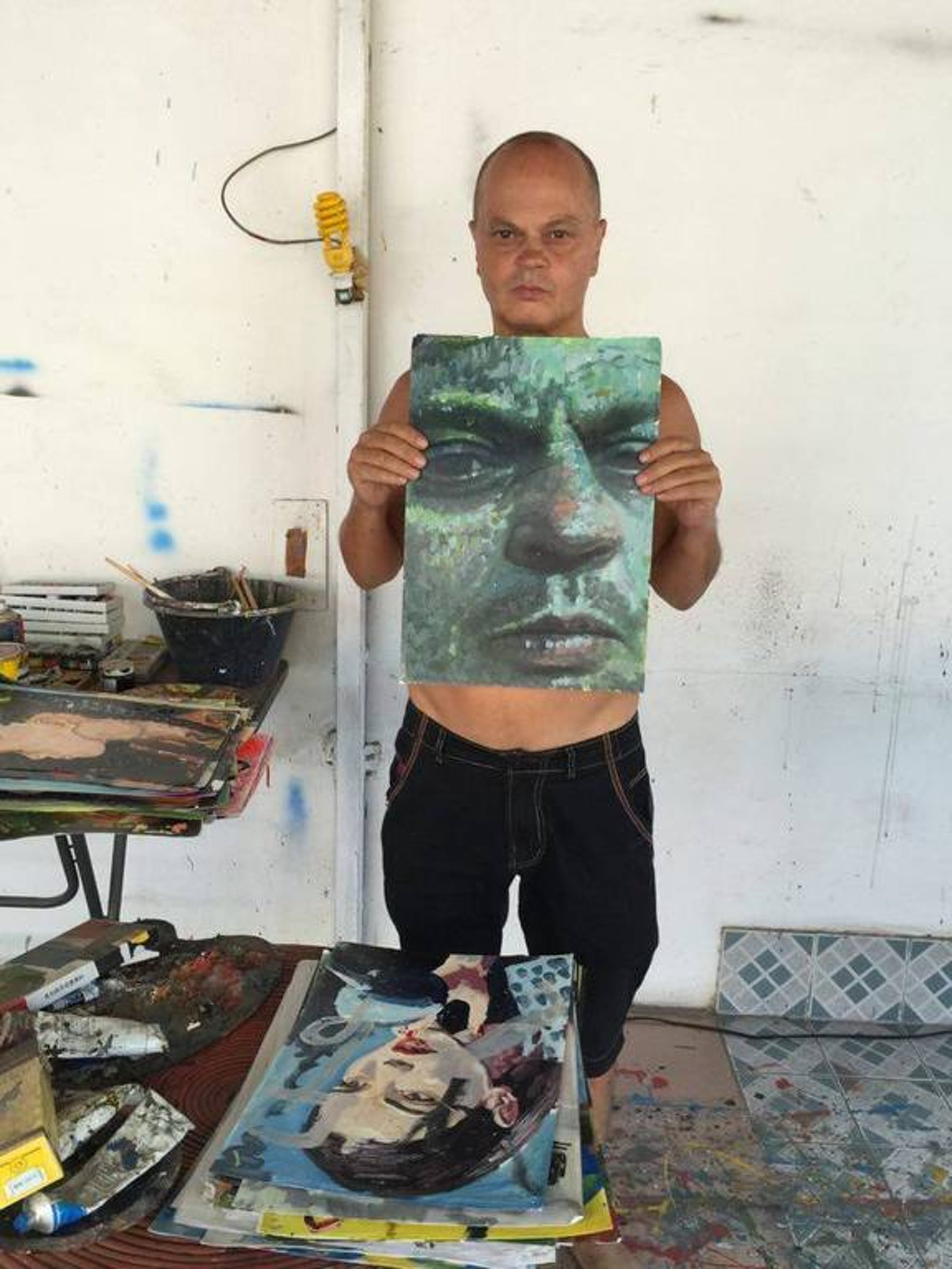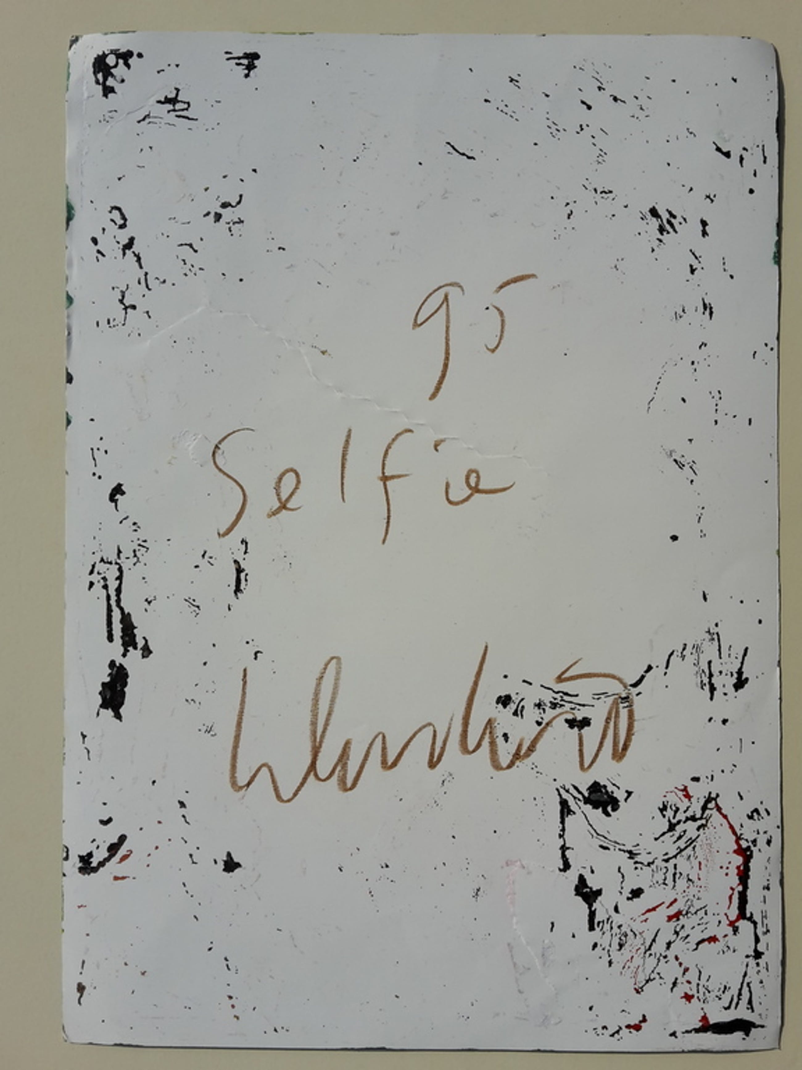 Foto waarop de kunstenaar het werk toont via email aan de hoogste bieder.