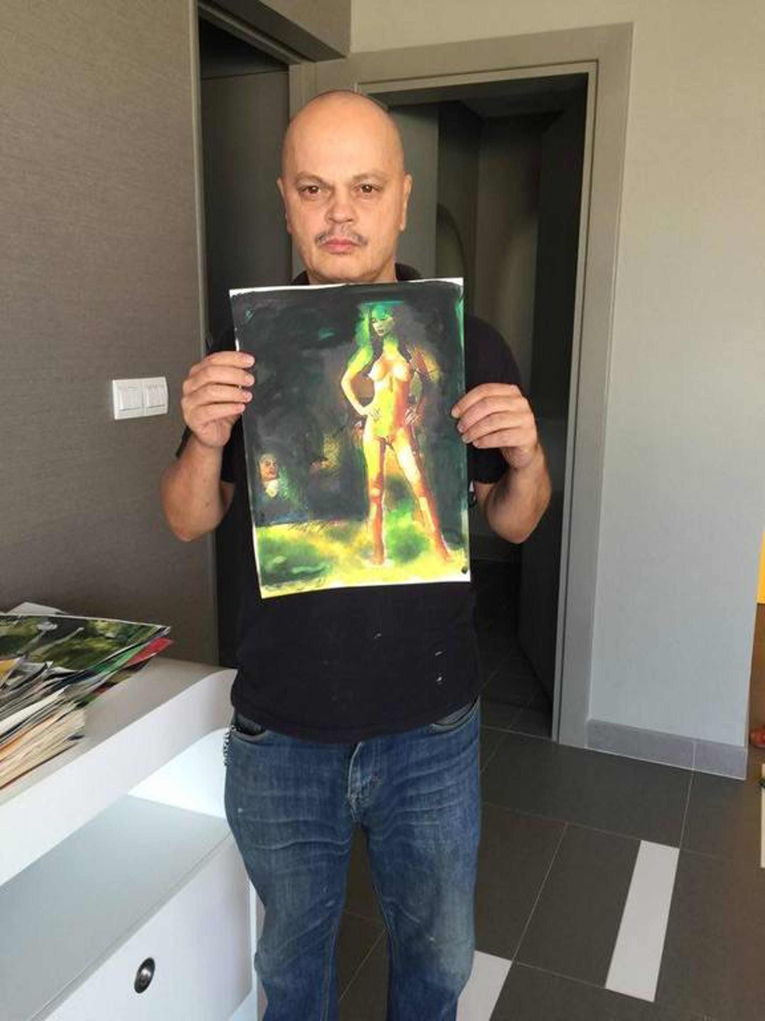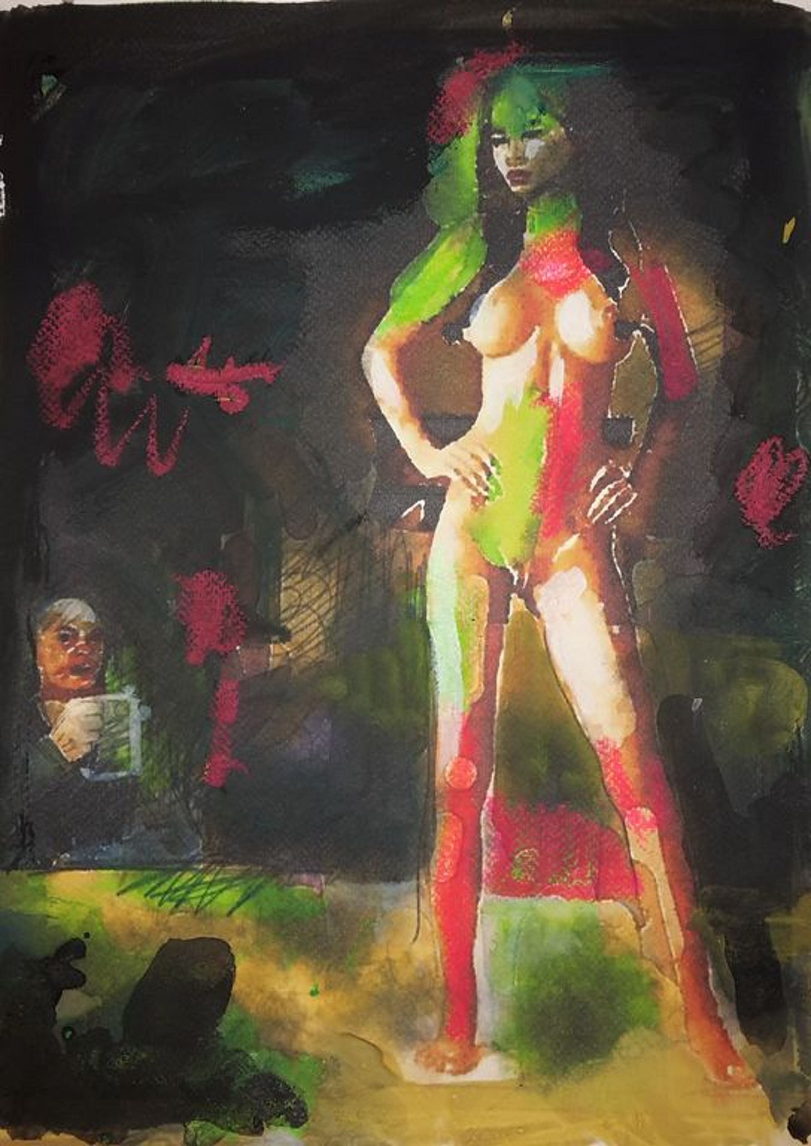 Peter Klashorst - Peter Klashorst - Selfportrait... - gemengde techniek op papier - gesigneerd - Verkocht