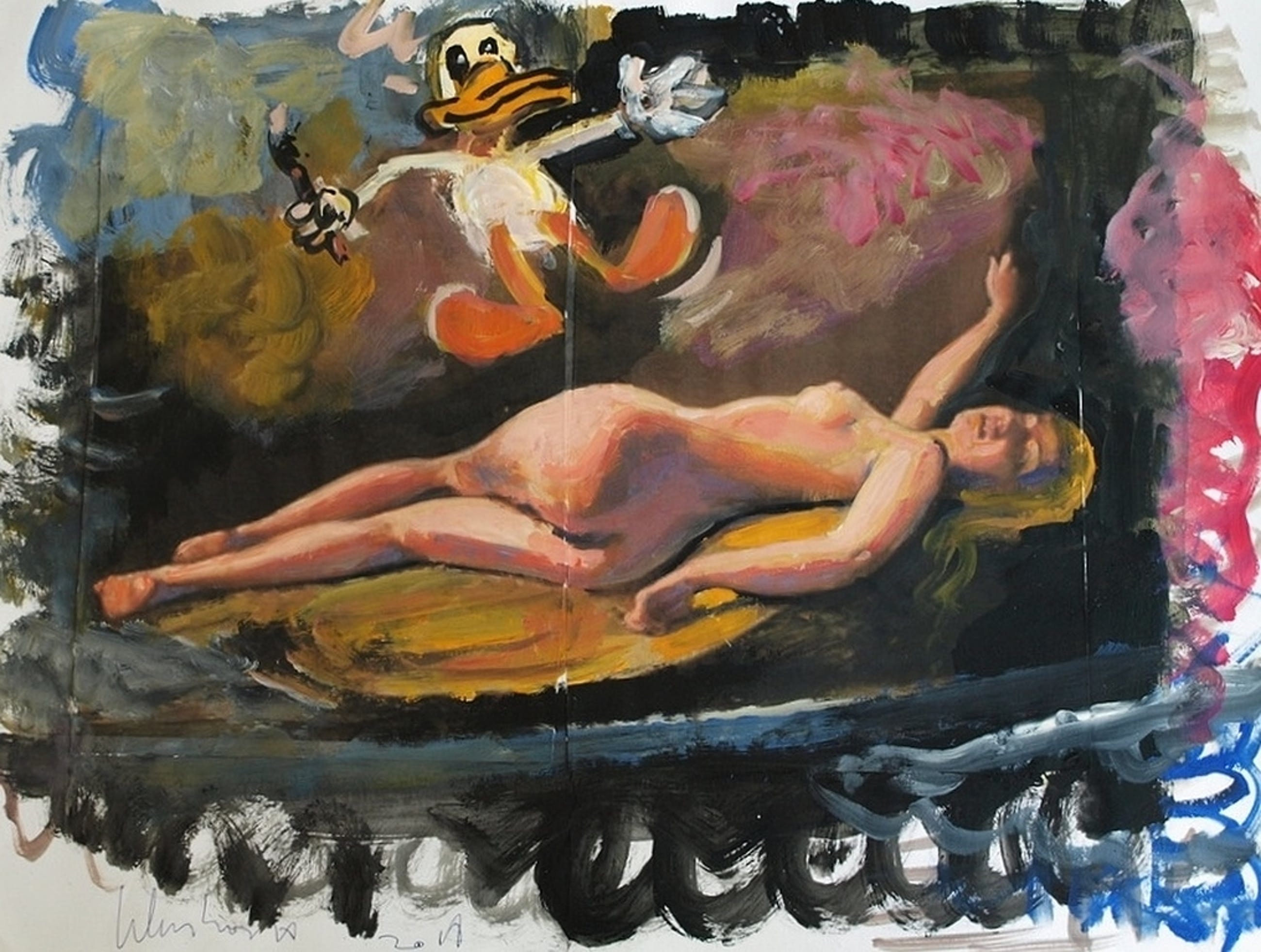 Een werk op papier van de Nederlandse kunstenaar Peter Klashorst (1957).