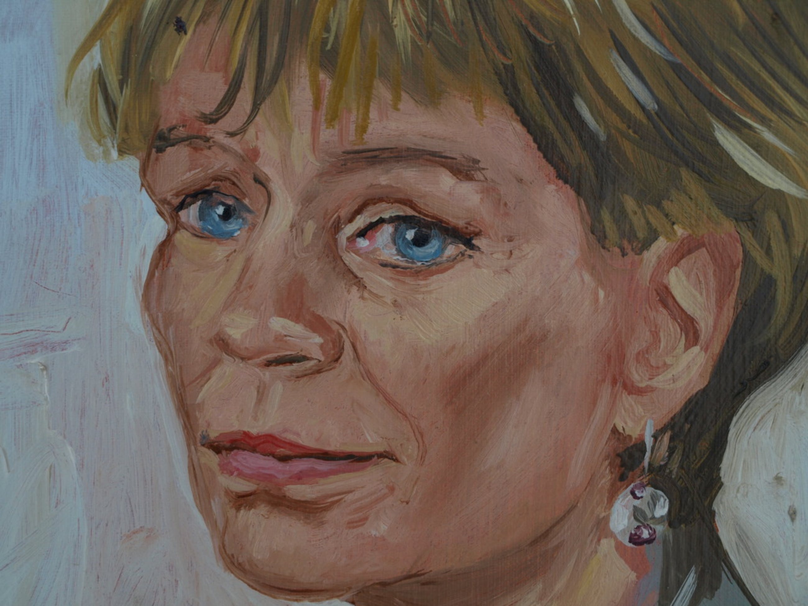 Een werk van Peter Klashorst uit 1998 met een portret van een vrouw (Connie Palmen?).