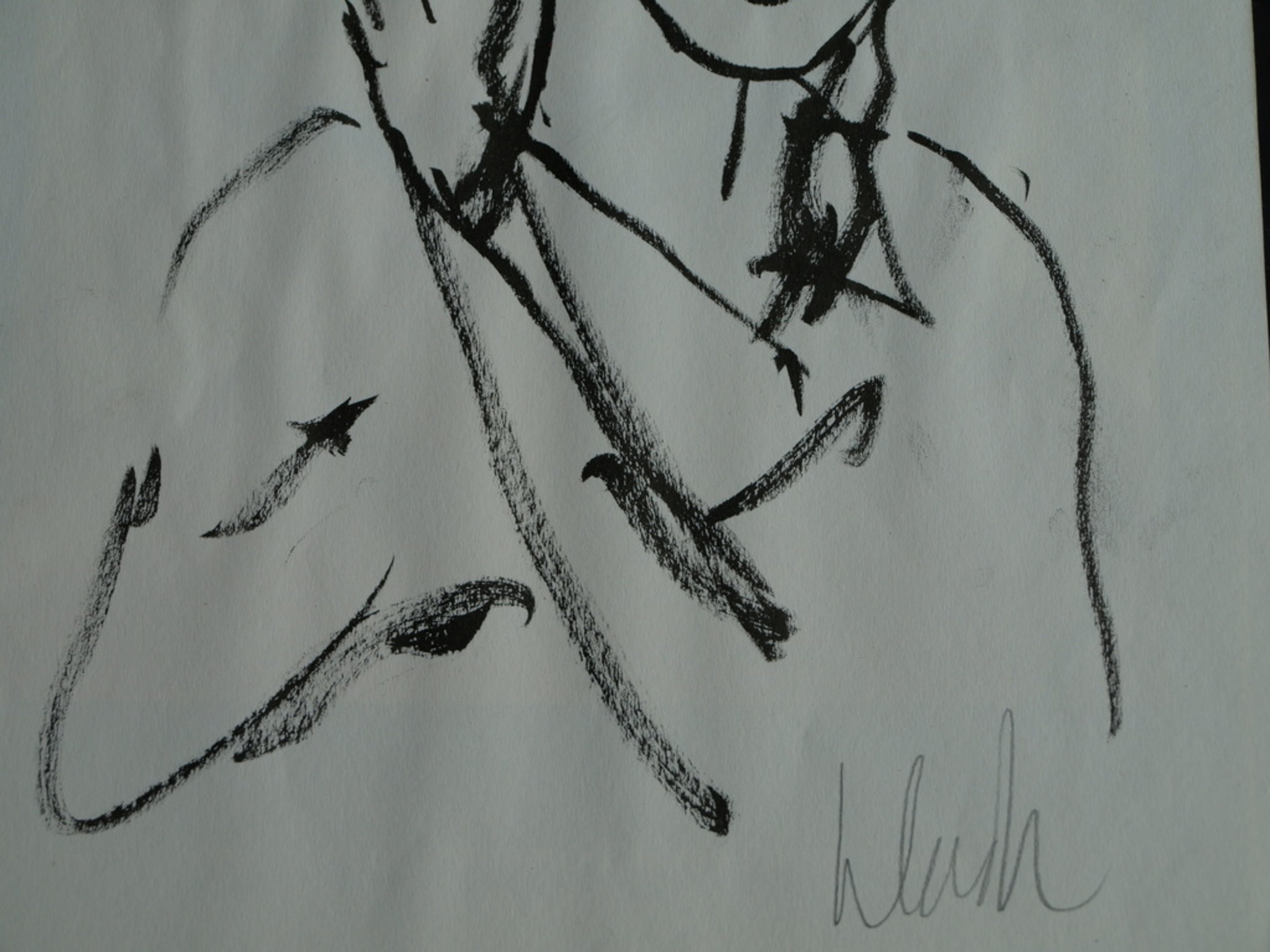 Een tekening / schets van de Nederlandse kunstenaar Peter Klashorst.