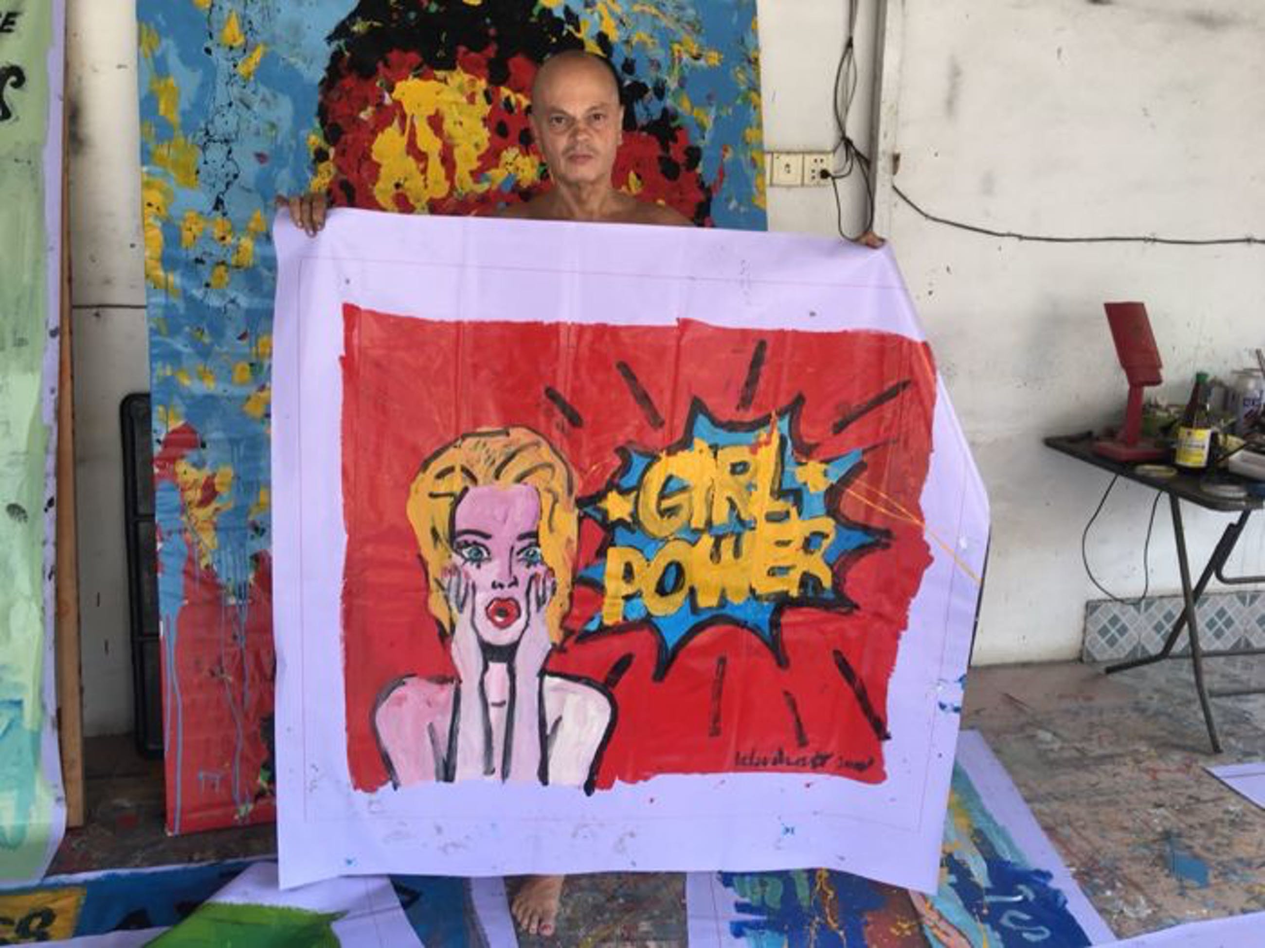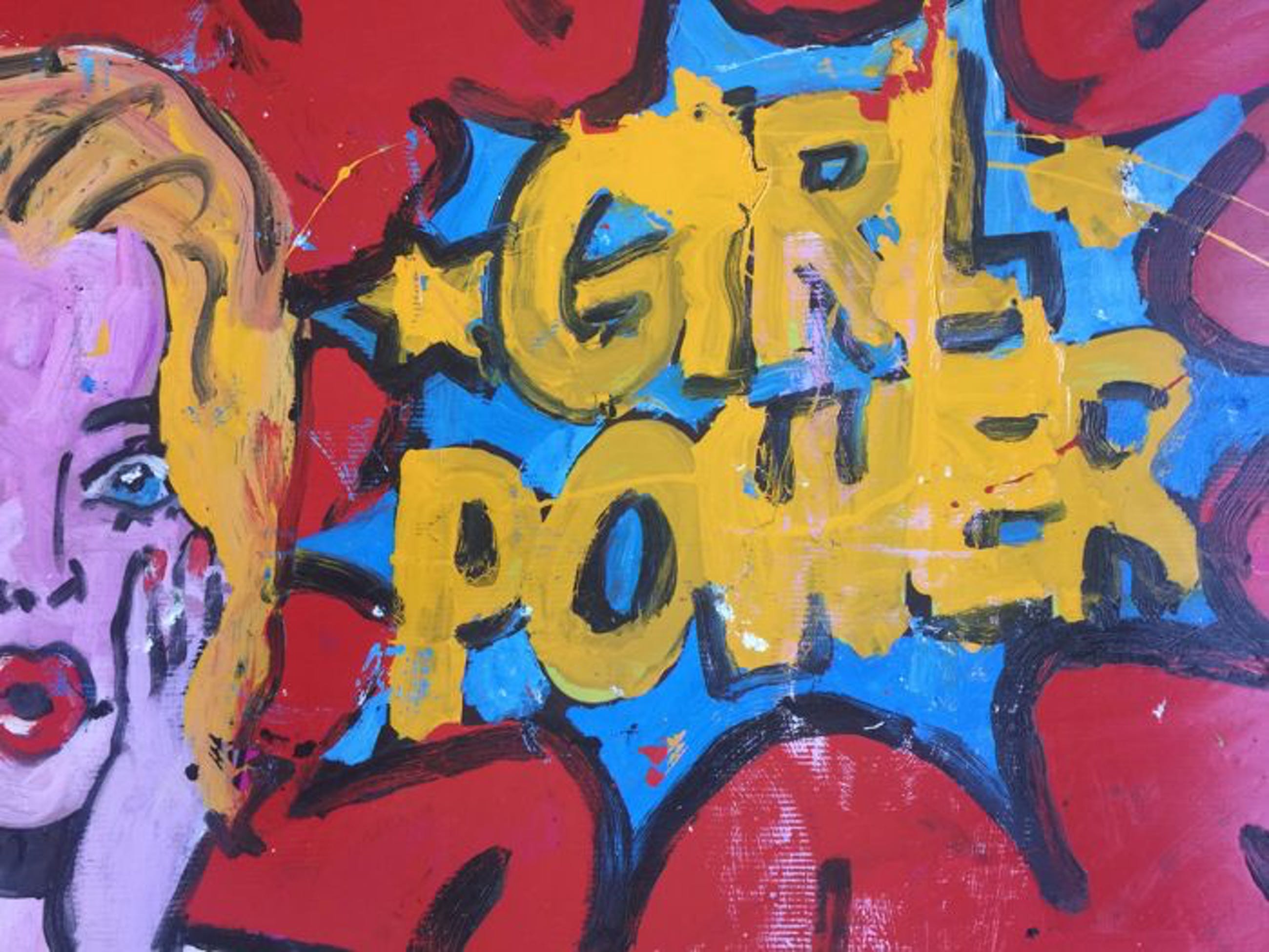 Acrylverf op bisonyl doek, opgespannen op een houten frame.