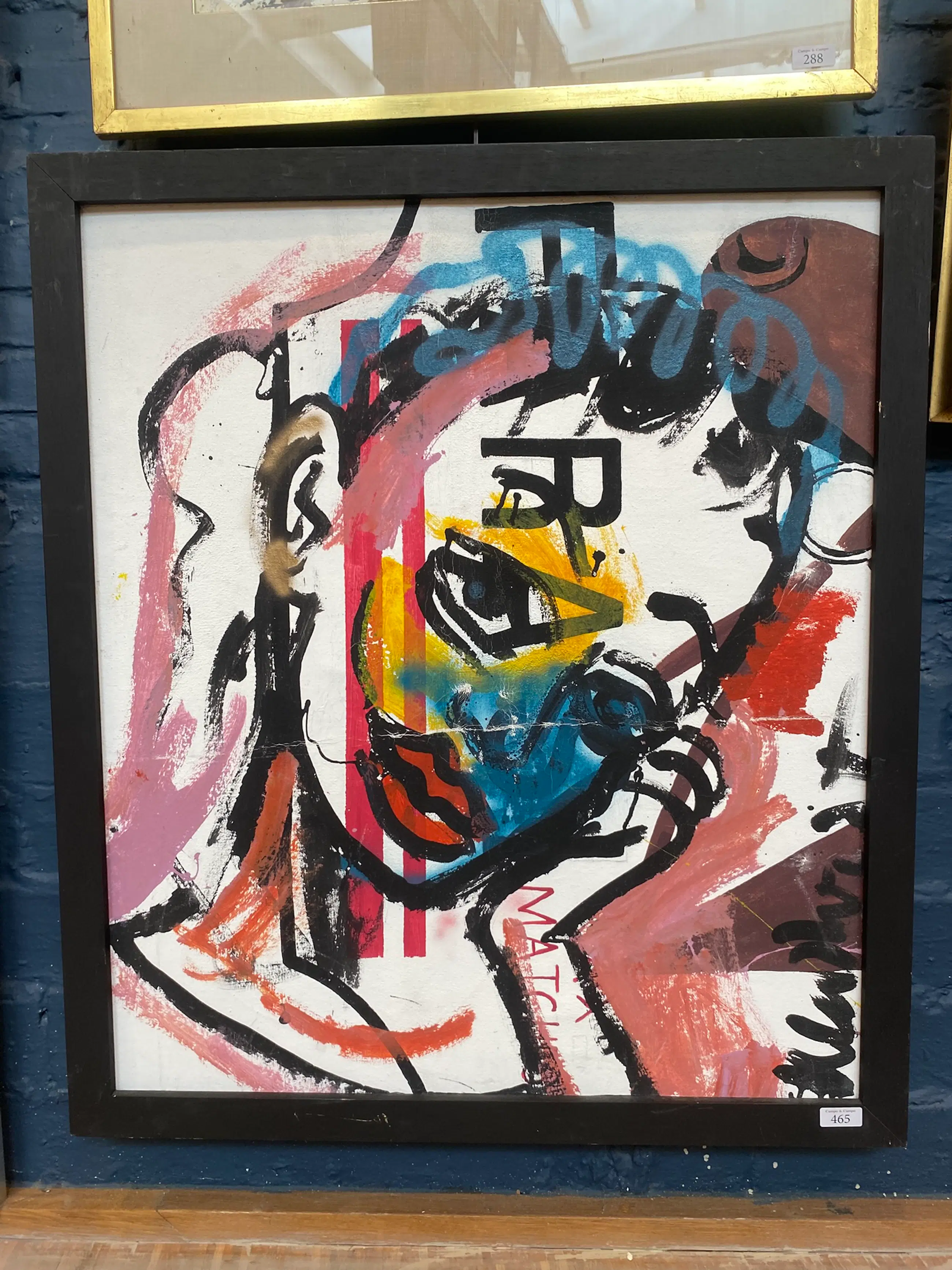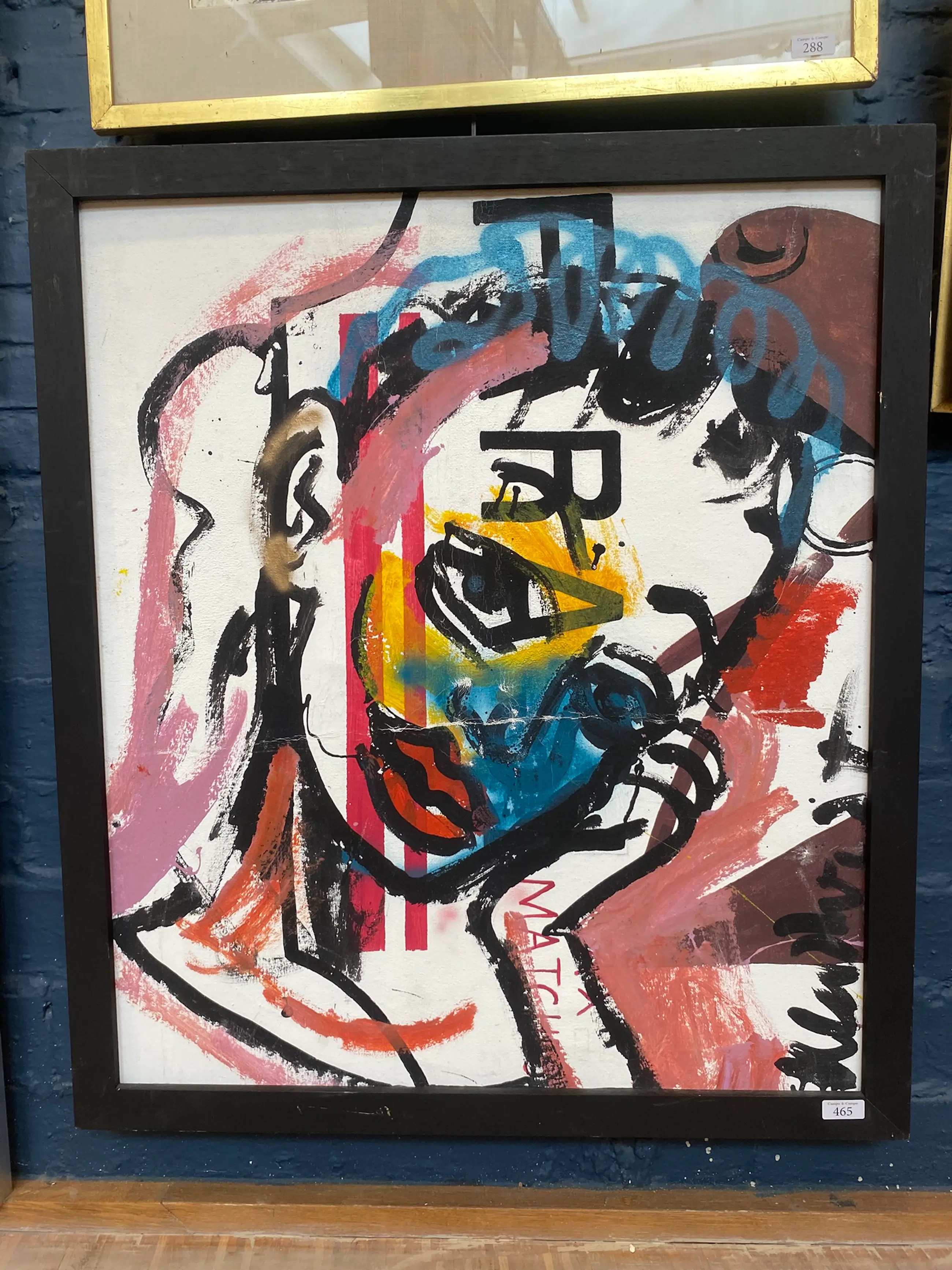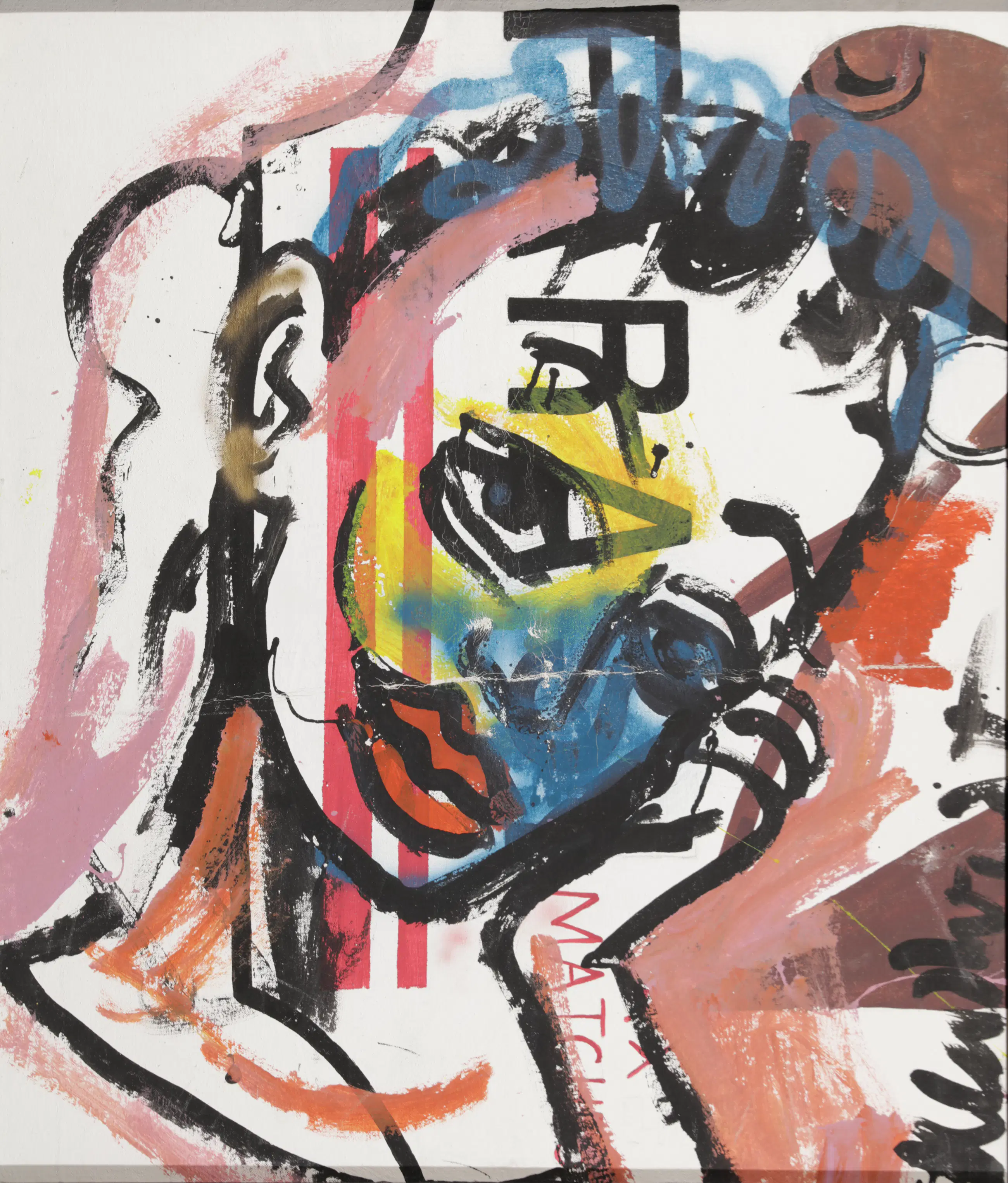 De invloeden van Street Art en Pop Art zijn duidelijk zichtbaar door het gebruik van graffiti-elementen en tekstfragmenten ("MATCH..."). Dit werk op canvas heeft een sterke visuele impact en is een prachtig voorbeeld van Klashorsts latere periode.