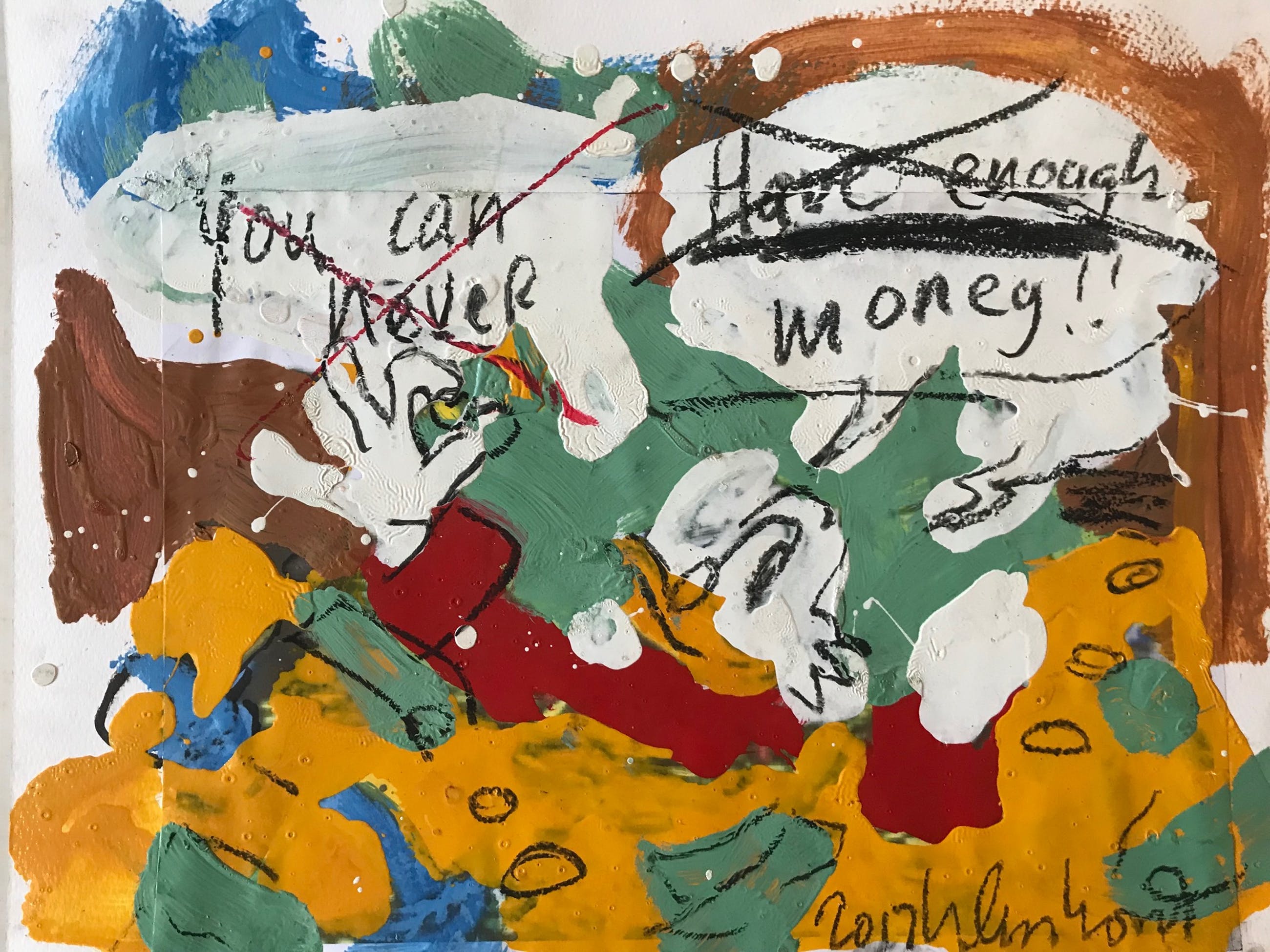 Origineel werk van Peter Klashorst uit serie Dagobert Duck waarop Dagobert zwemt tussen zijn geld.