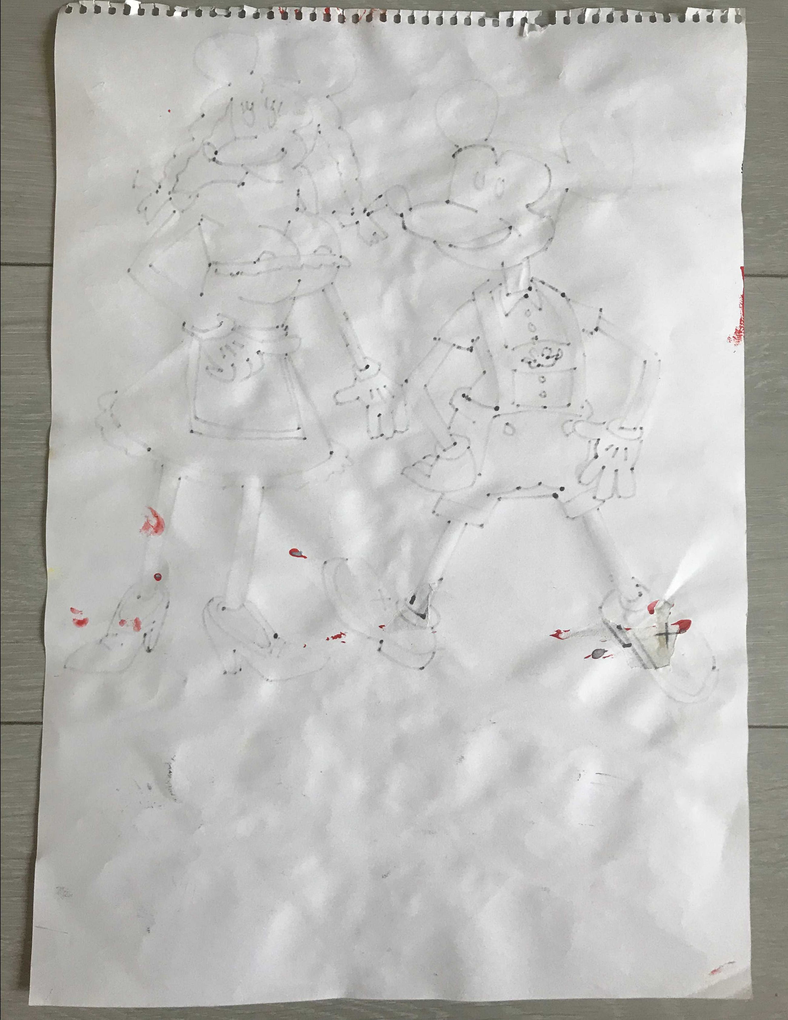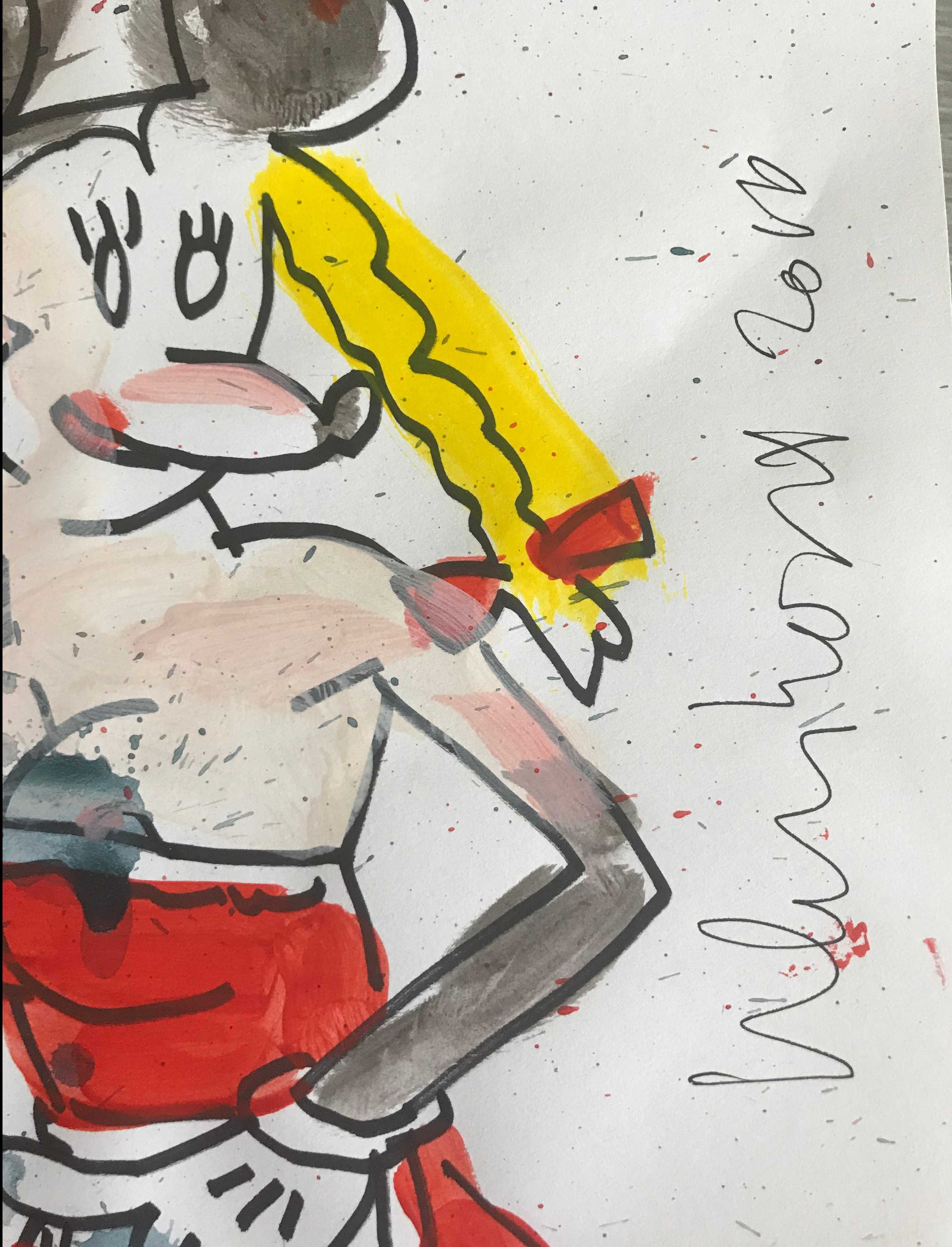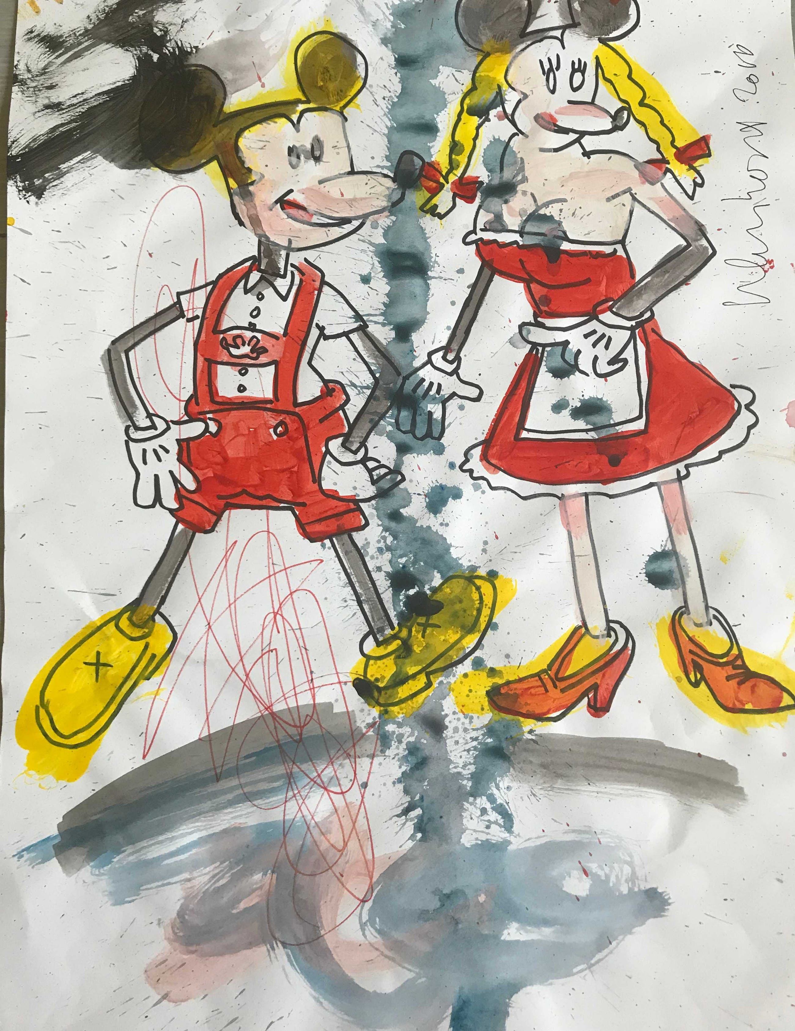Origineel werk van Peter Klashorst uit serie Mickey Mouse waarop Mickey met Minnie staat.