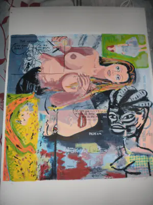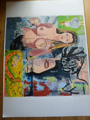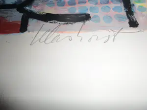 Deze zeefdruk, bestaande uit 30 drukgangen, kun je draaien en aan willekeurige zijde ophangen. Het is een leuk en blijvend schouwspel! Wordt weinig aangeboden...