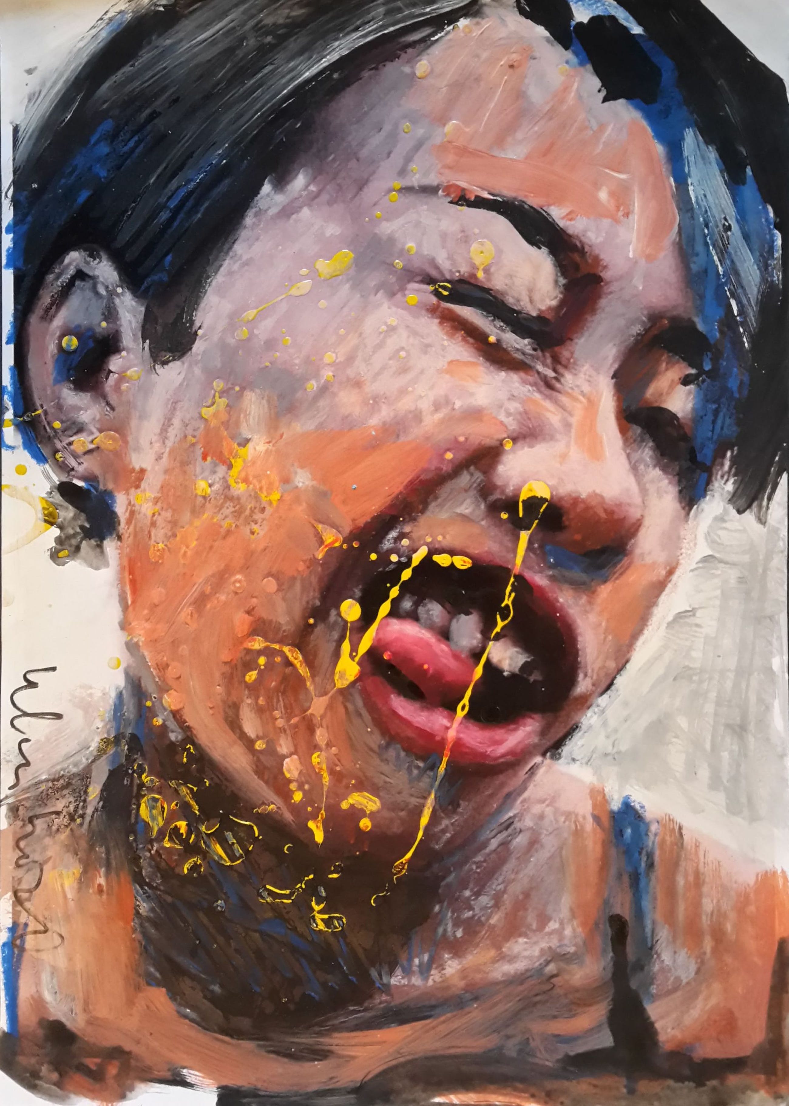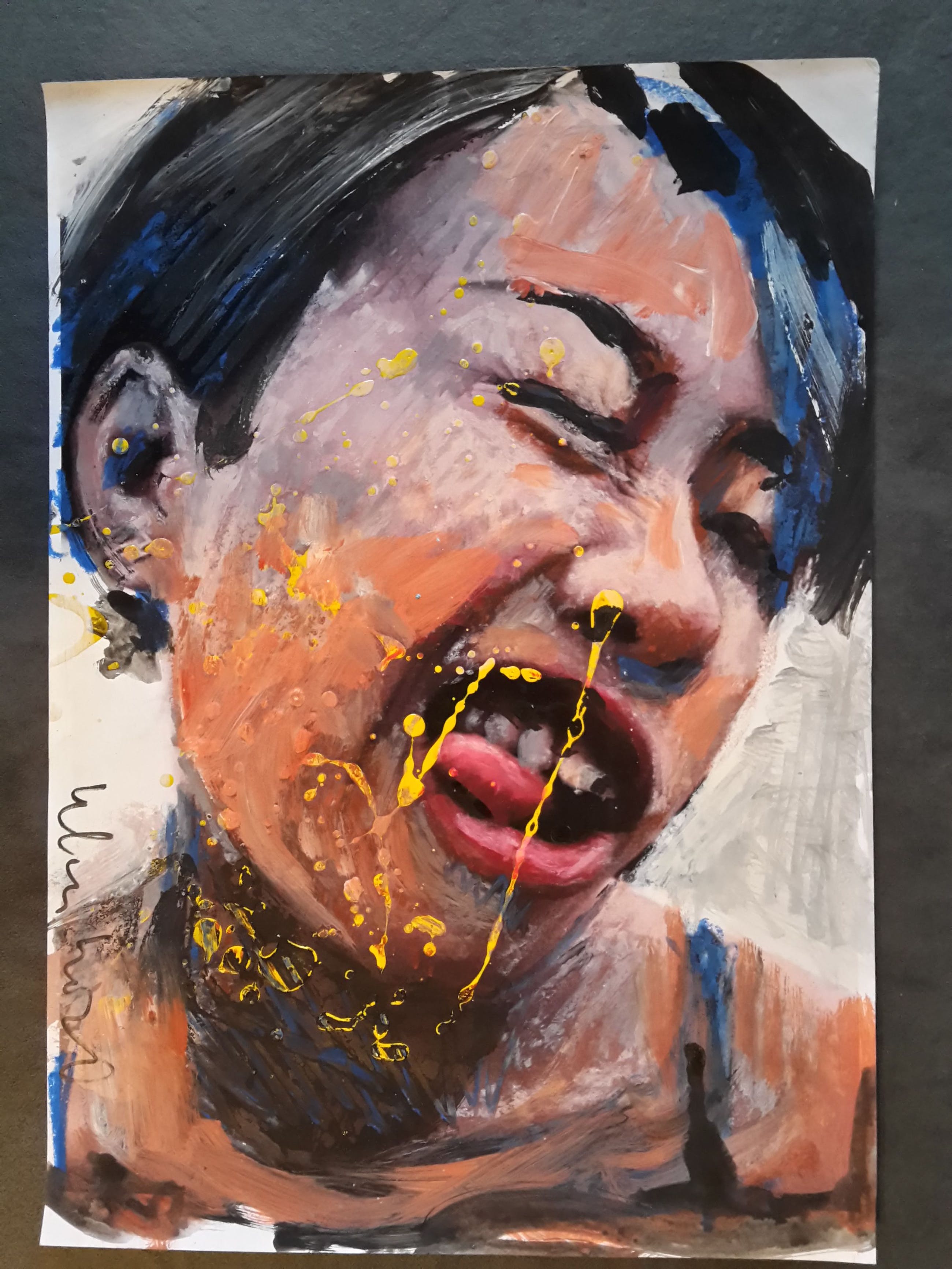 Origineel werk van Peter Klashorst, gemengde techniek op papier. Afmetingen 42x30 cm. Wordt verzonden in stevige koker.