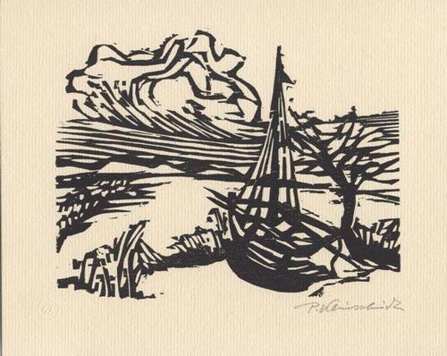 Peter Kleinschmidt - Pommersche Landschaft - Holzschnitt - 1984