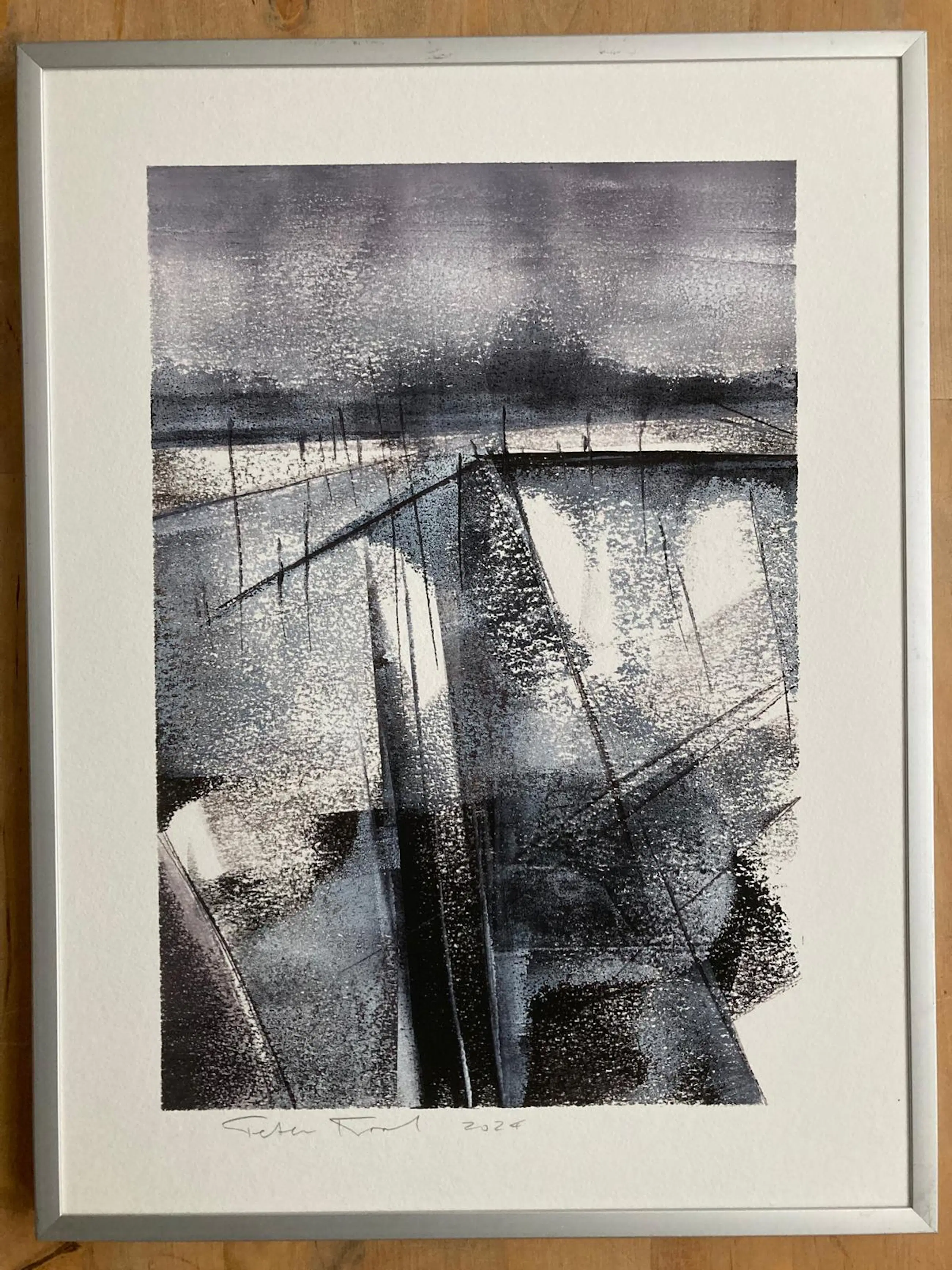 “Untitled”. Abstract Landscape. Blockprinting-Ink on Paper, 40 x 30 cm / 15,74 X 11.81 Inch. Peter-Kool-Art-Studio ©.