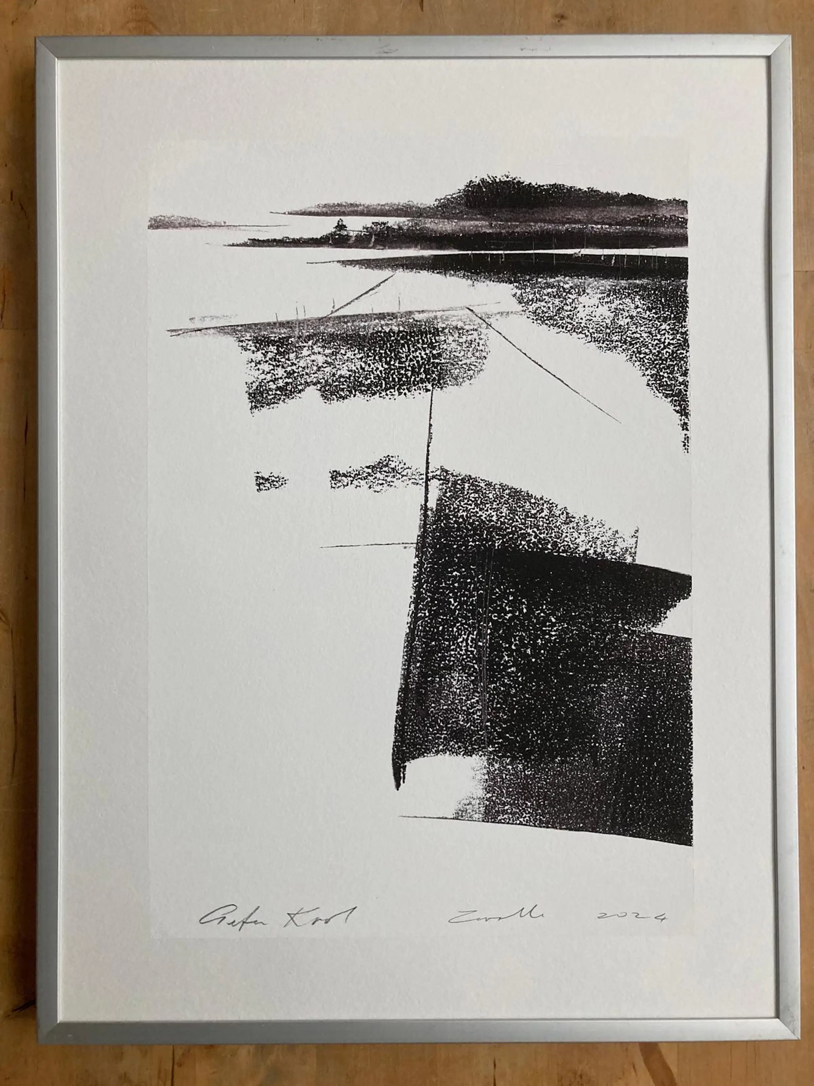 “Untitled”. Abstract Landscape. Blockprinting-Ink on Paper, 40 x 30 cm / 15,74 X 11.81 Inch. Peter-Kool-Art-Studio ©.