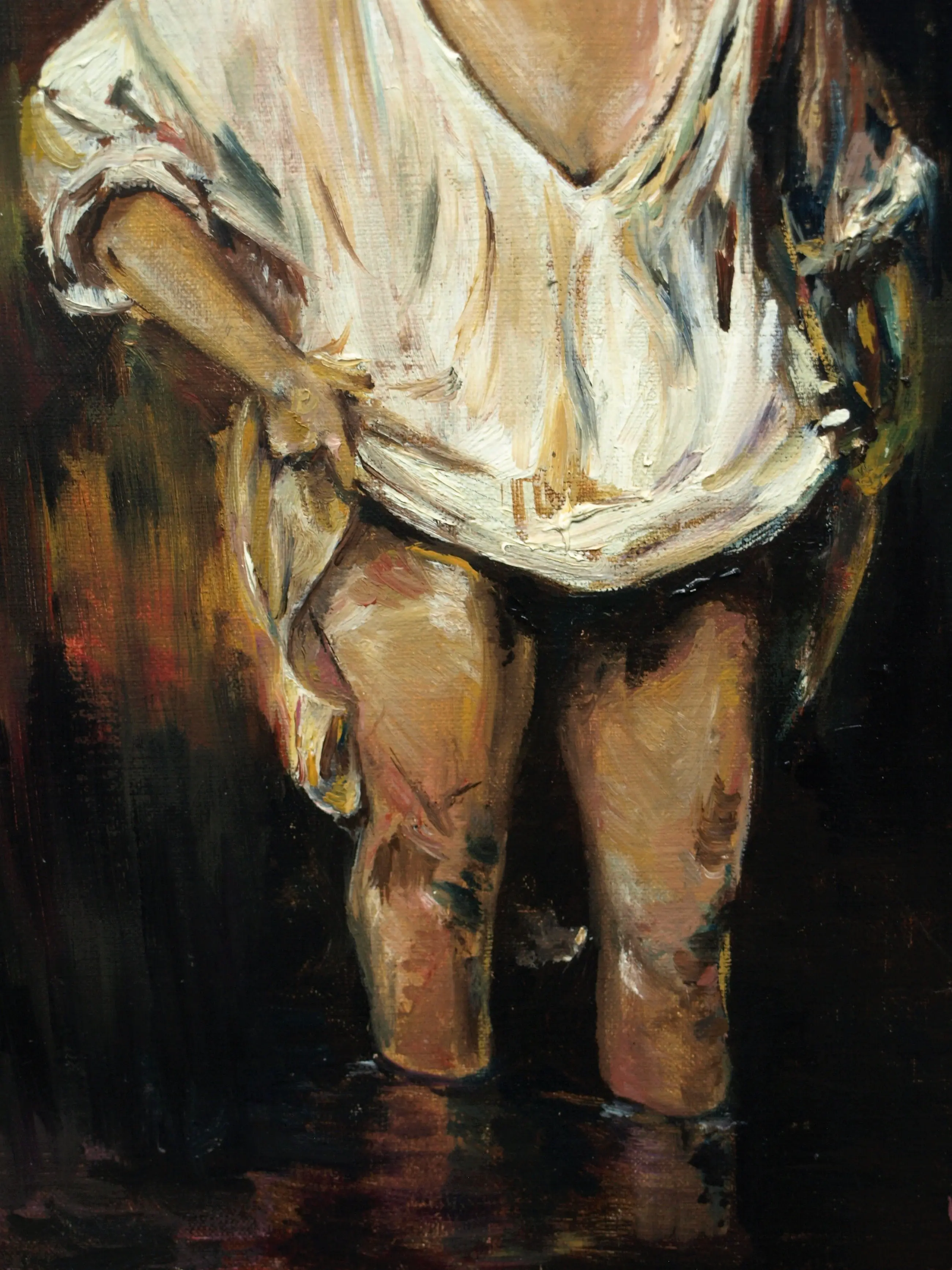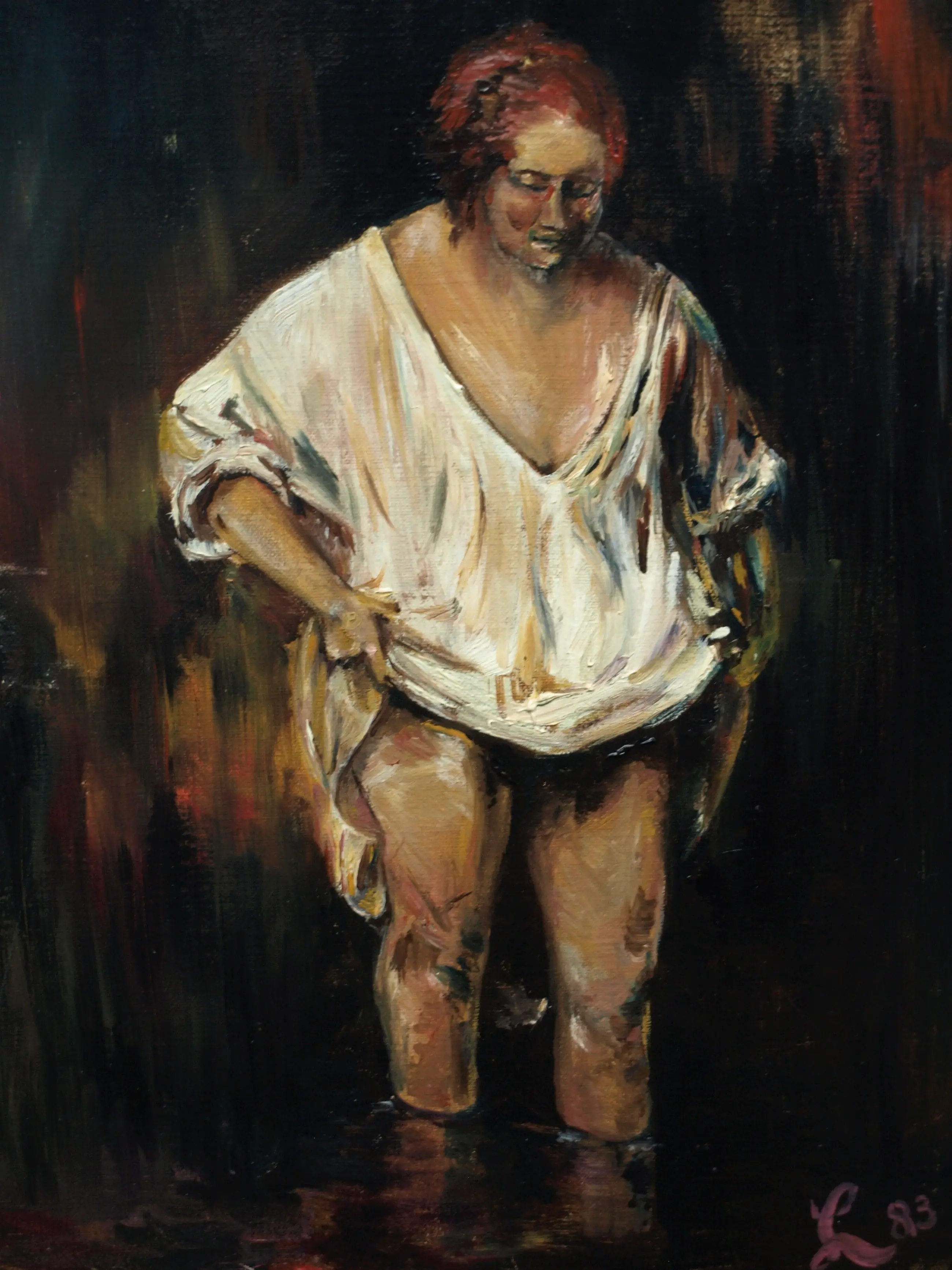 Een schilderij uit 1983 van de Nederlandse kunstenaar Peter Leyenaar (1923-2023). Geschilderd naar het werk van Rembrandt “Badende vrouw” uit 1654 (zie de laatste foto). -Olieverf op doek, opgespannen op een houten spieraam. -Gesigneerd en gedateerd rechtsonder. -Afmetingen: Spieraam, 40 x 30 x 2 cm. Conditie: In zeer goede staat. Zie ook de foto’s voor een eigen indruk.