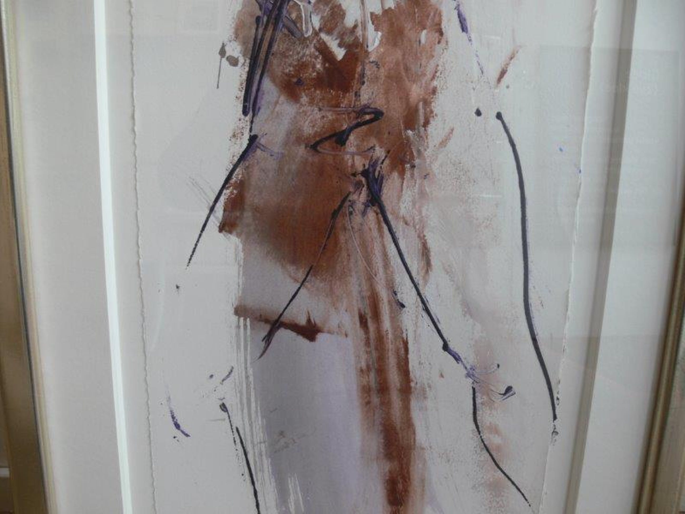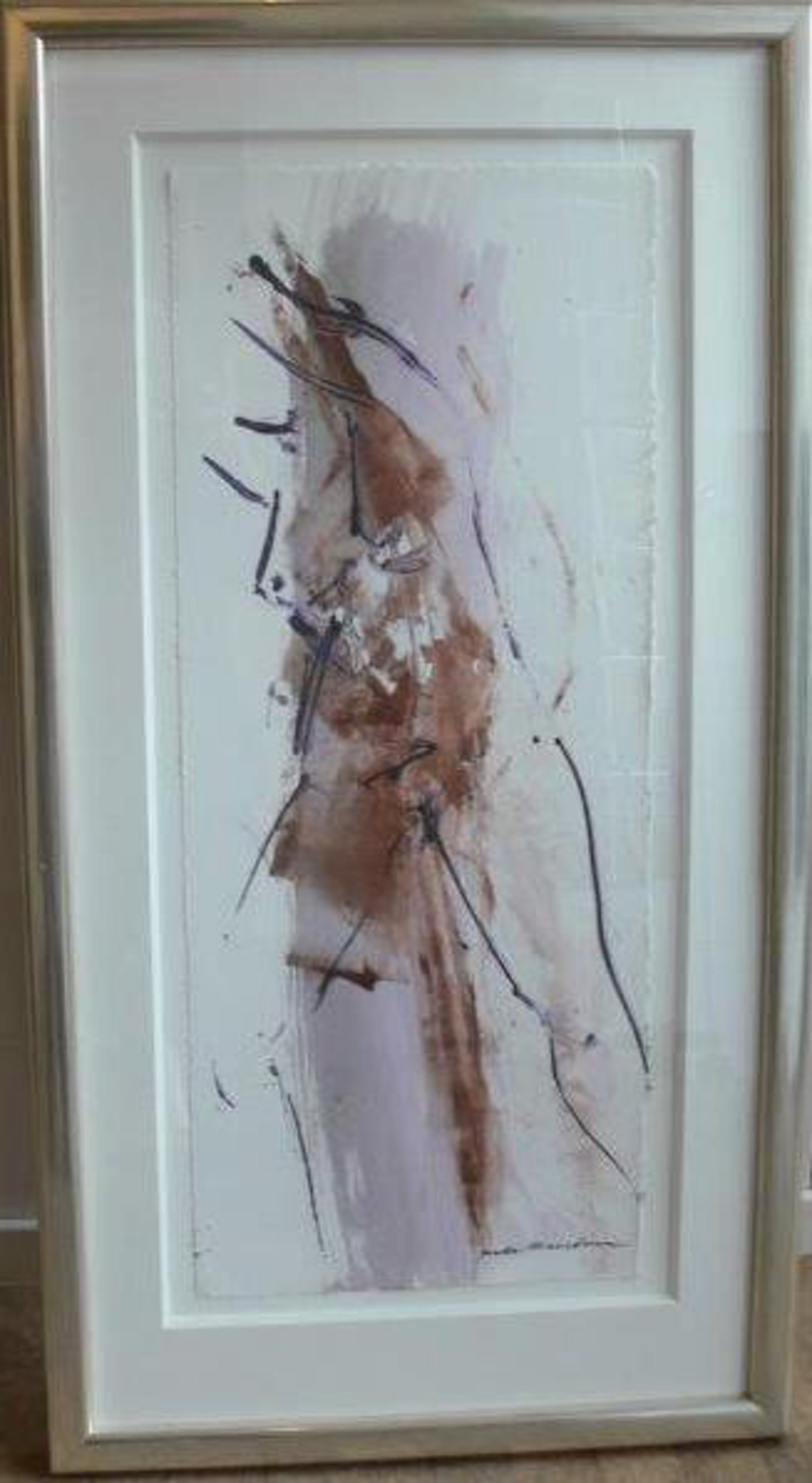 Vlot geschilderd werk van Peter Maasdam. Zwevend ingelijst in een verdiept passe-partout voorzien van glas en een warm-zilveren lijst.