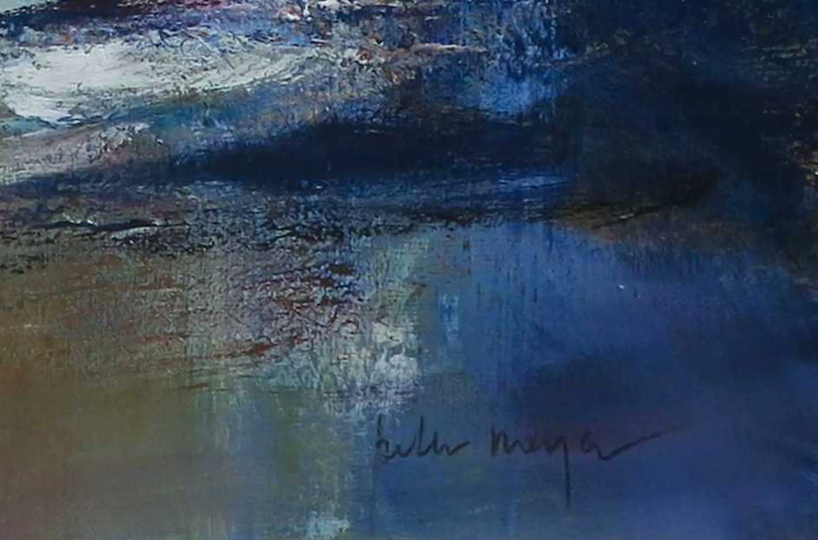 | Een onopvallend blauw streepje rechtsboven op het doek. | |