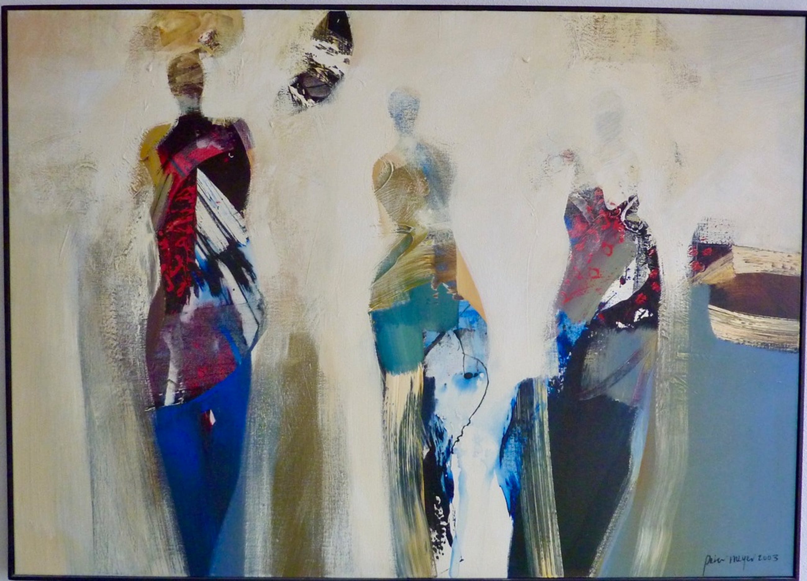 Het werk heeft een melancholieke sfeer: enerzijds de levendige vormen en kleuren, anderzijds de herinnering aan de in draperiëen gehulde vrouwen die wellicht vertrokken zijn. Een werk dat uitnodigt tot beschouwen.