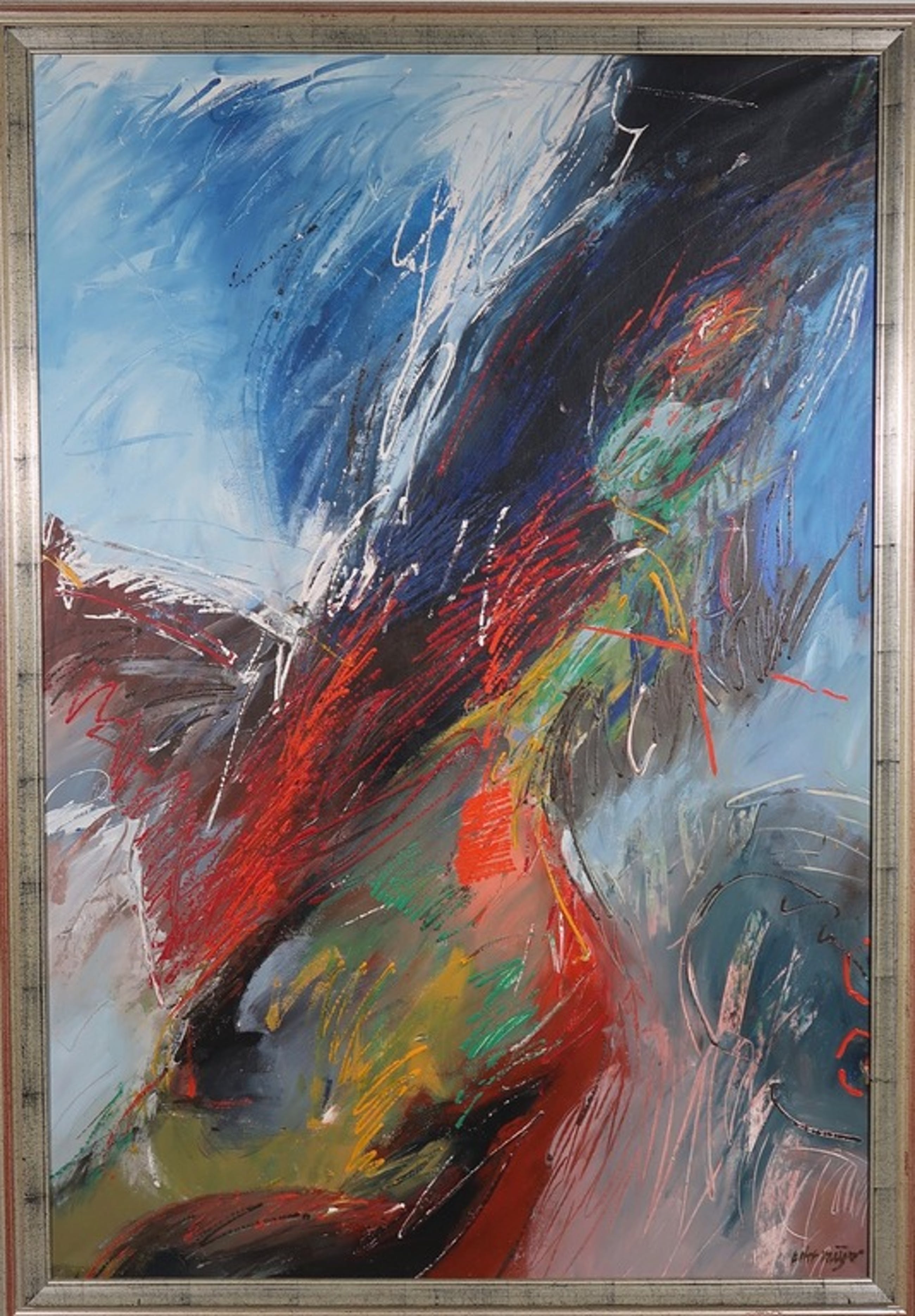 Conditie kunstwerk: In zeer goede staat, hangt alleen een beetje slap op het spieraam. Zou weer strak gespannen moeten worden.
