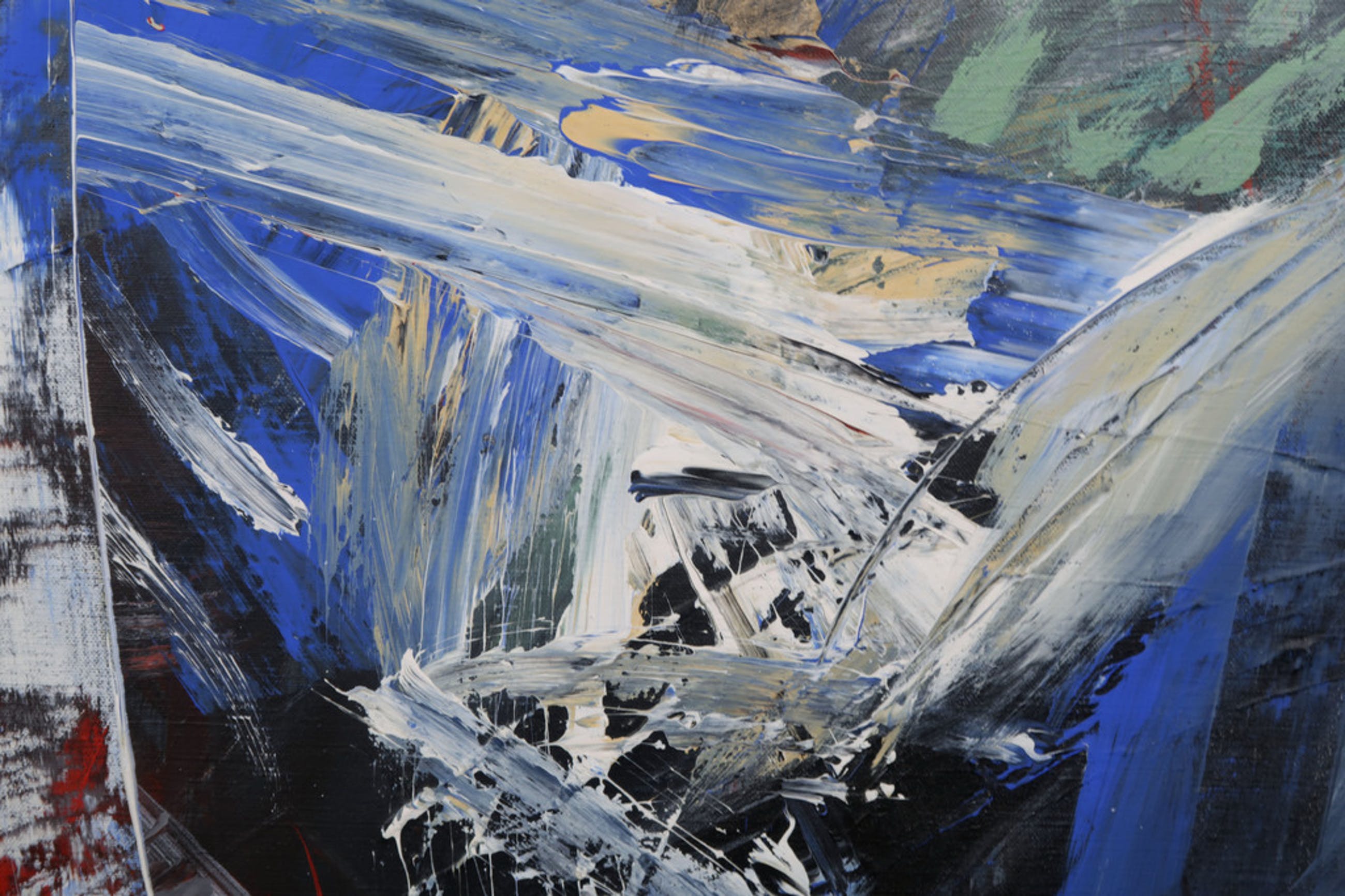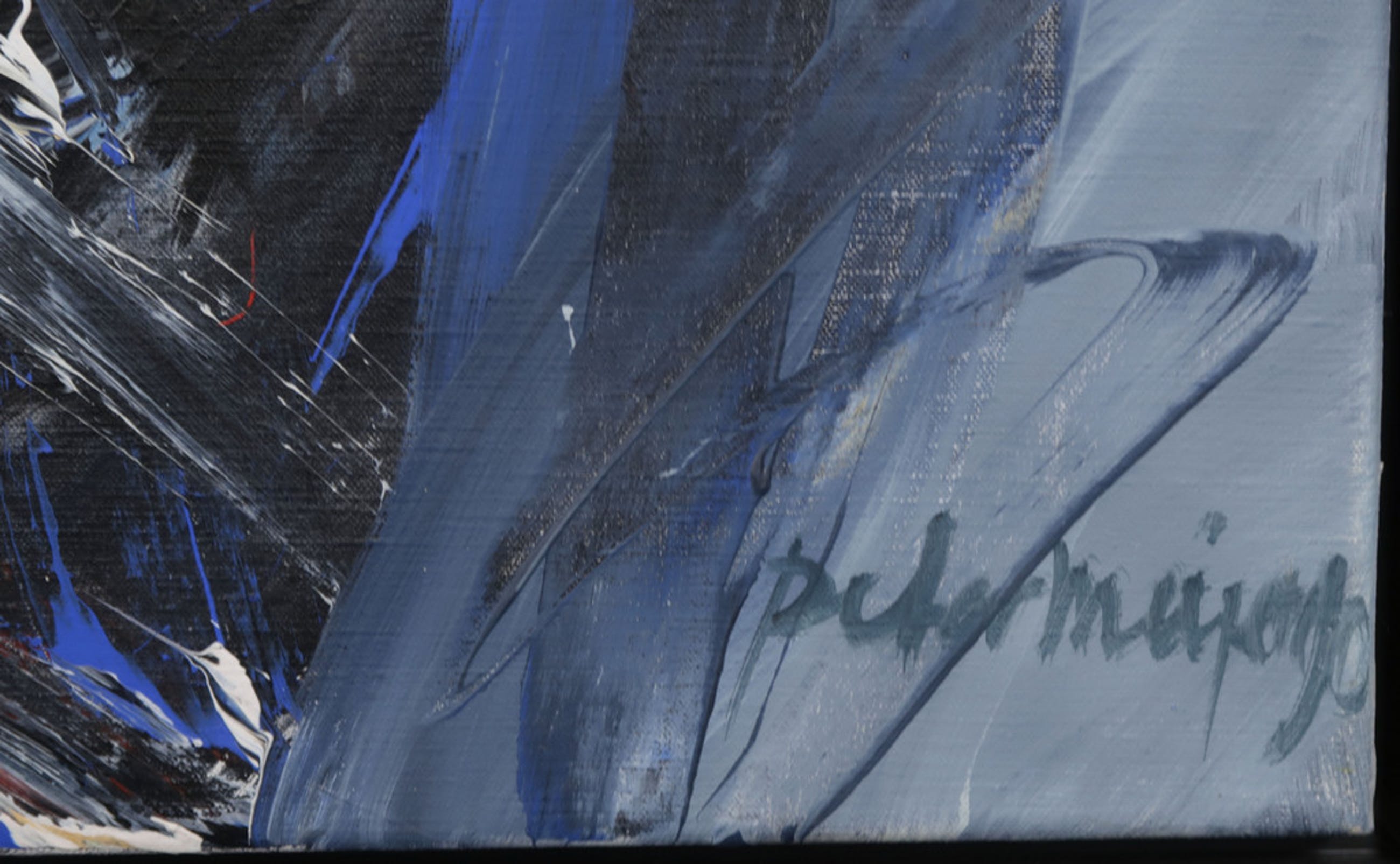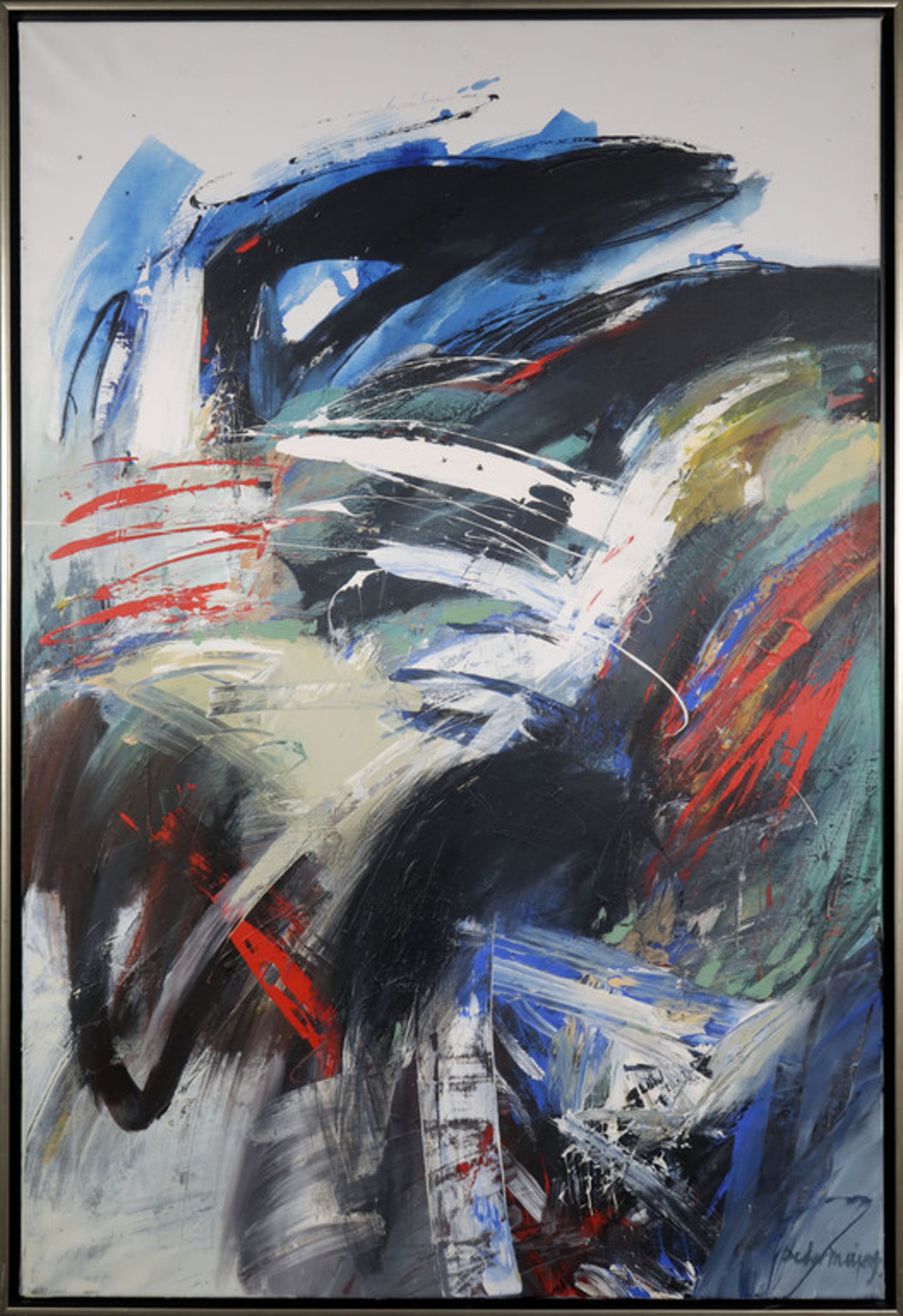 Conditie kunstwerk: In zeer goede staat. Wat lichte golving in het doek linksboven en linksonder. En wat lichte (gebruiks)schade langs de randen van het doek.