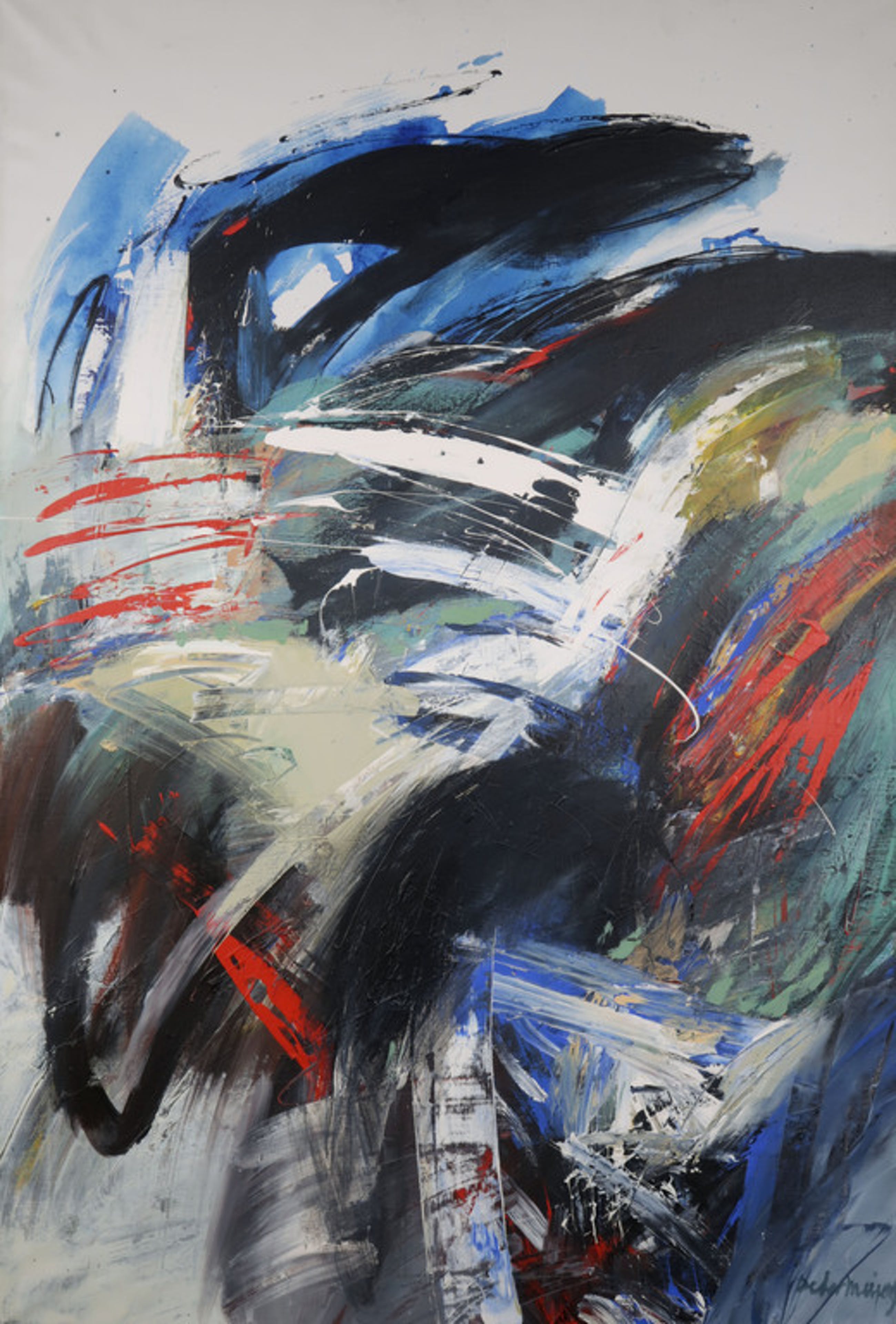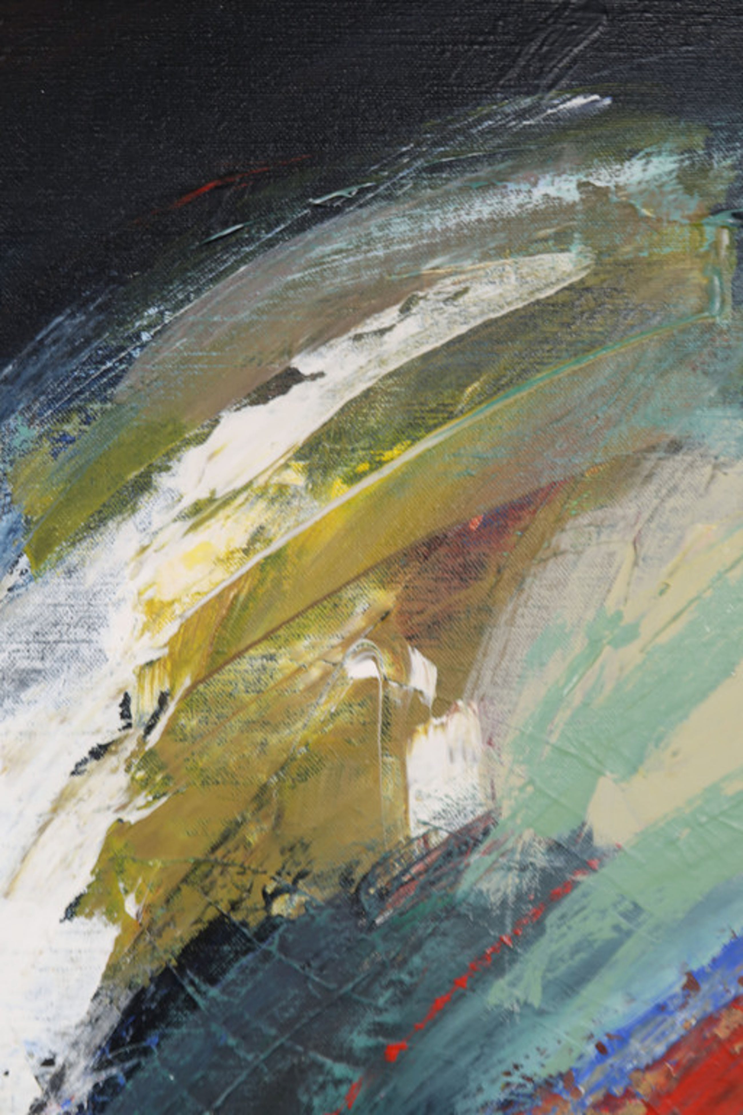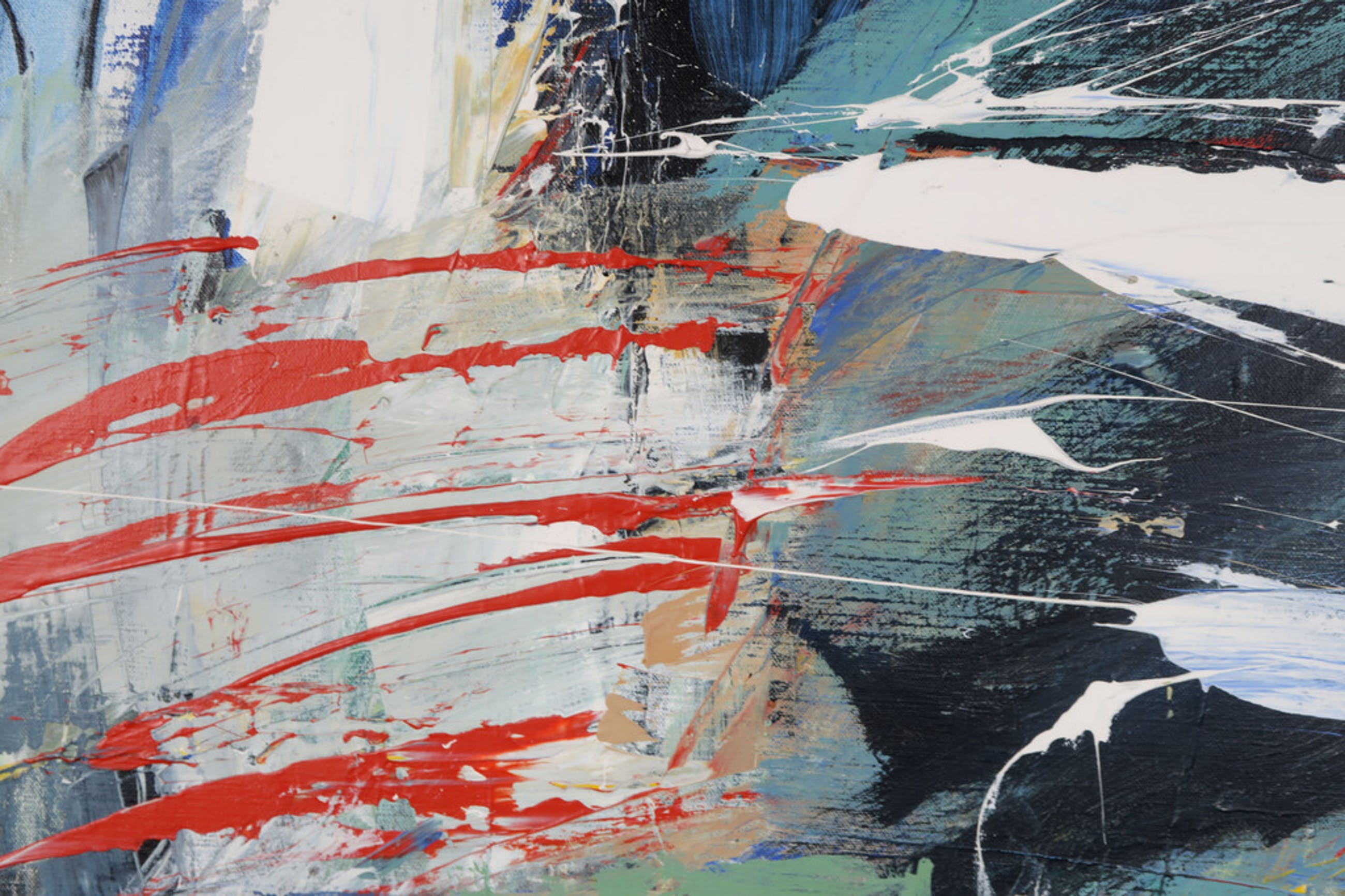 Conditie kunstwerk: In zeer goede staat. Wat lichte golving in het doek linksboven en linksonder. En wat lichte (gebruiks)schade langs de randen van het doek.