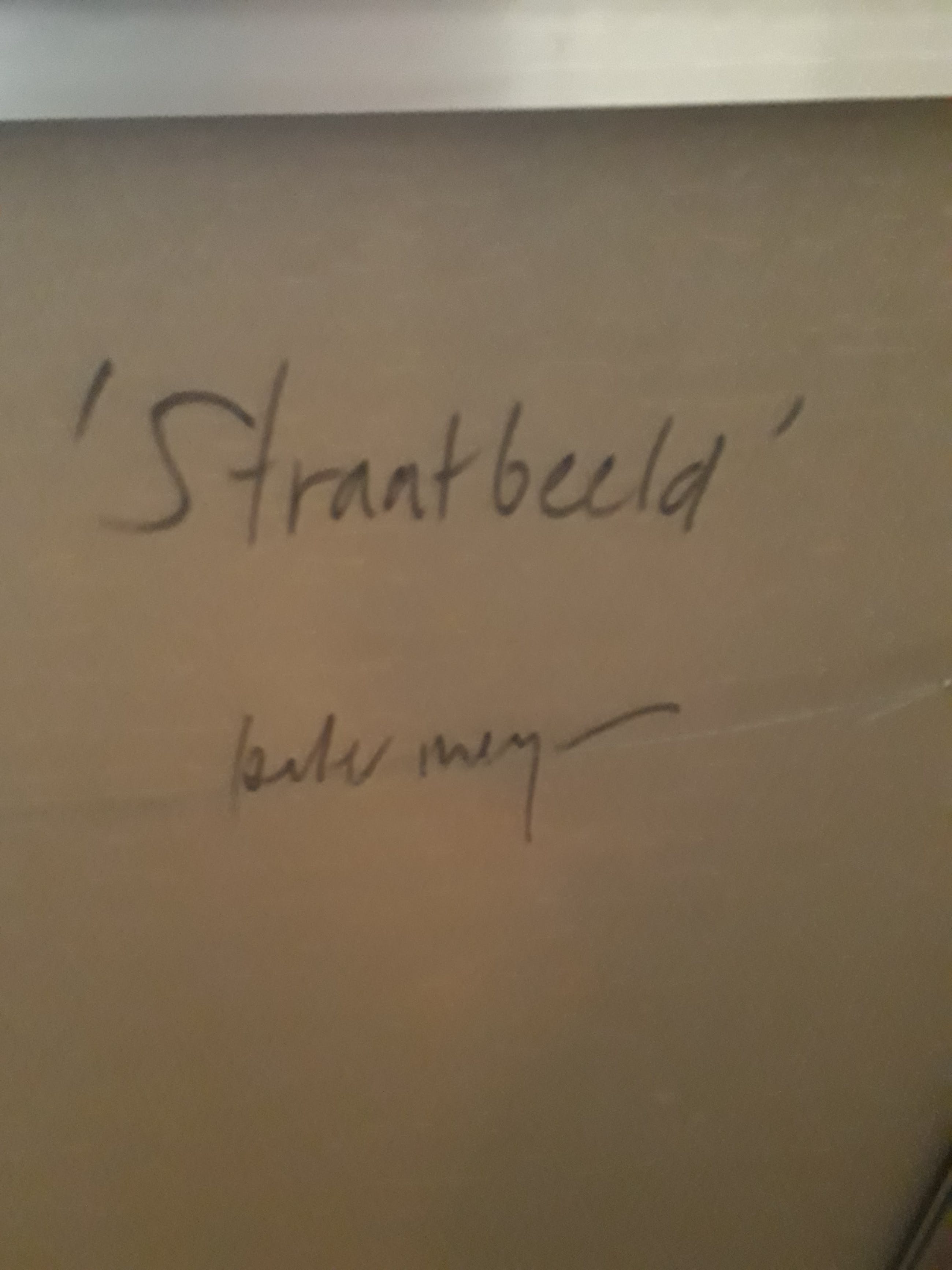 Zeer fraai schilderij acryl op linnen van peter meijer,uit 2007.....getiteld straatbeeld. Oorspronkelijke waarde 2600 euro. Het doek zit gespannen op een spieraam met daarom heen een baklijst. De baklijst heeft een paar kleine beschadigingen,aan het werk mankeert niets.
