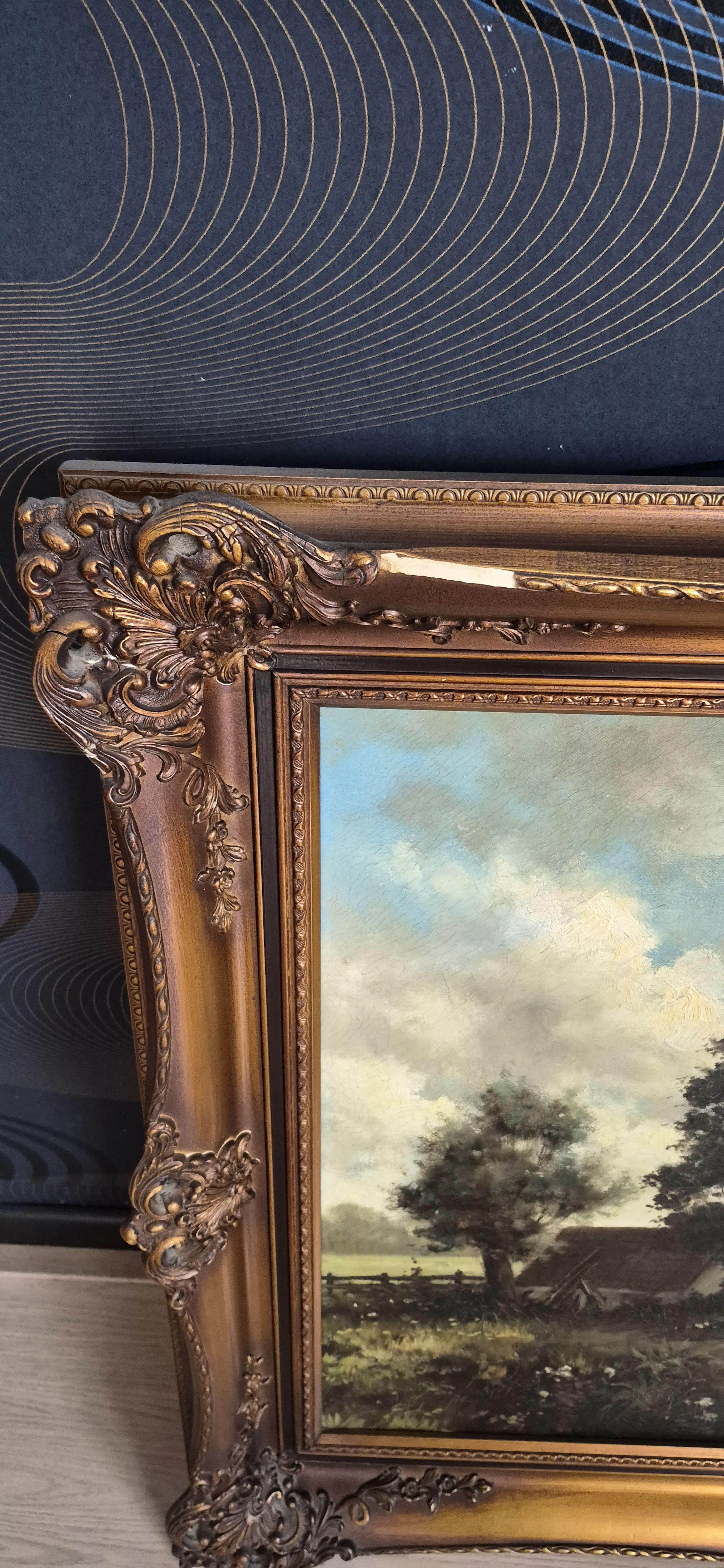 Werk is nog in goede staat alleen is er een stukje van de lijst afgebroken. Zie foto