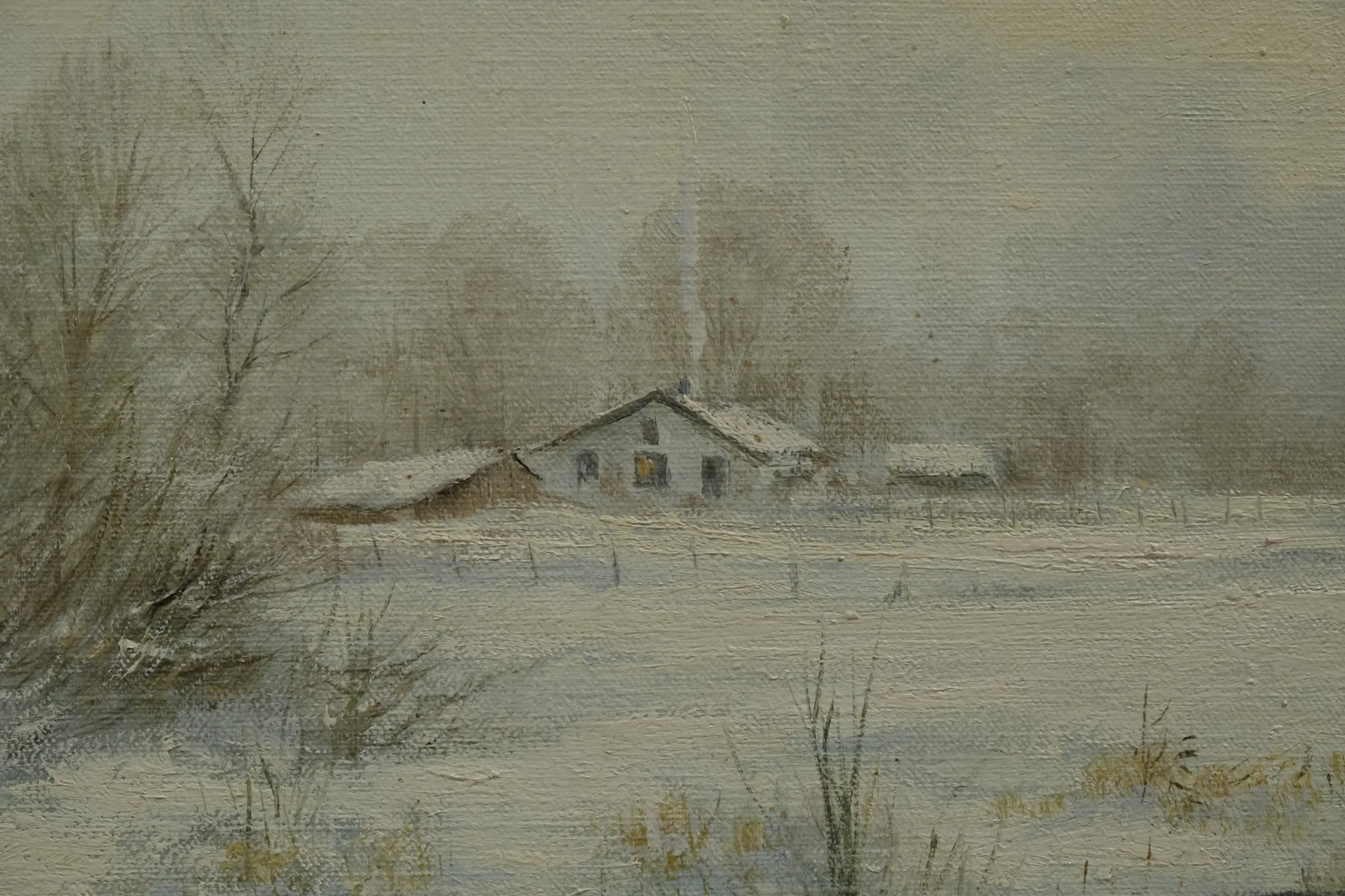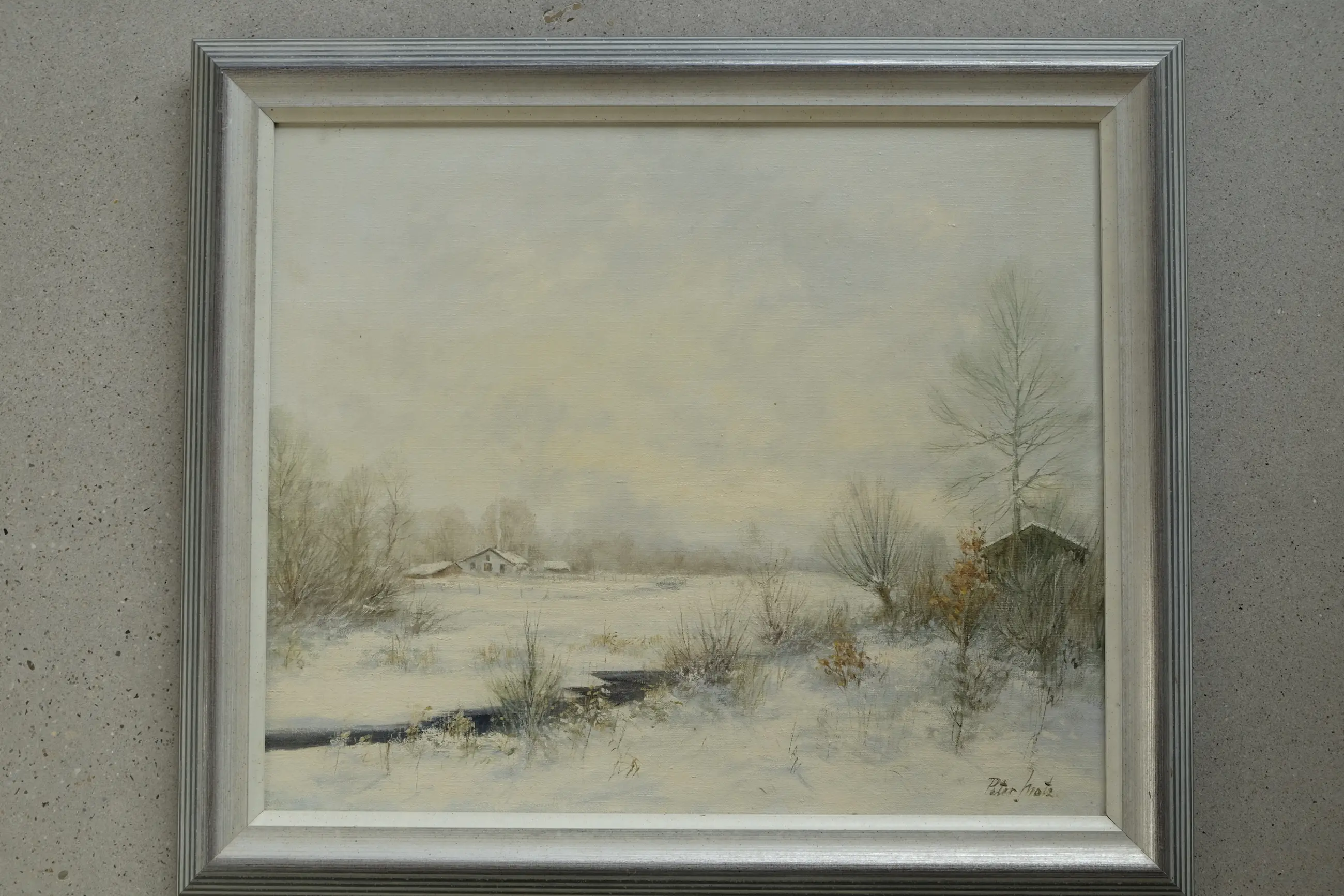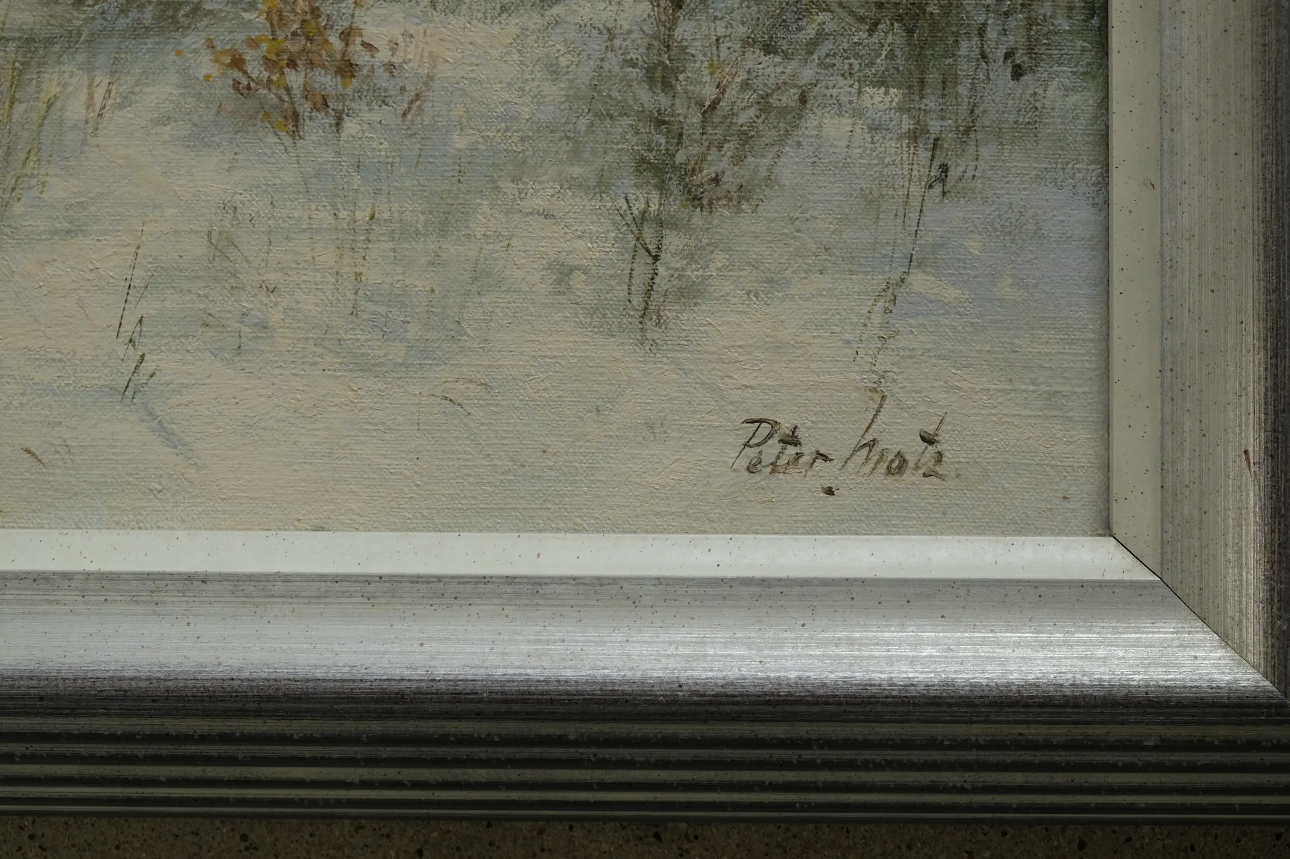 Prachtig winterlandschap van de bekende kunstenaar/landschapsschilder Peter Motz. Schilderij en lijst in onberispelijke staat.