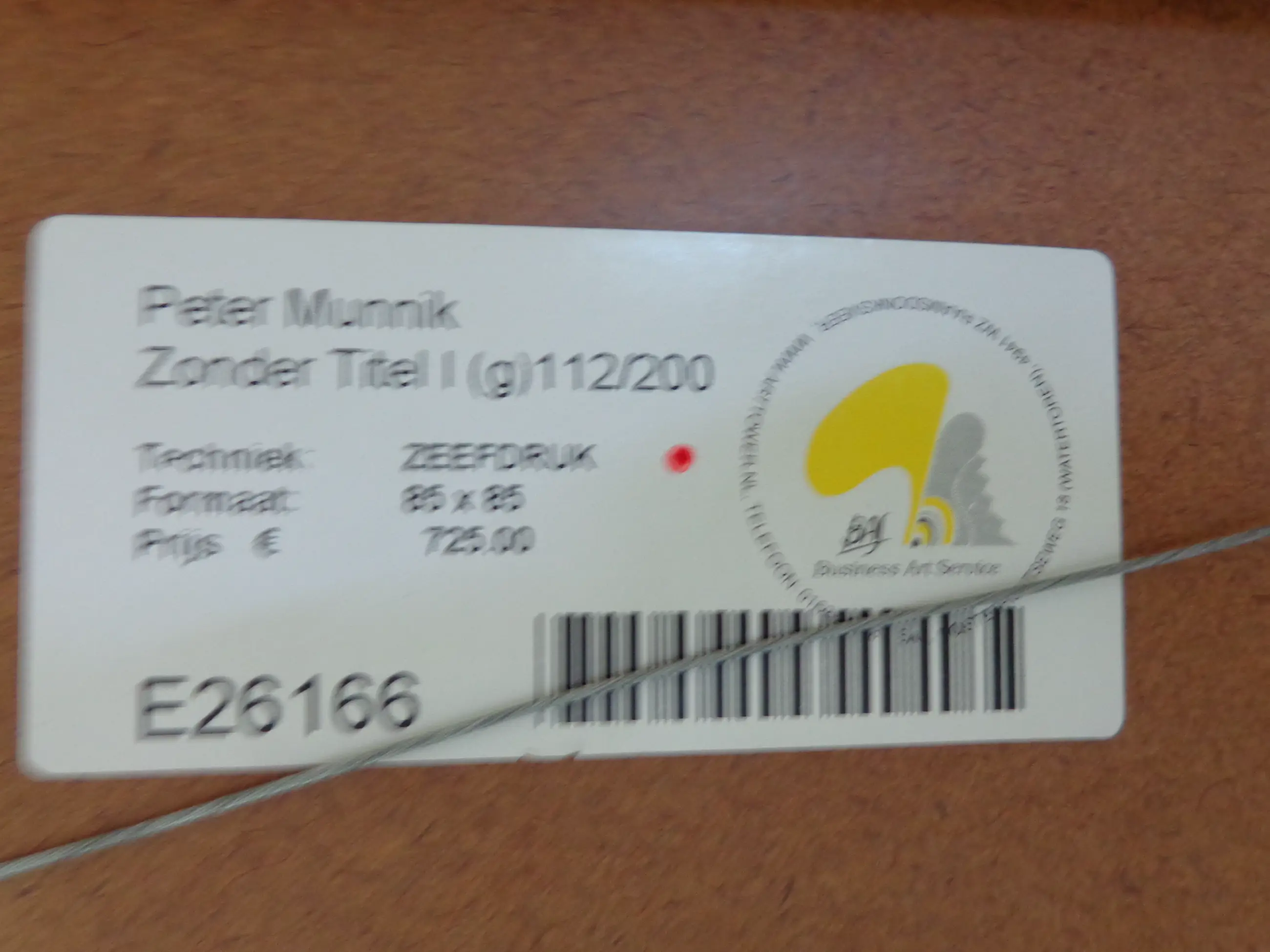 Kunstwerk enkel ophalen na afspraak: Kunsthuis.be (Brasschaat, BE).