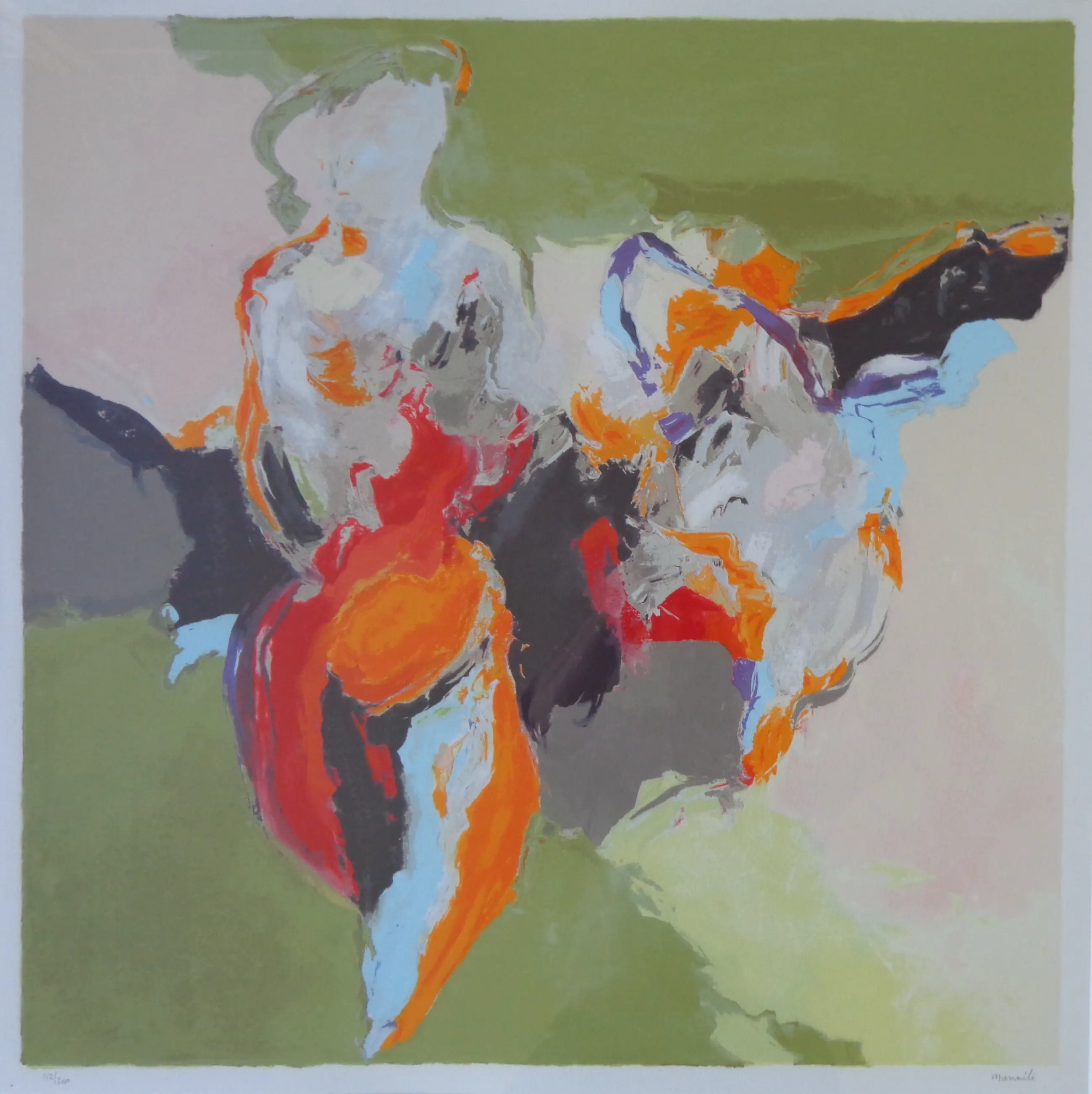 Peter Munnik (°1951). "Zonder Titel". Kleurzeefdruk op papier. Gesigneerd met potlood. Ex.nr. 112/200. Verso etiket: "BAS. Business Art Services", prijs: 725 euro. Zeer goede staat.