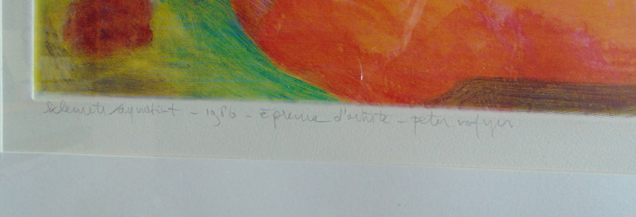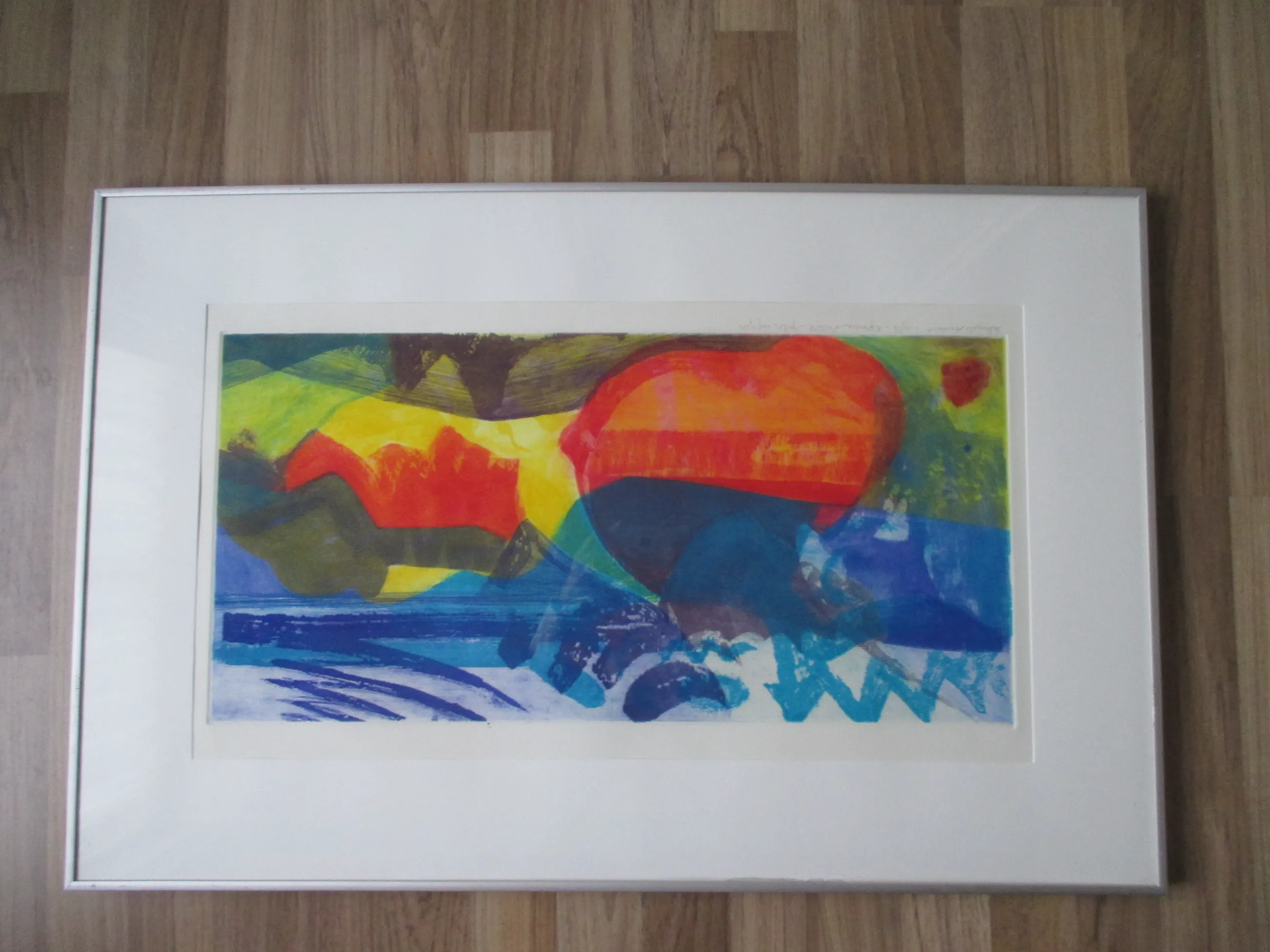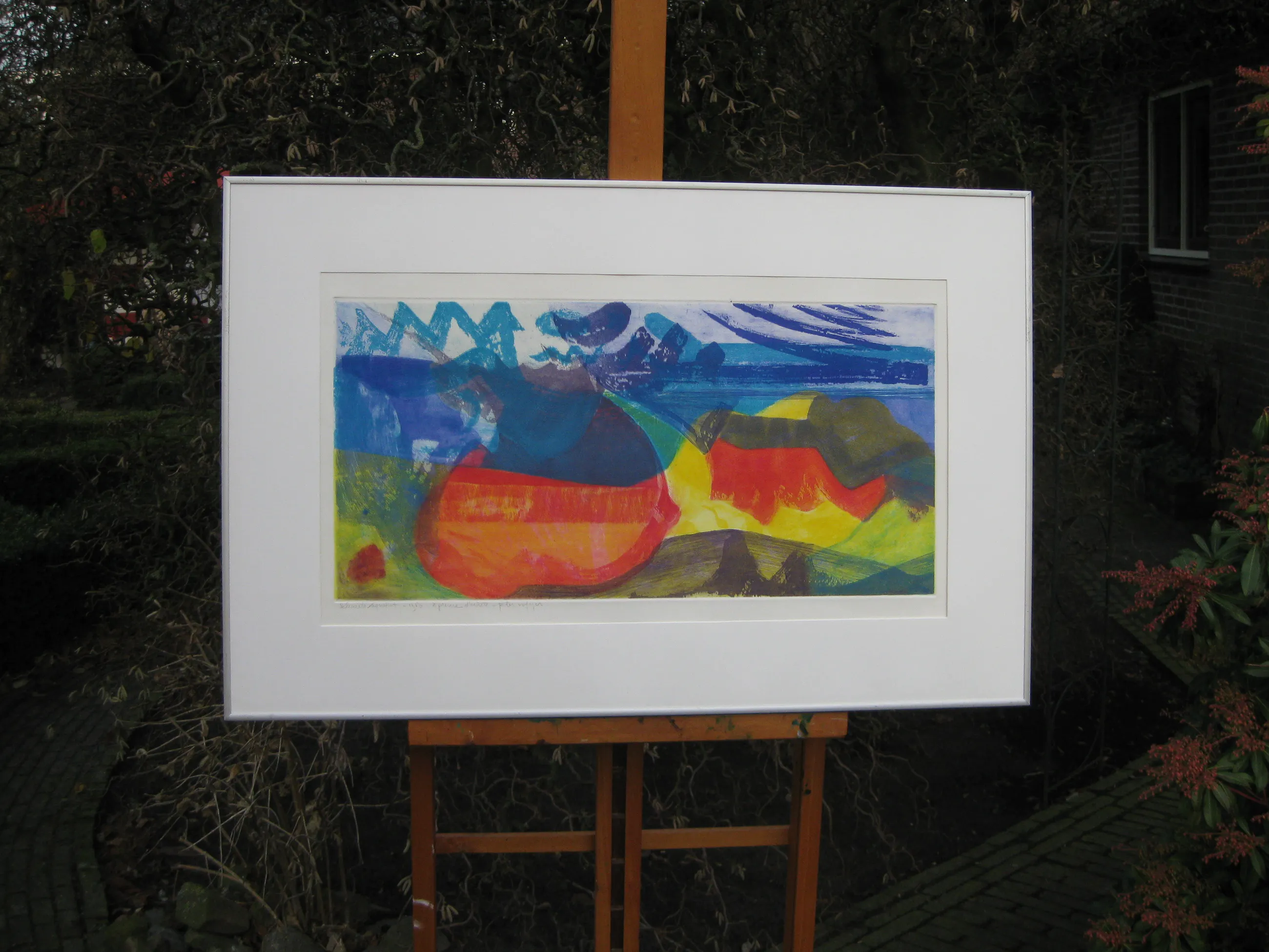Dit werk is linksonder gesigneerd. Het werk is ingelijst met passe-partout en zit achter glas.
