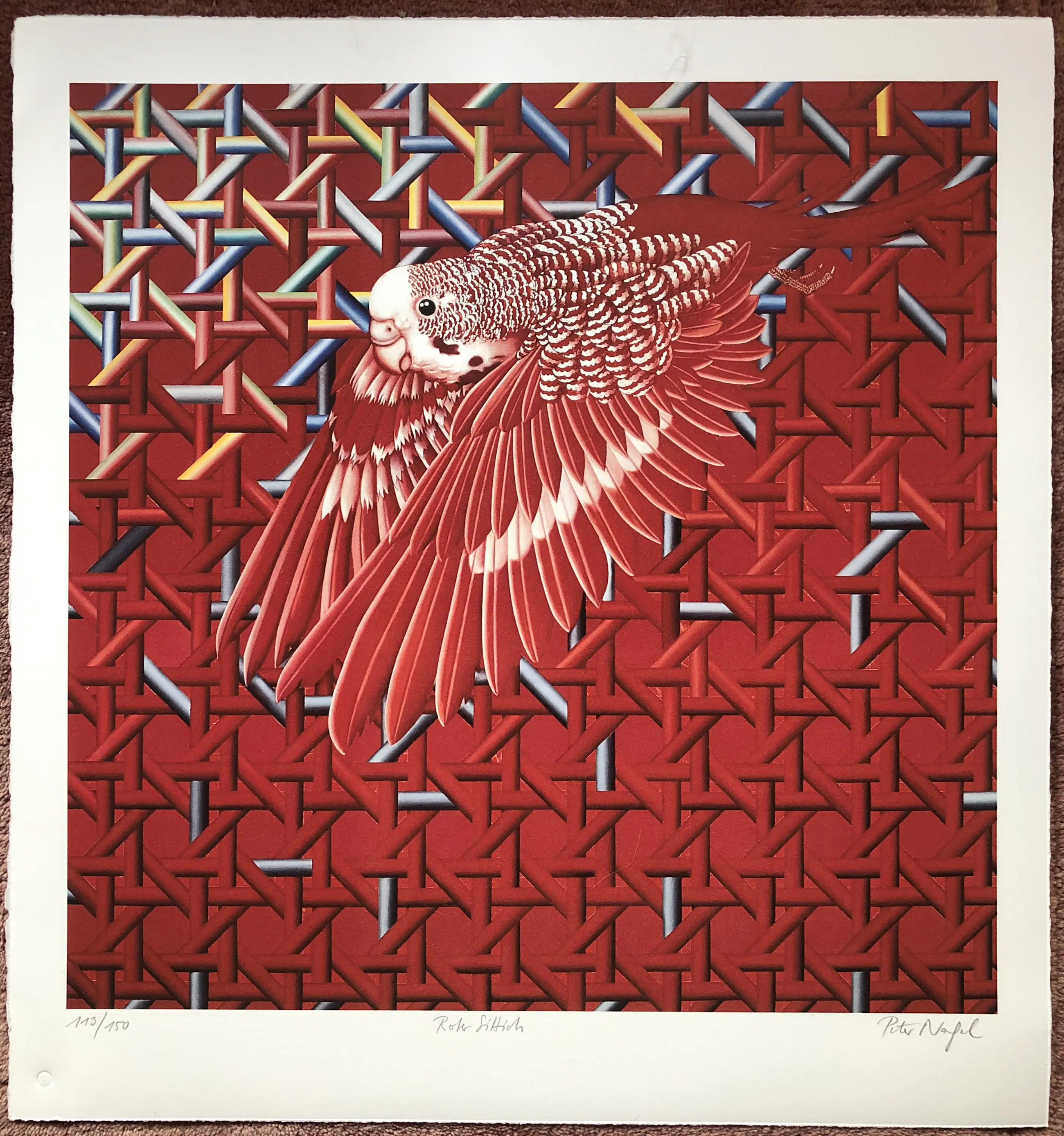 De aangeboden grafiek is genummerd: 113/150, met opschrift: Rode Parkiet en met de hand gesigneerd: Peter Nagel