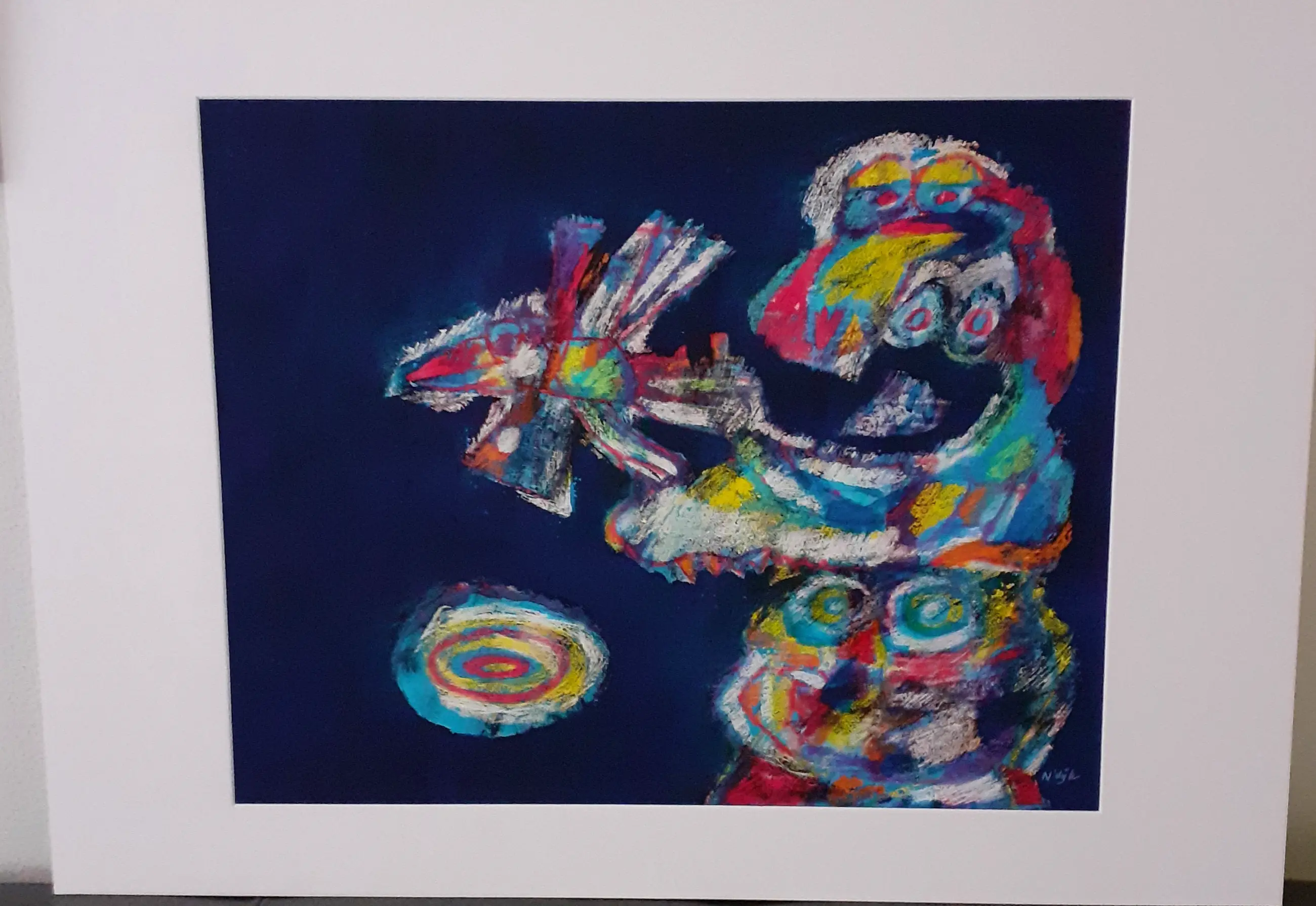 Prachtig, kleurrijk origineel werk van Peter Nieuwendijk met passepartout Afm.: 50x40