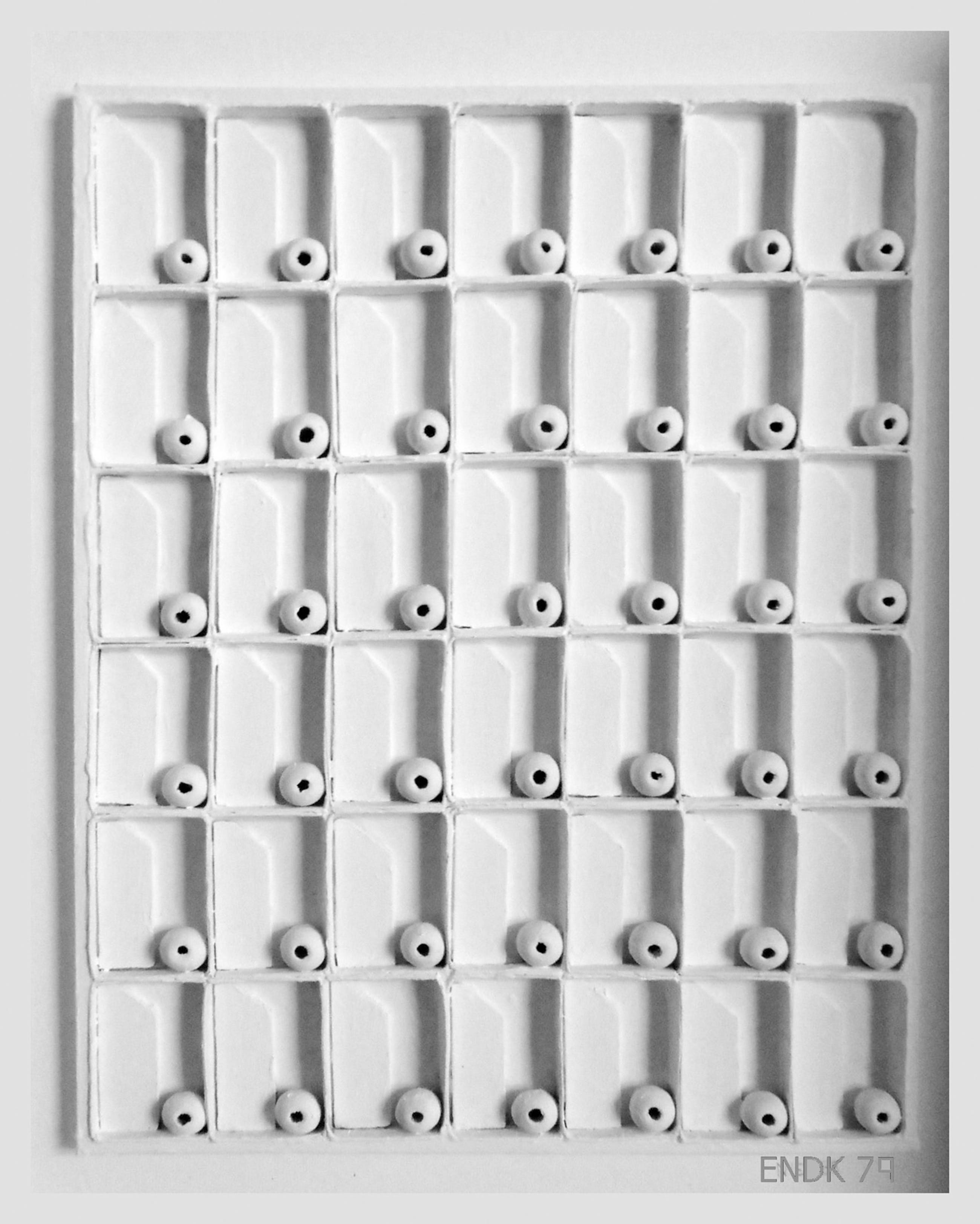 post-zero werk van NIEUWENDIJK wit op wit hout, paneel, schaduw maakt de contacten. lichtinval geeft ieder uur een ander beeld