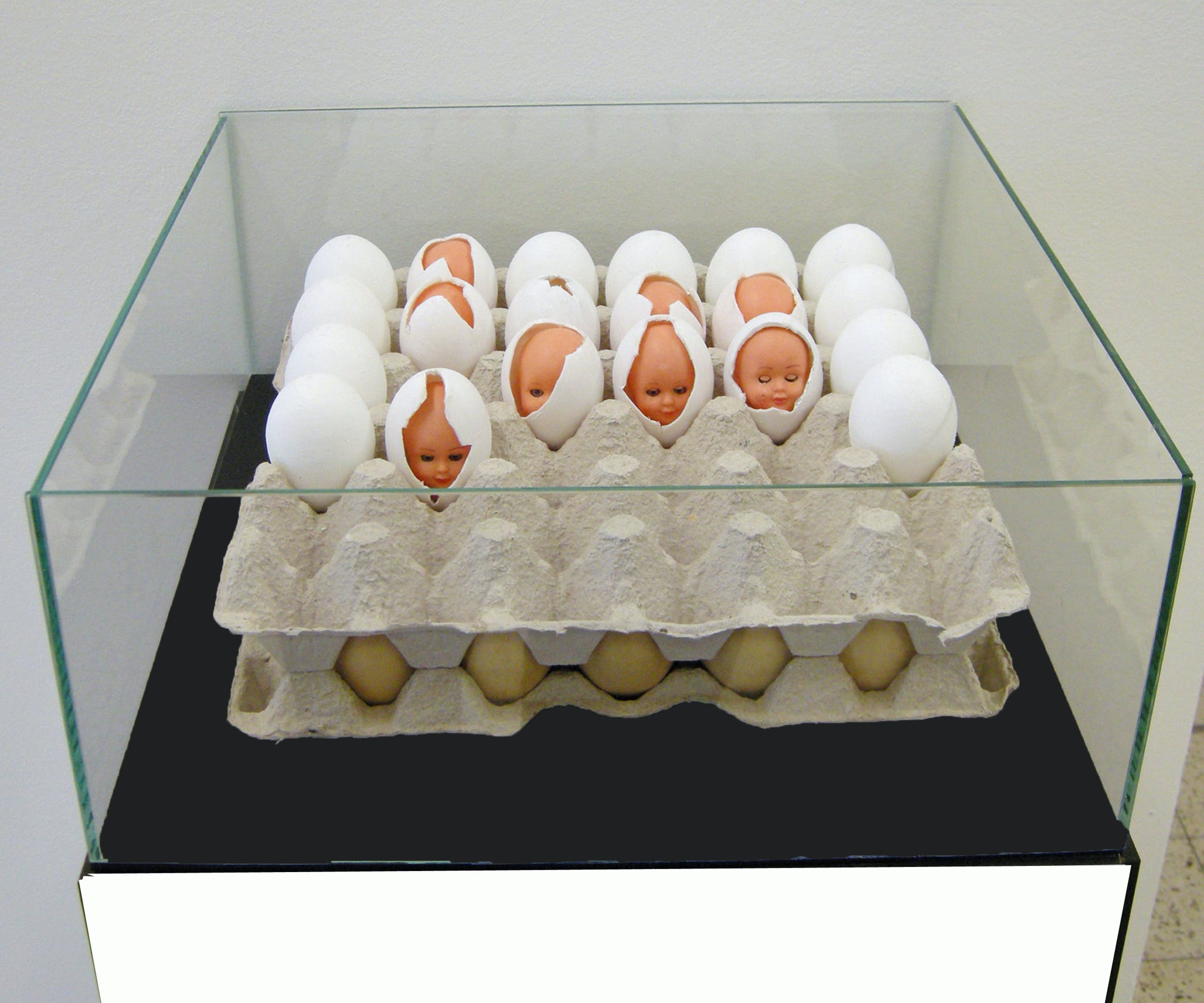 Uit se serie "Kwetsbaarheden". Object van hout, kunststof, plexiglas, verf