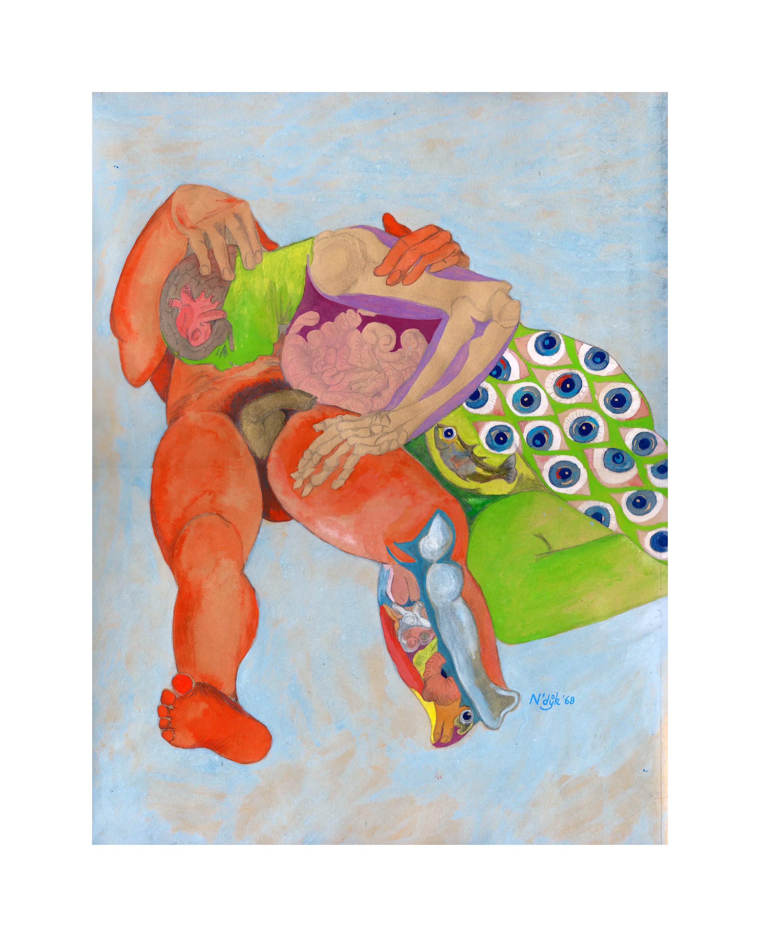 Een werk (bijna 60 jaar oud) aquarel (tempera) op papier