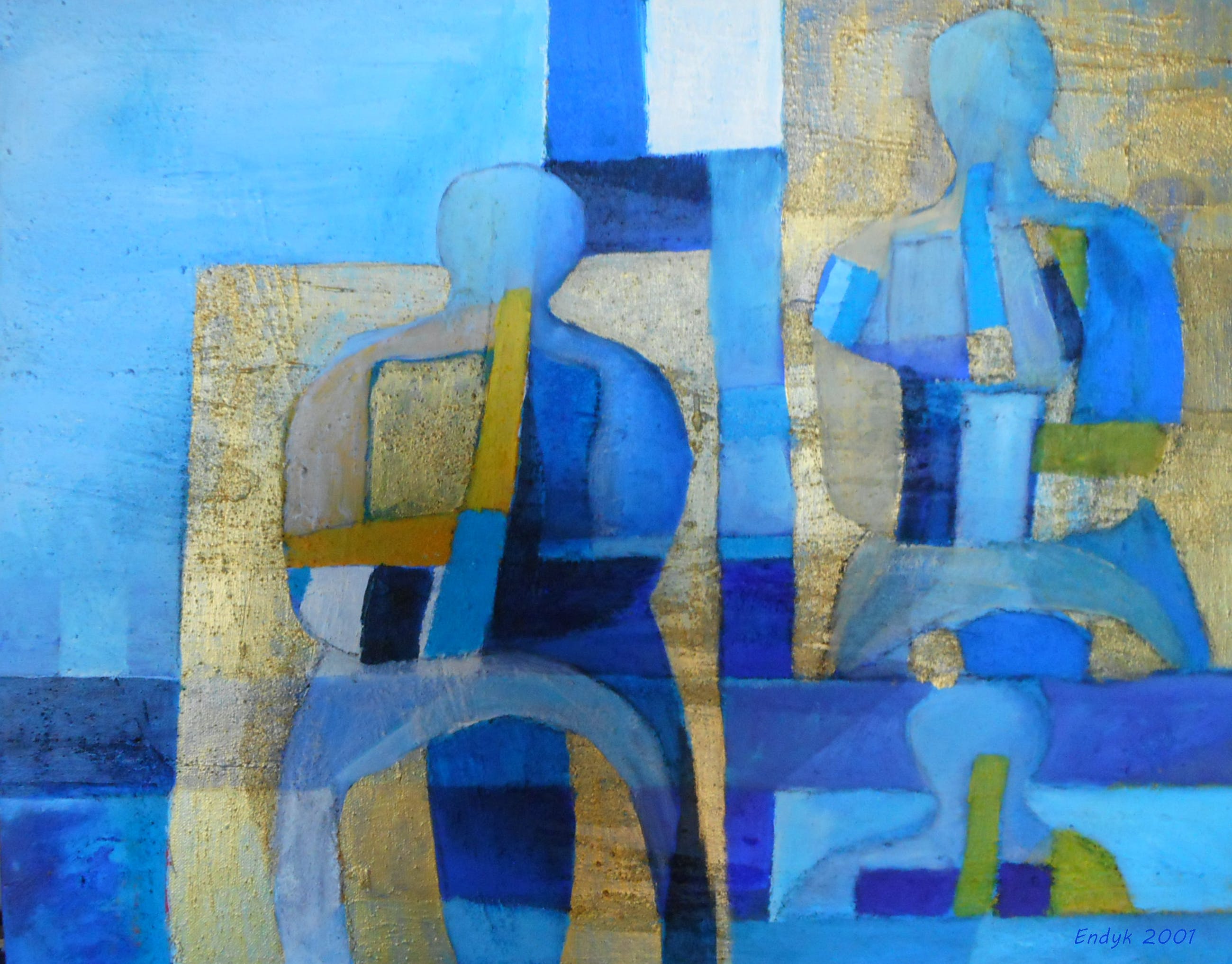 schilderij met o.a. acrylverf en goudverf uit 2001, uit de serie "Wachten"