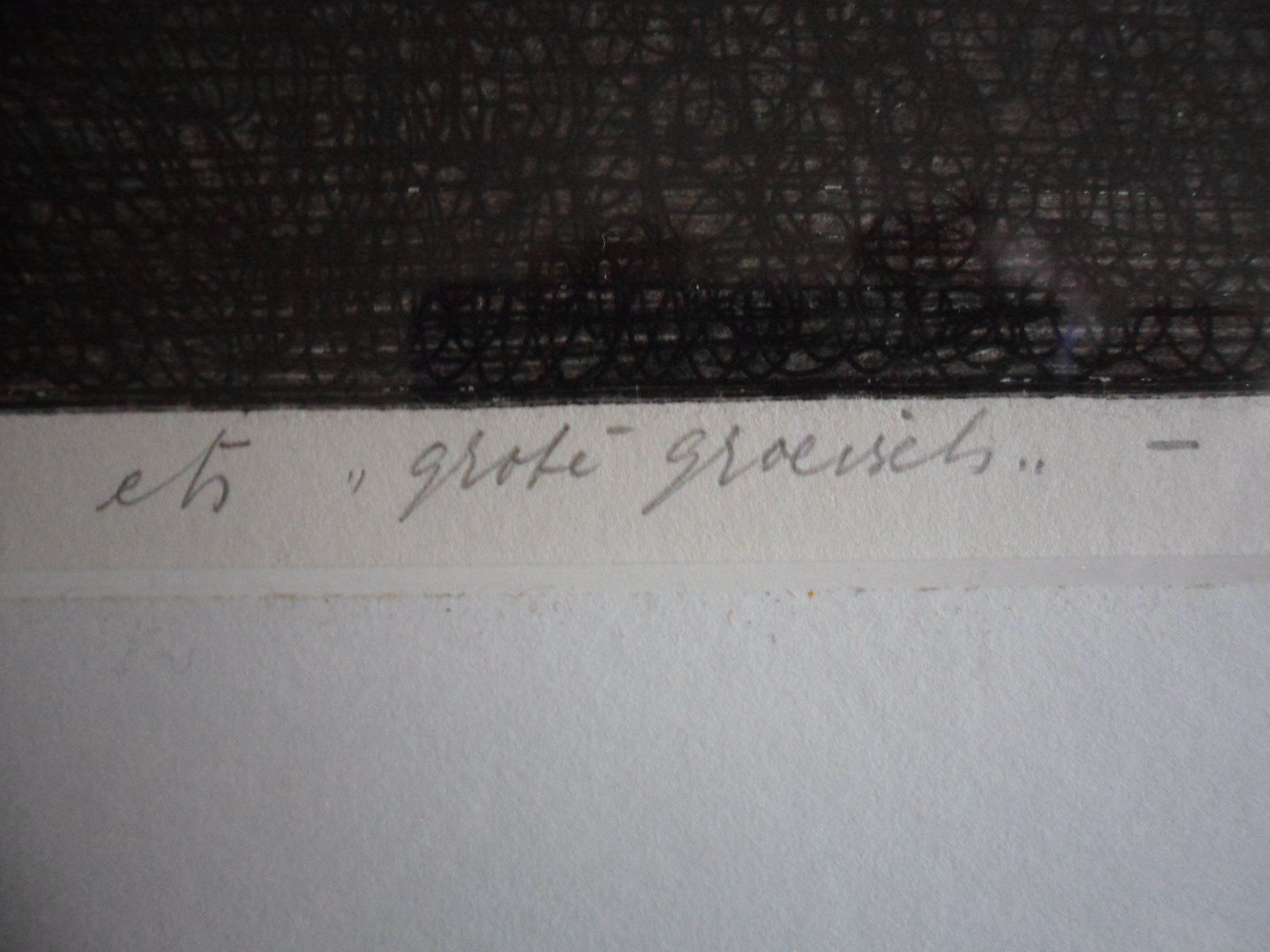 Het werk is links onderin , met potlood, gesigneerd door de kunstenaar.