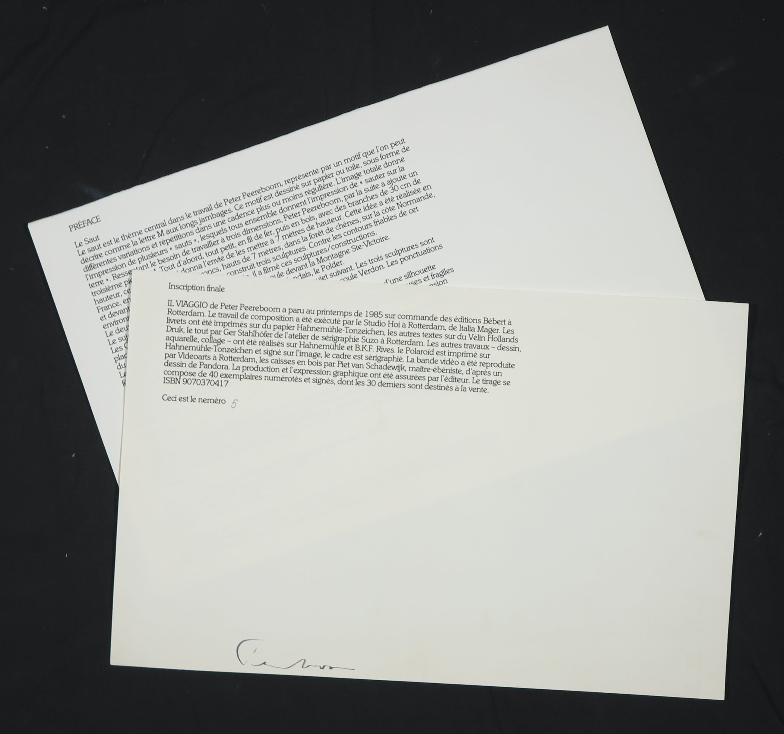 Cassette met drie werken op papier (tekening, inkt, foto/ collage), en bijhorende bladen met teksten uit de gelijknamige opera. Dit exemplaar is no. 5 uit de editie. De videoband die oorspronkelijk bij dit werk hoort, ontbreekt.