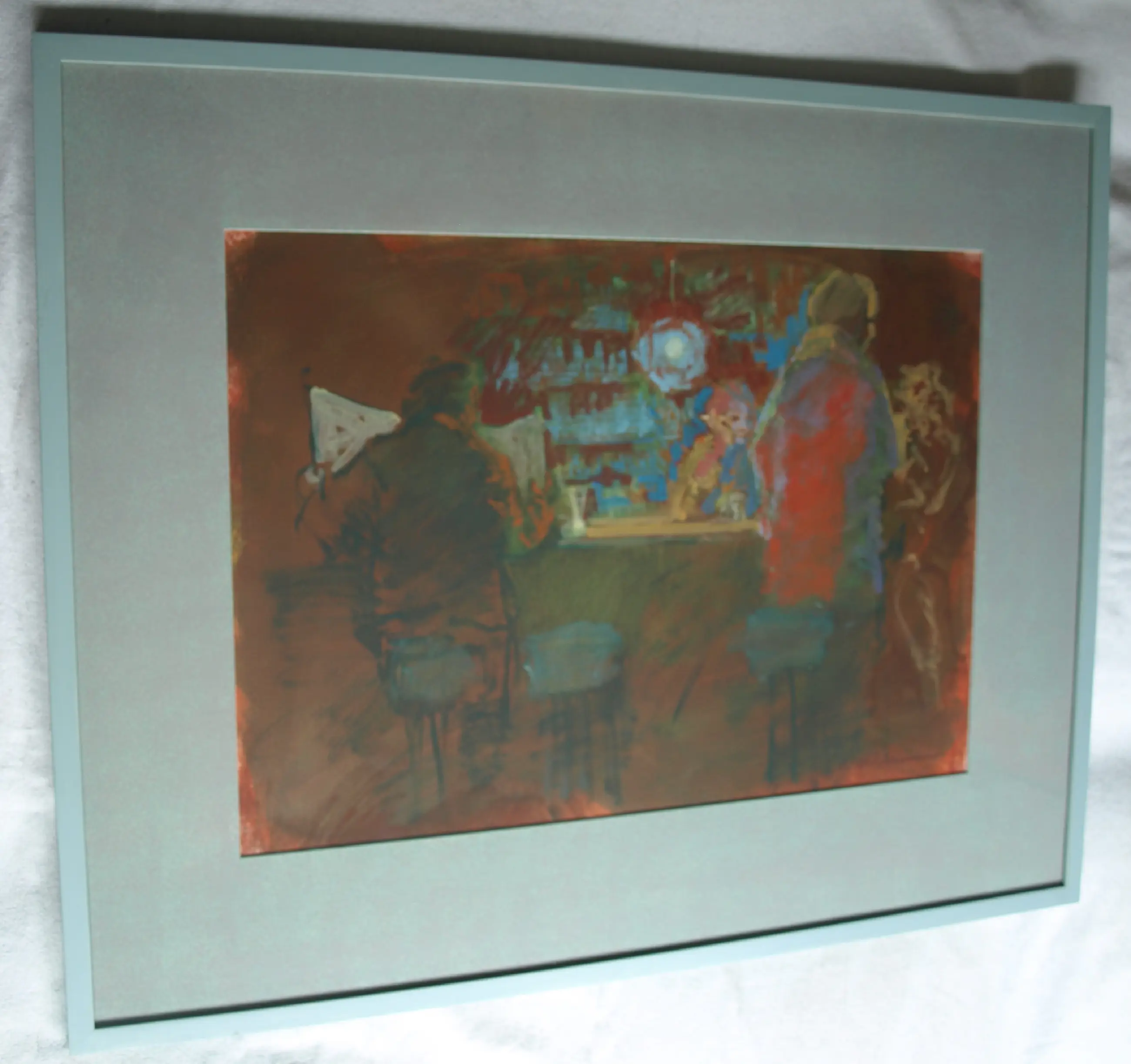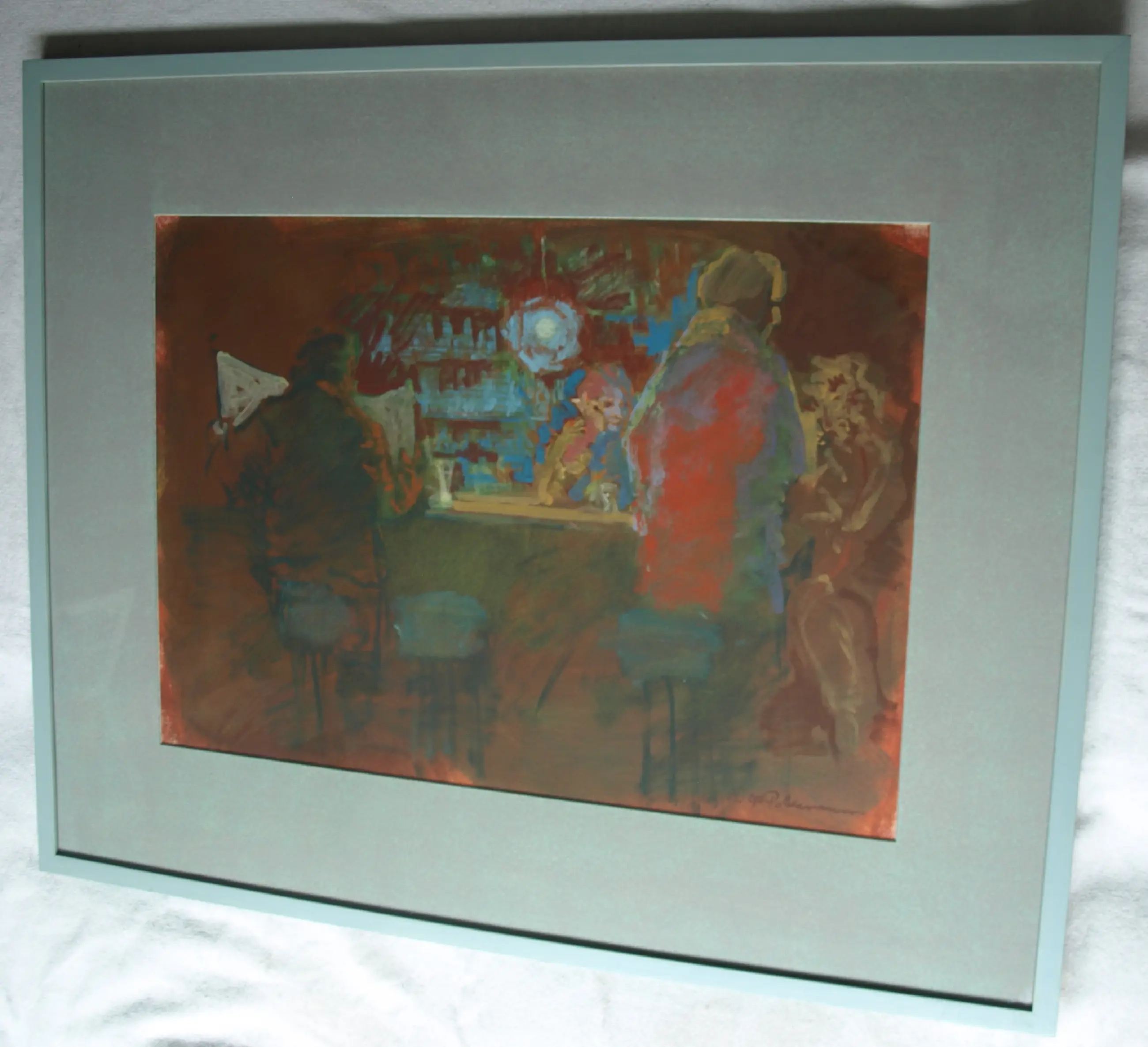 Peter Polderman - Ingelijst , Tempera , In het Café 2 – 1990 - Lijst, 78 x 97 cm