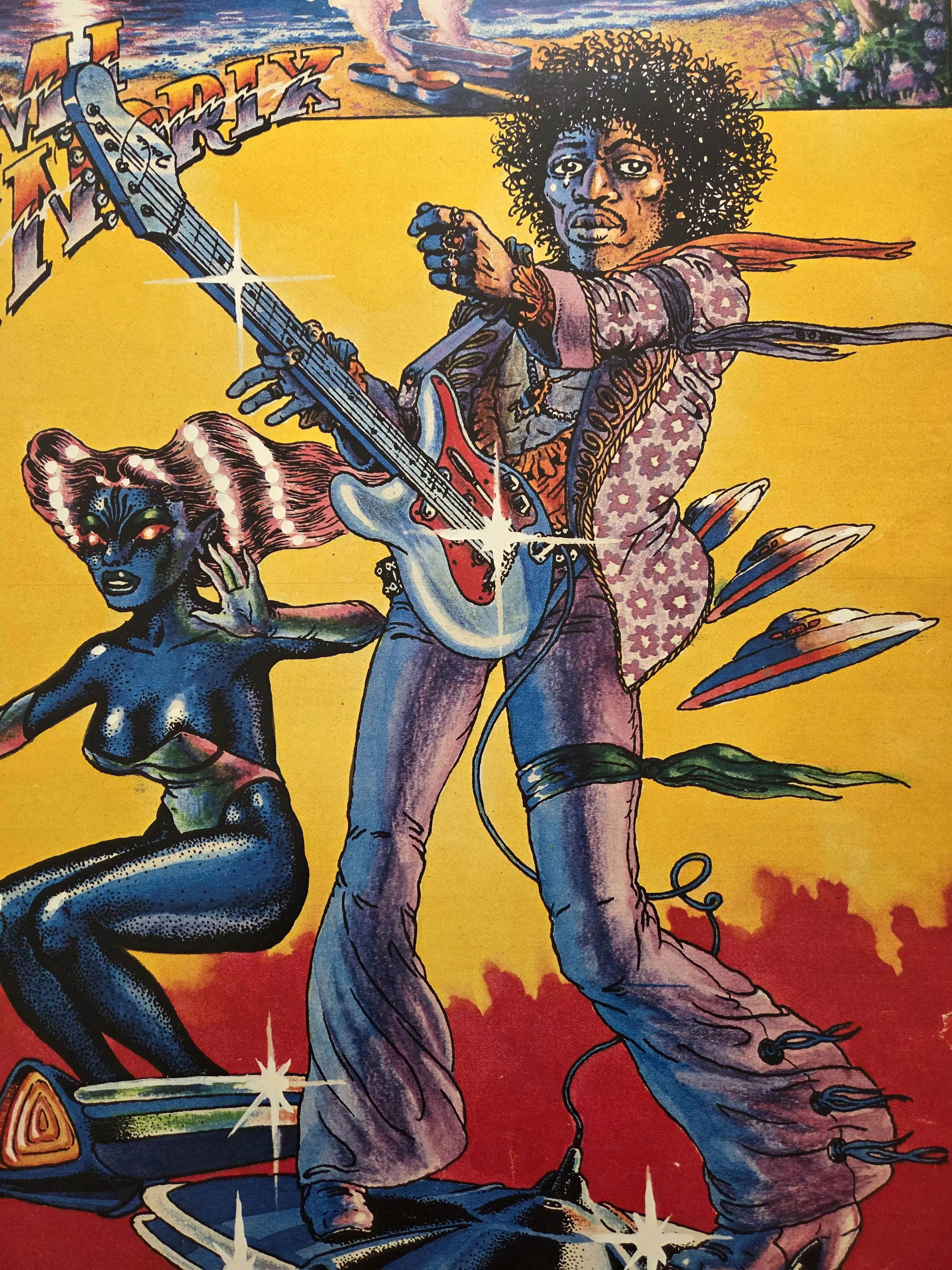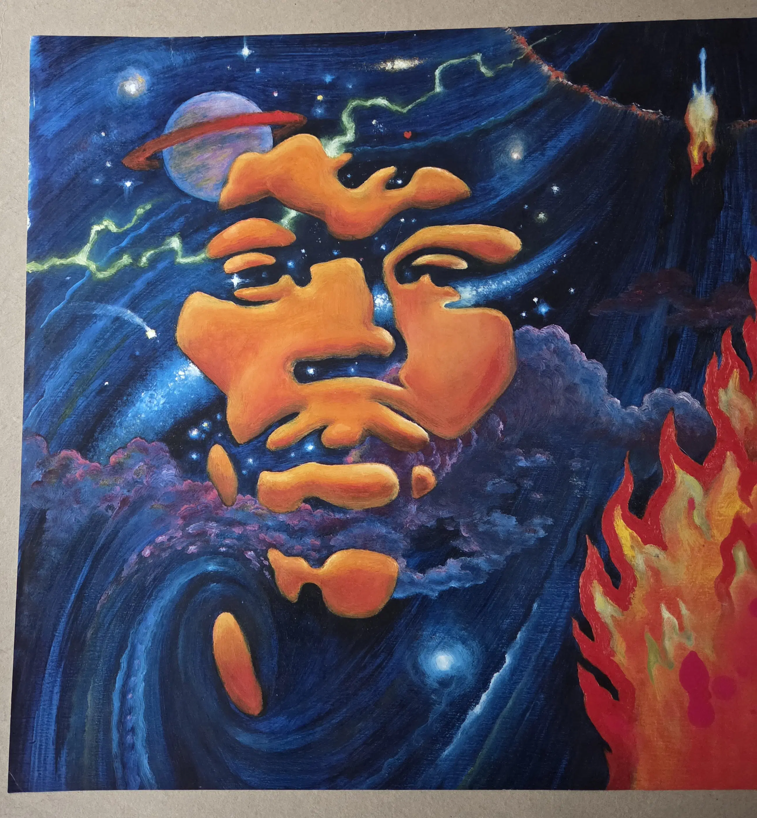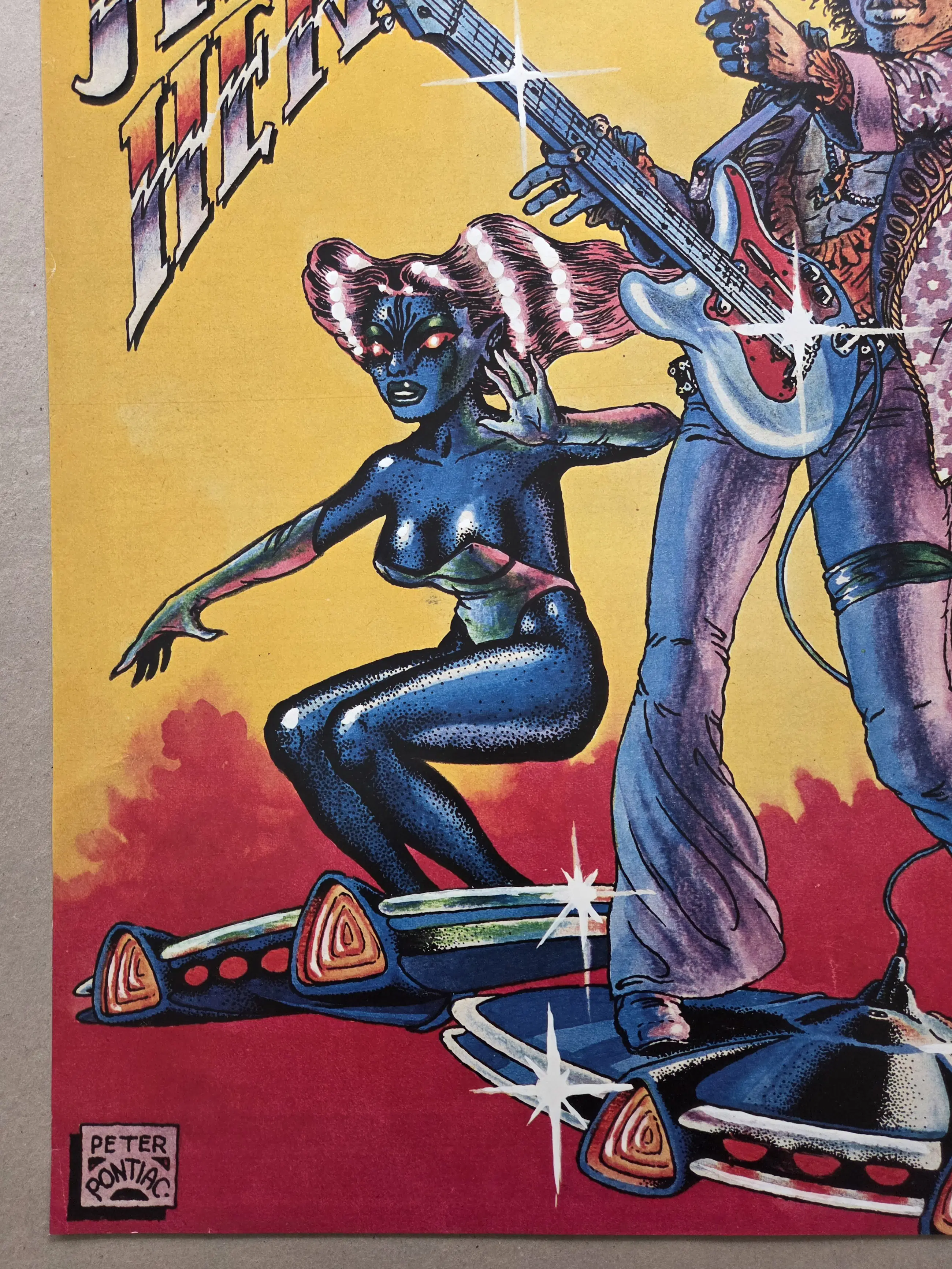 Grote affiche op zwaar papier. Voorzijde tekening voor Muziek Express in de jaren zeventig. Achterzijde portret. Drukgesigneerd Goede staat. Zie foto's voor eigen oordeel kwaliteit.