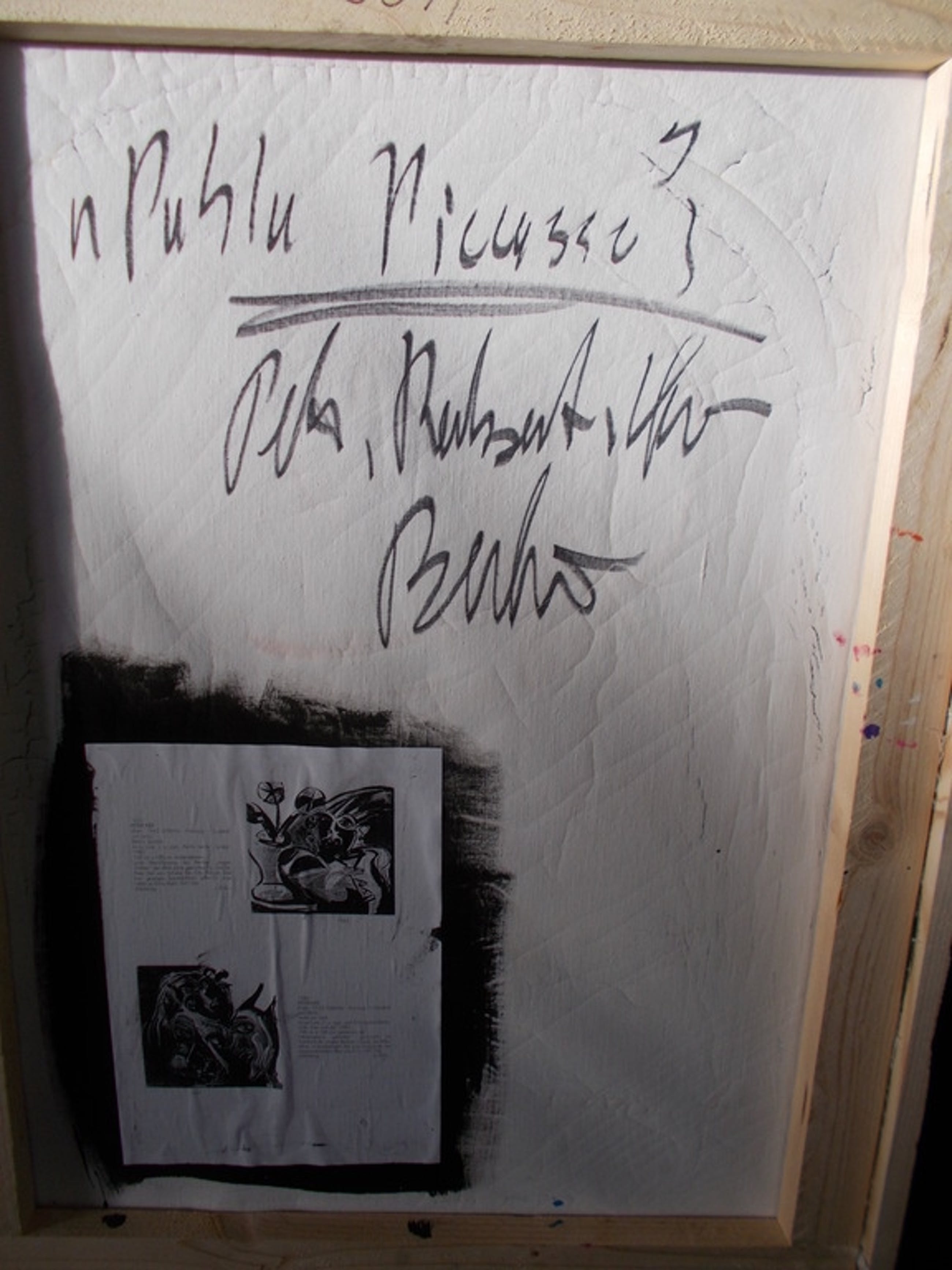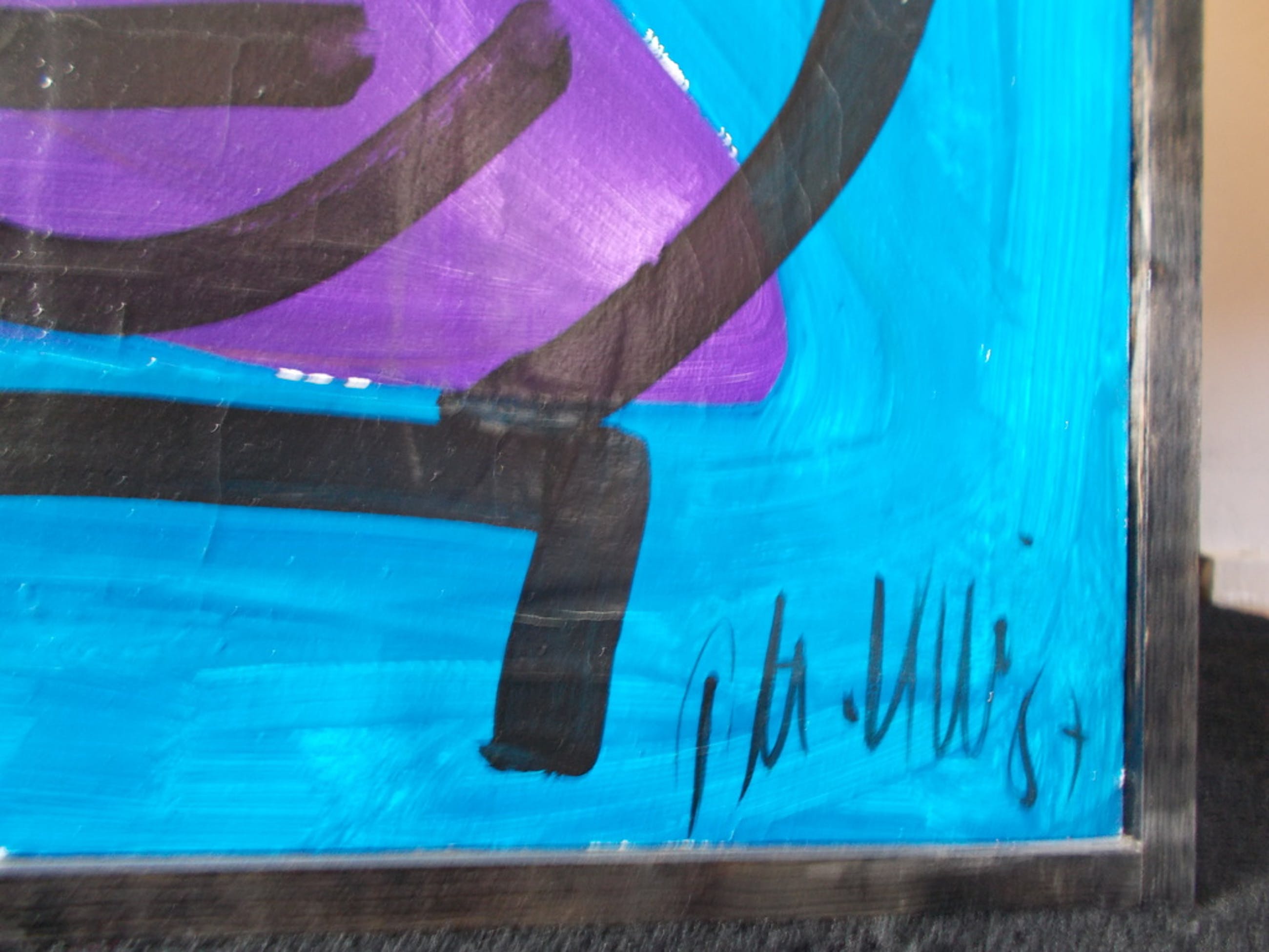 Acrylverf op doek van Peter Robert Keil,83x64 cm,gesigneerd en gedateerd in eenvoudige lijst,verso Peter Robert Keil ,adres en Picasso.