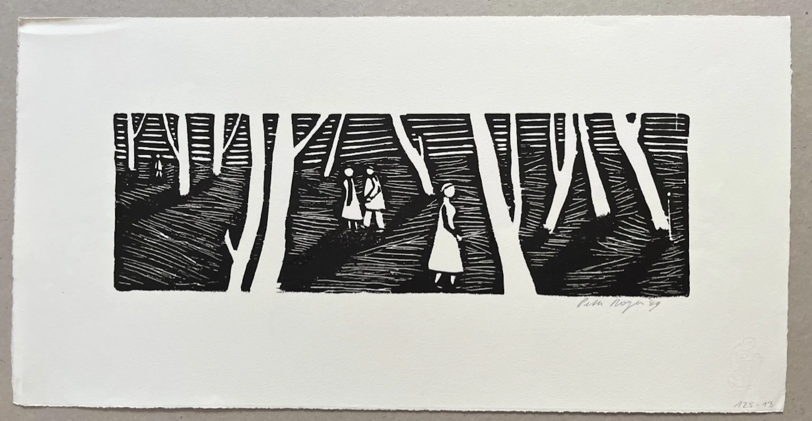 HerfstEen zeer ongebruikelijke vroege originele houtsnede van de Nederlander die studeerde aan de Kunstacademie in Düsseldorf en wiens artistieke voorbeeld Otto Pankok was.